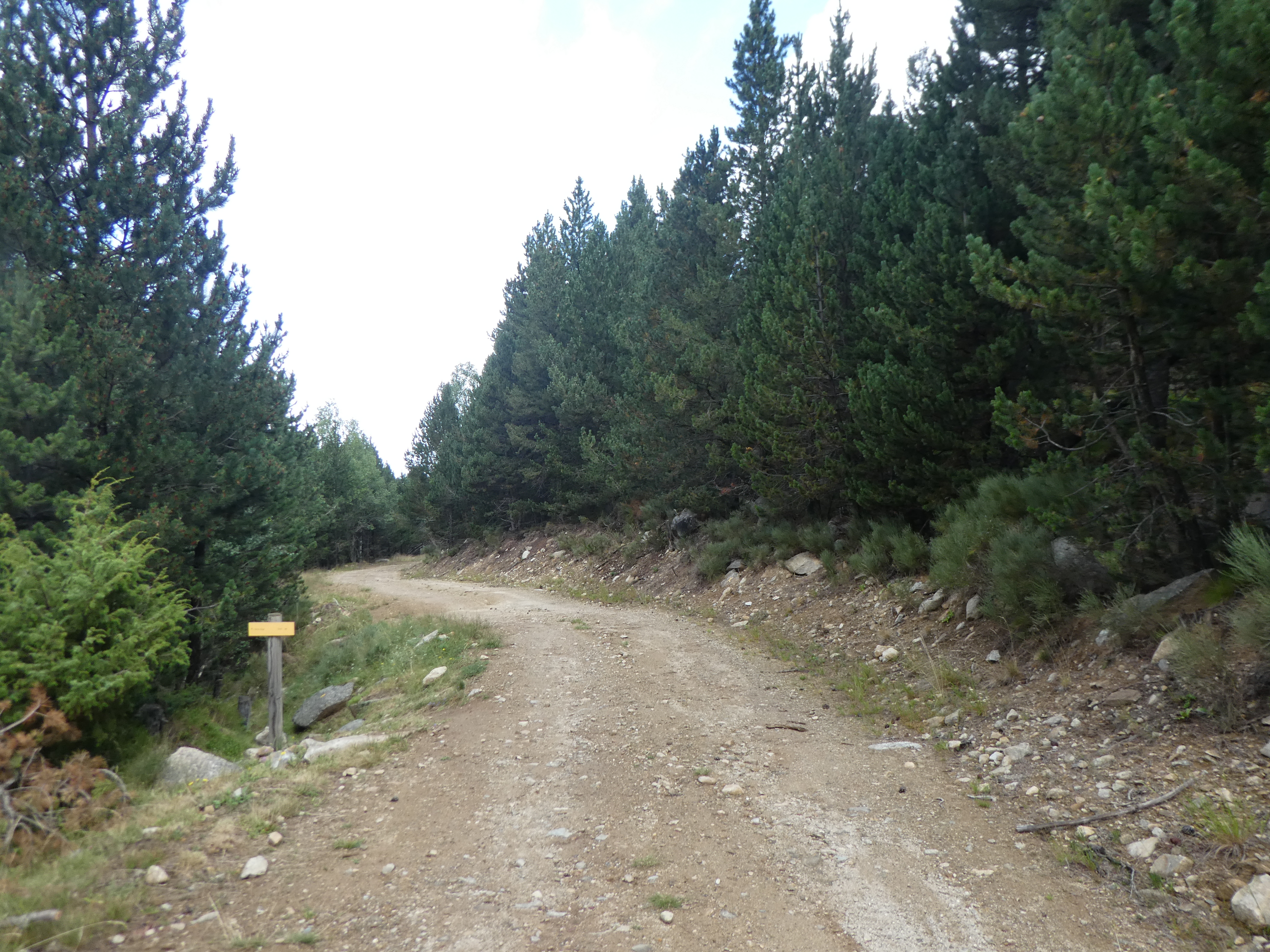 A ce croisement marqué par la présence d'un panneau directionnel (1100 mètres après le précédent), suivre la piste partant légèrement sur la droite direction Estany de Planès, balisé en jaune