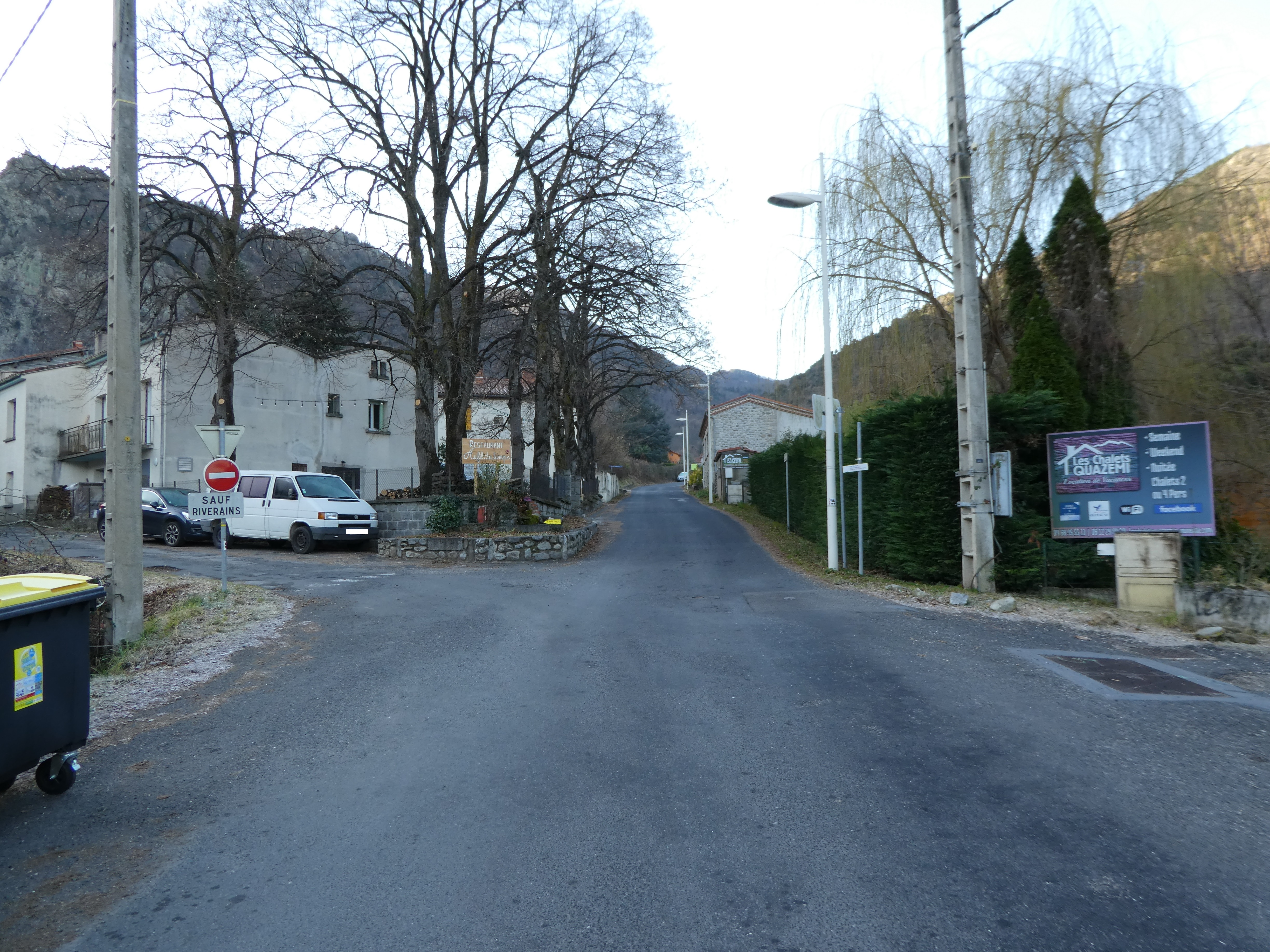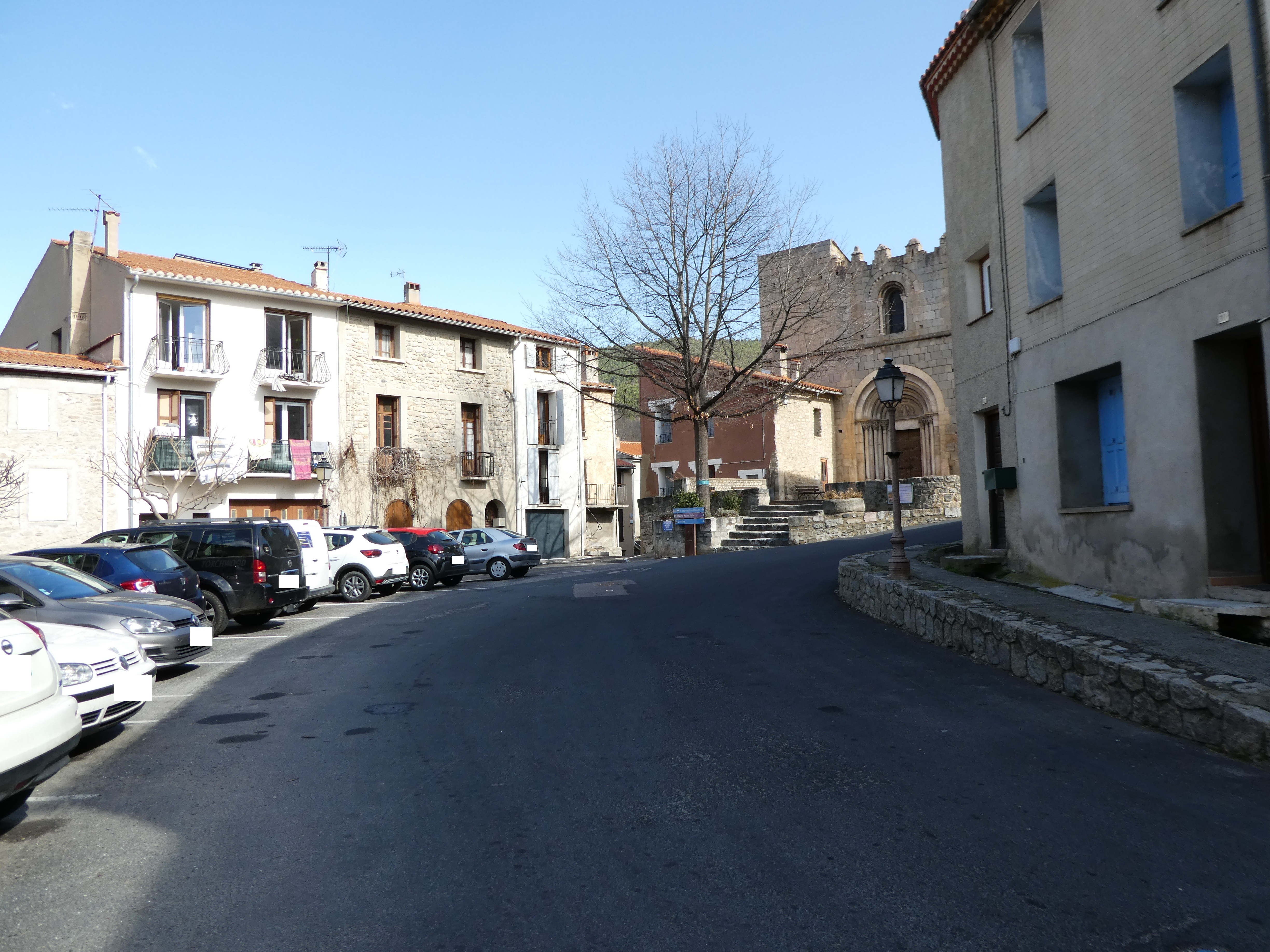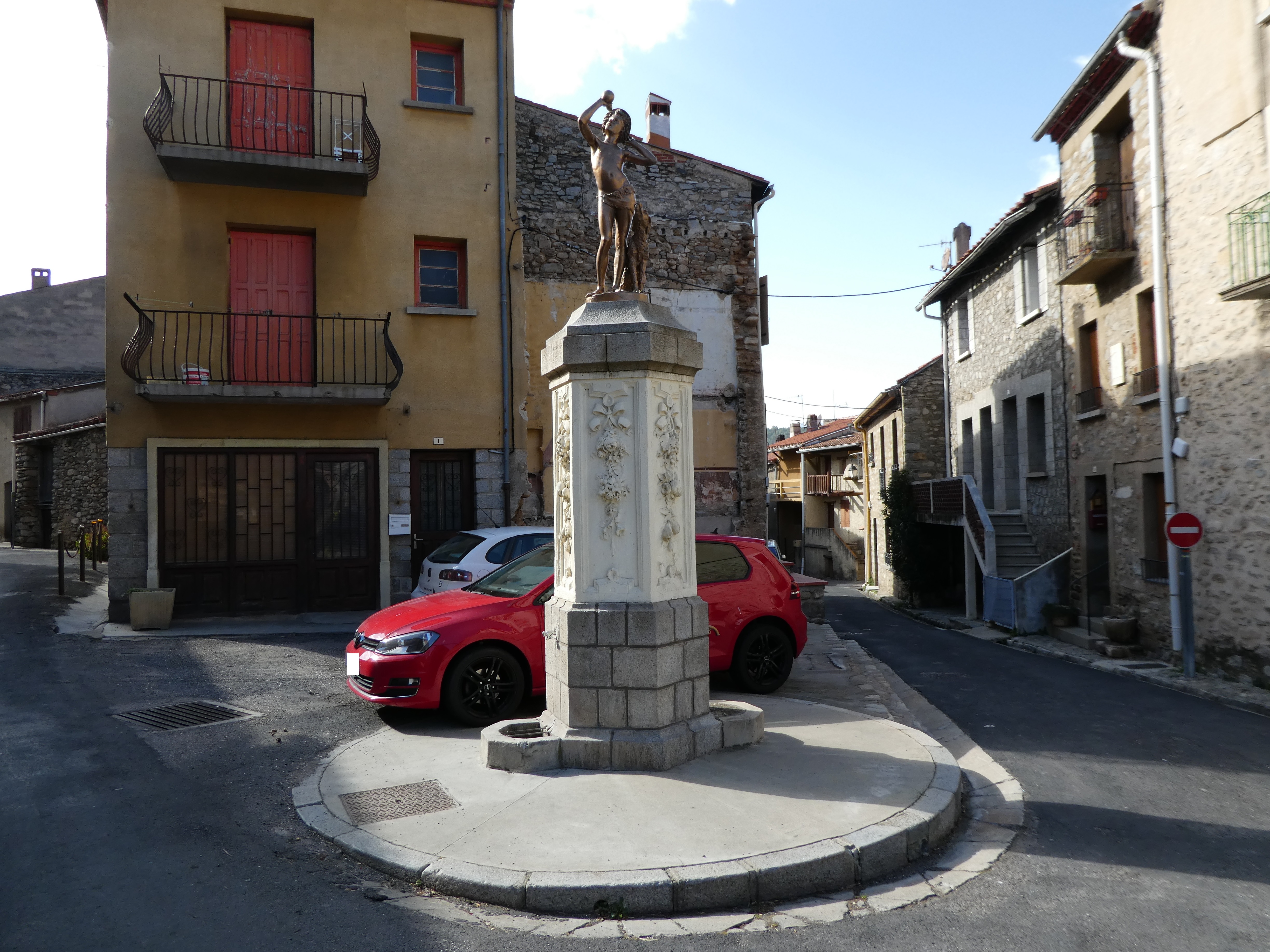 A cette intersection située au niveau de la place de l'office de tourisme (350 mètres après la précédente mentionnée), suivre la rue partant sur la gauche direction Casteil, balisé en jaune et blanc dorénavant (il est possible de démarrer la randonnée à partir d'ici et économiser environ 7,5 kilomètres et 2h30 de marche, itinéraire classique de montée vers la Torre de Goà)