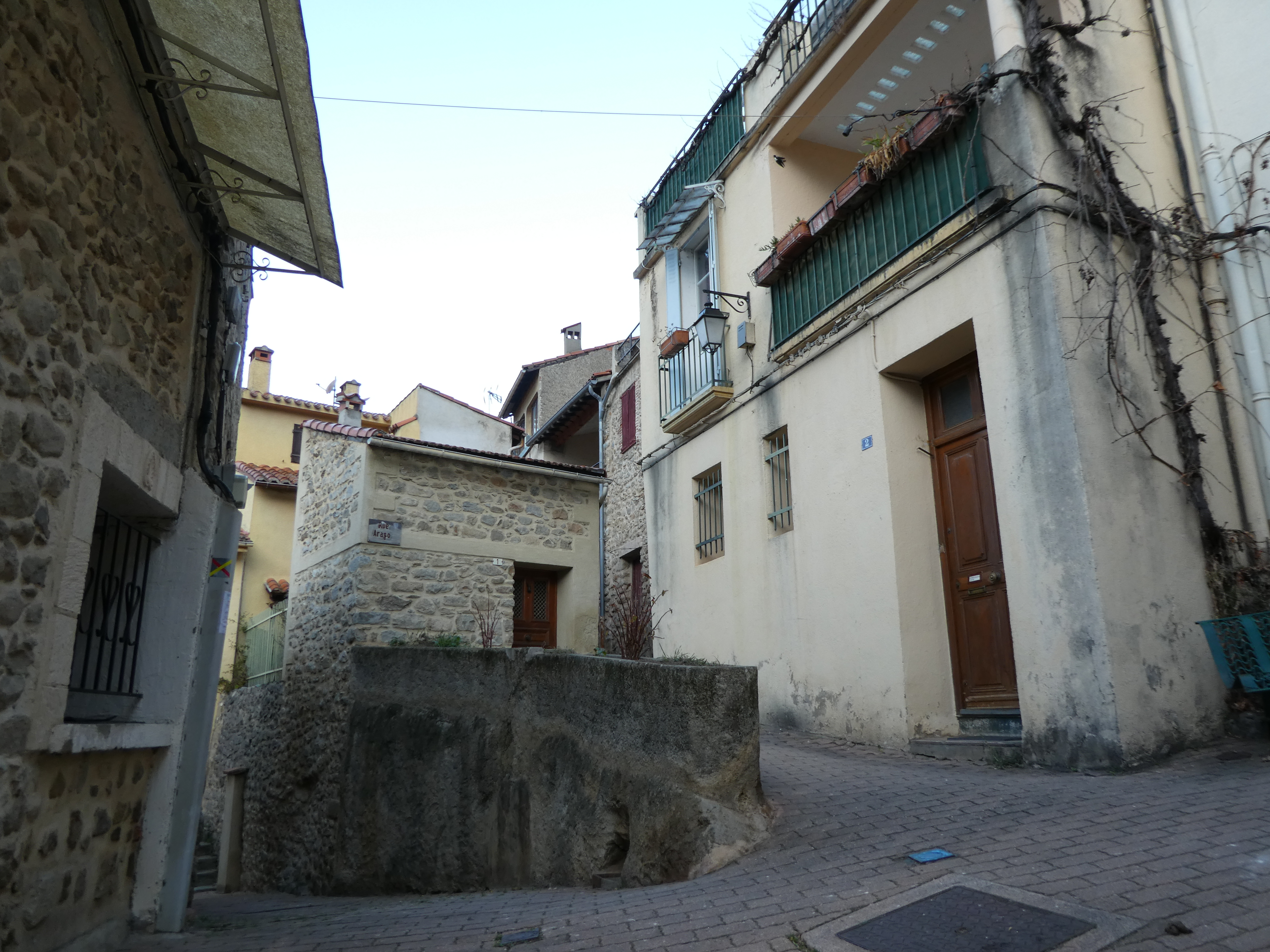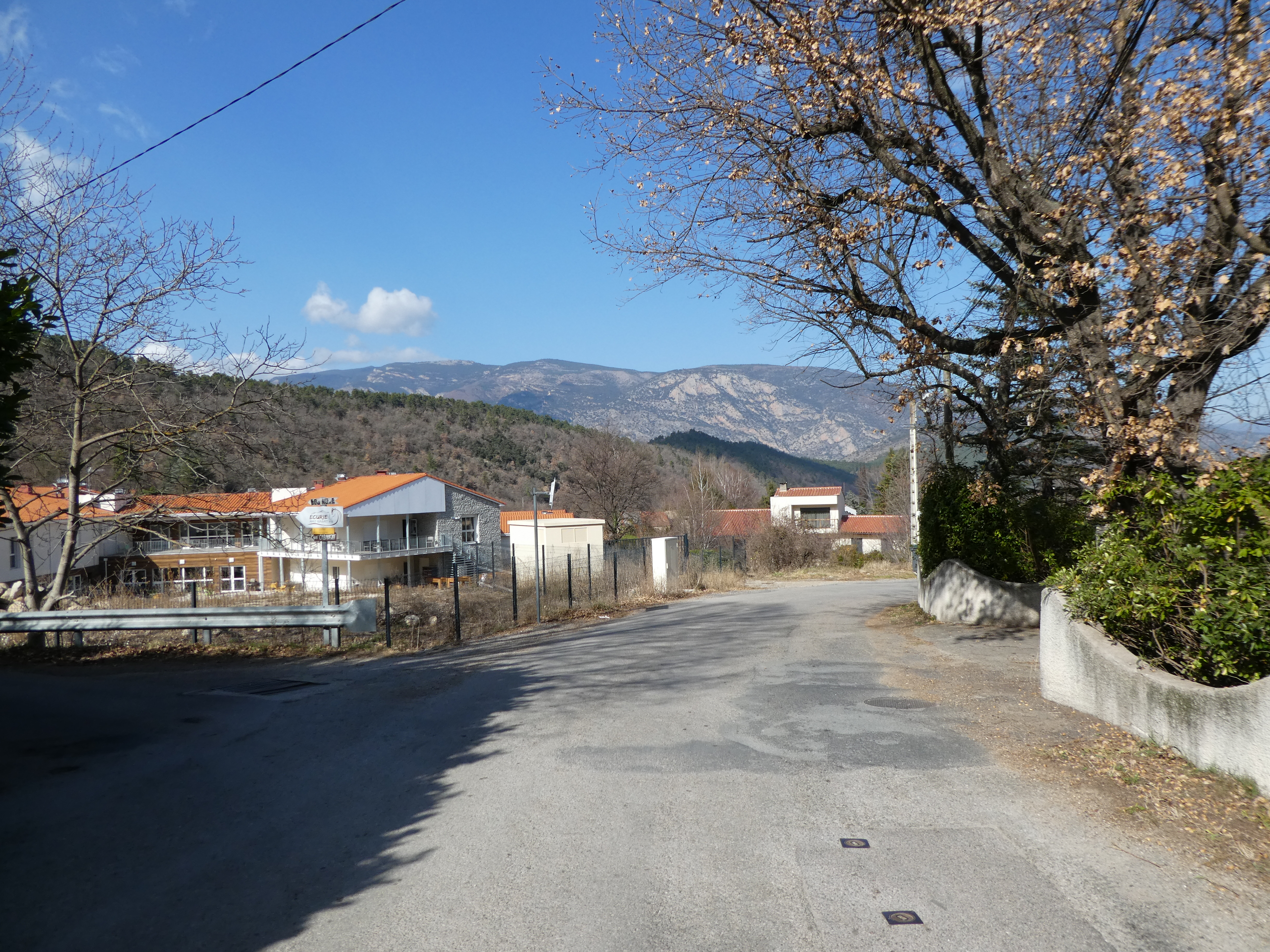 A cette intersection avec la D116 (600 mètres après le précédent croisement), suivre cette dernière sur la droite puis la rue montant immédiatement sur la gauche direction Corneilla-de-Conflent, balisé en jaune et blanc