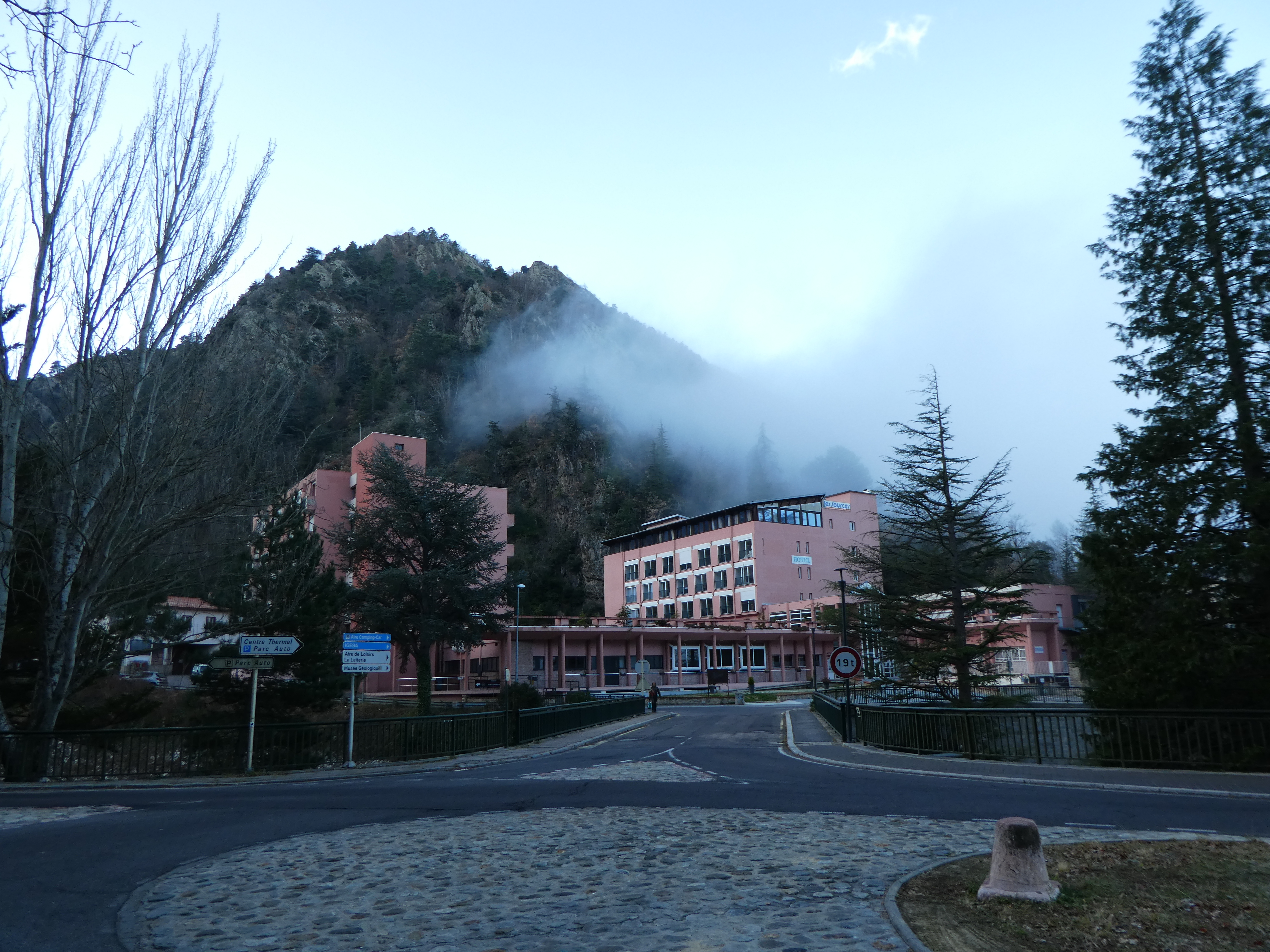 Vue sur l'établissement thermal de Vernet-les-Bains situé au pied du Pic de la Pena