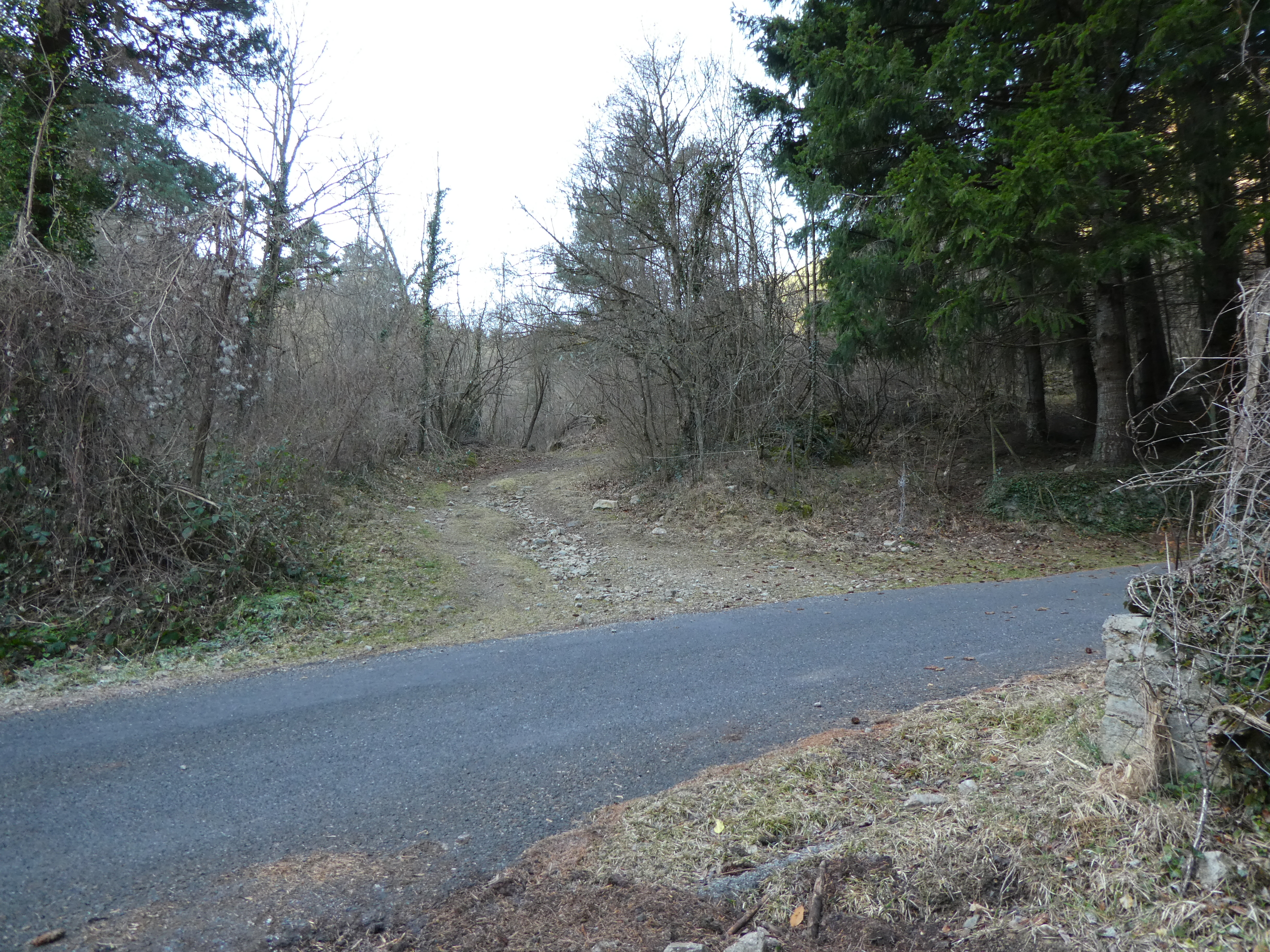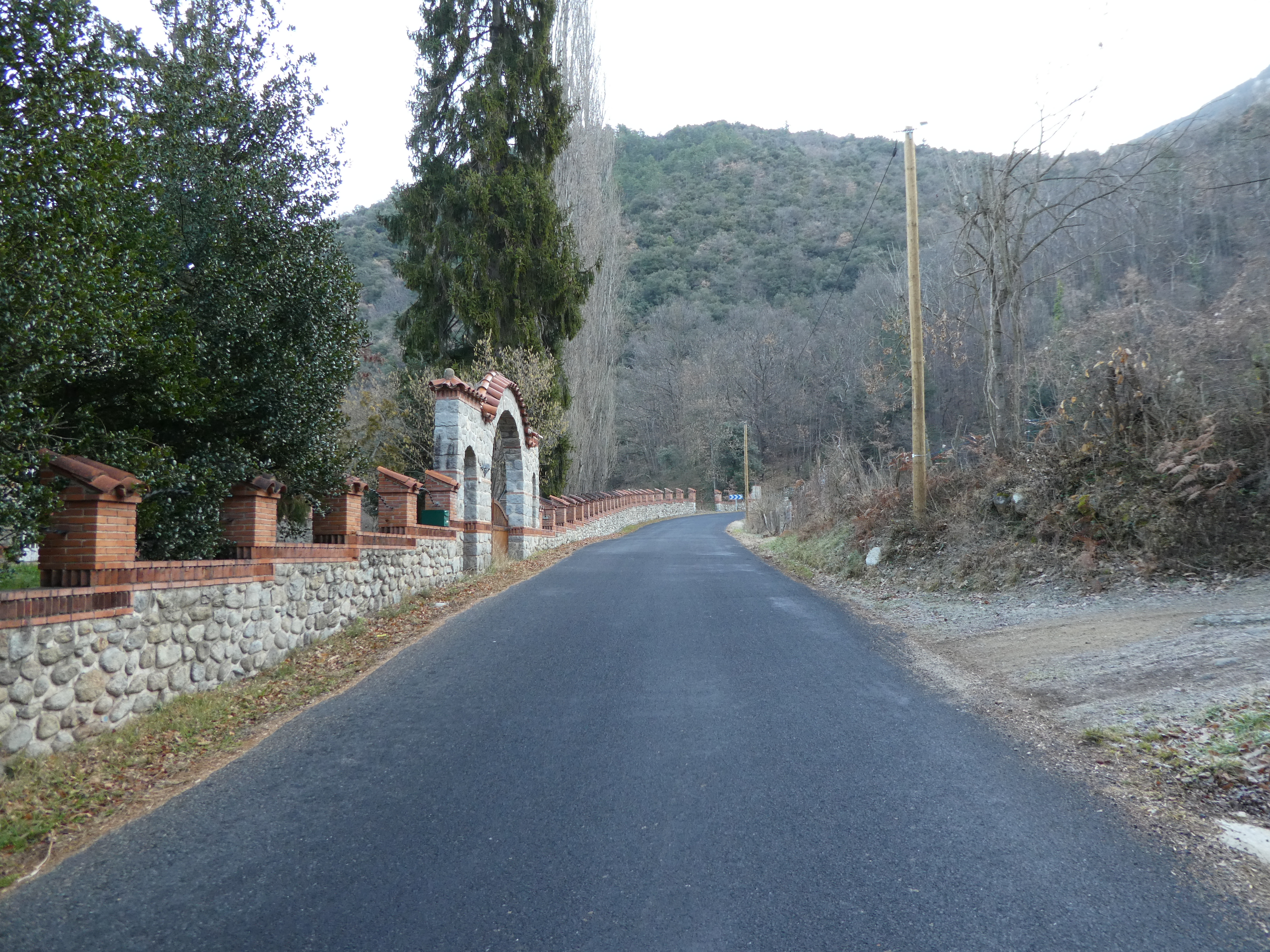 A cette intersection (150 mètres après le précédent croisement), quitter le GRP partant sur la droite pour suivre la route partant légèrement sur la gauche direction Villefranche-de-Conflent, aucun balisage dorénavant (pour ceux qui avaient démarré la boucle à Vernet-les-Bains, suivre le GRP partant sur la droite qui vous mènera à la place de l'office de Tourisme de Vernet-les-Bains)