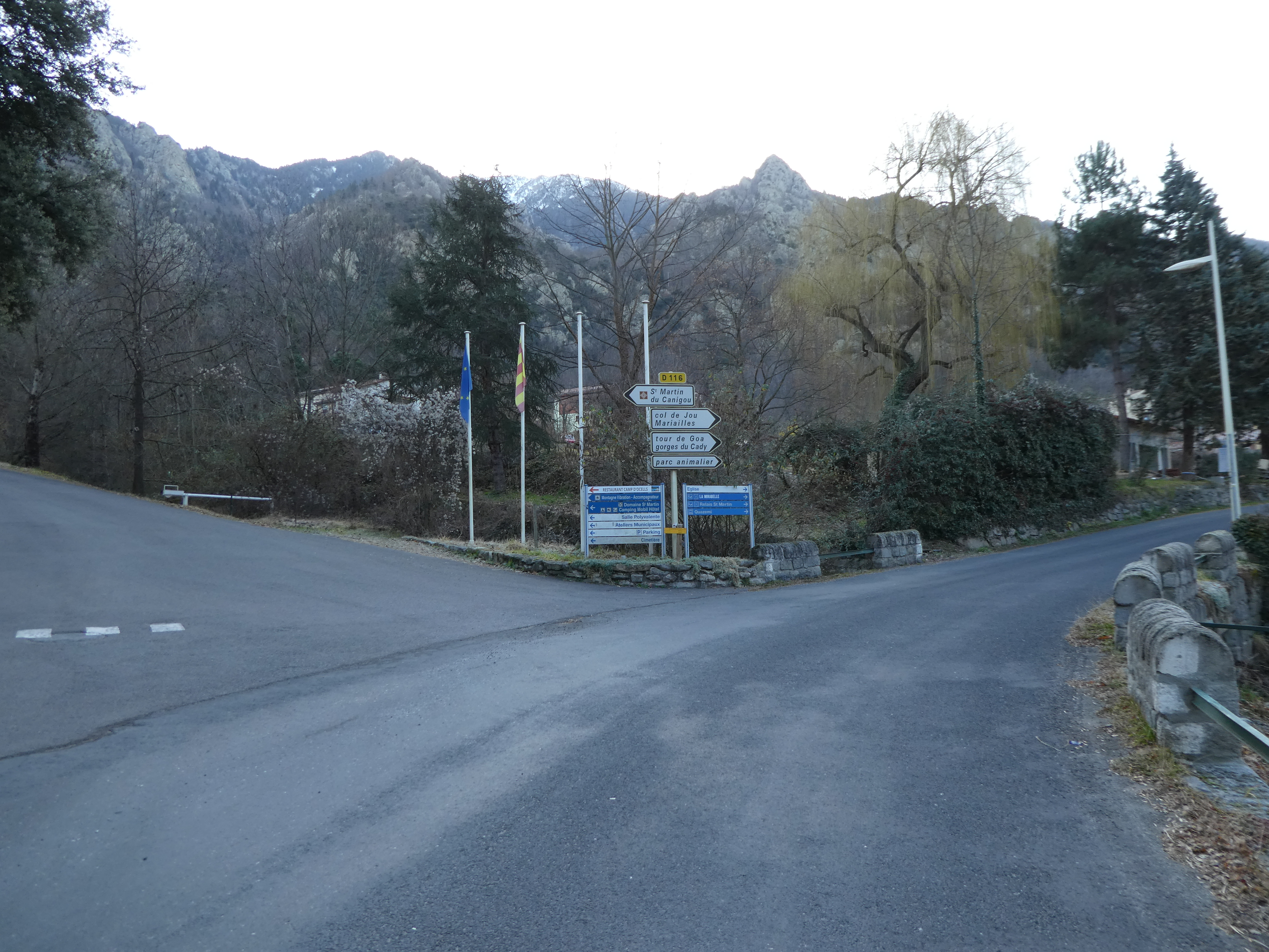 Au niveau de ce rond-point avec la D116 situé à la sortie de Vernet-les-Bains (400 mètres après la précédente intersection mentionnée) (666 m), suivre cette dernière tout droit direction Casteil, aucun balisage dorénavant