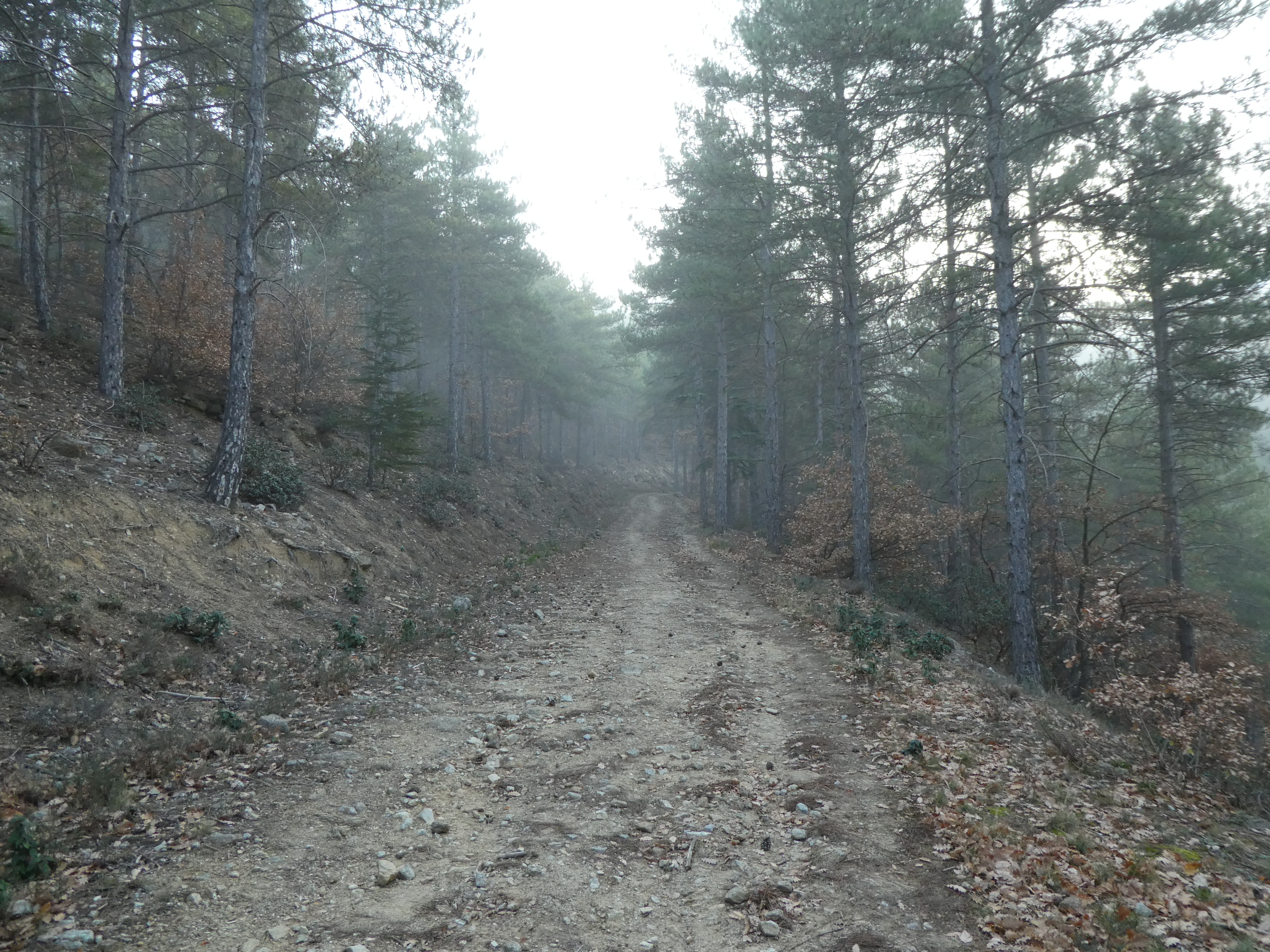 La piste de la Forêt Domaniale de Conflent dans la brume matinale