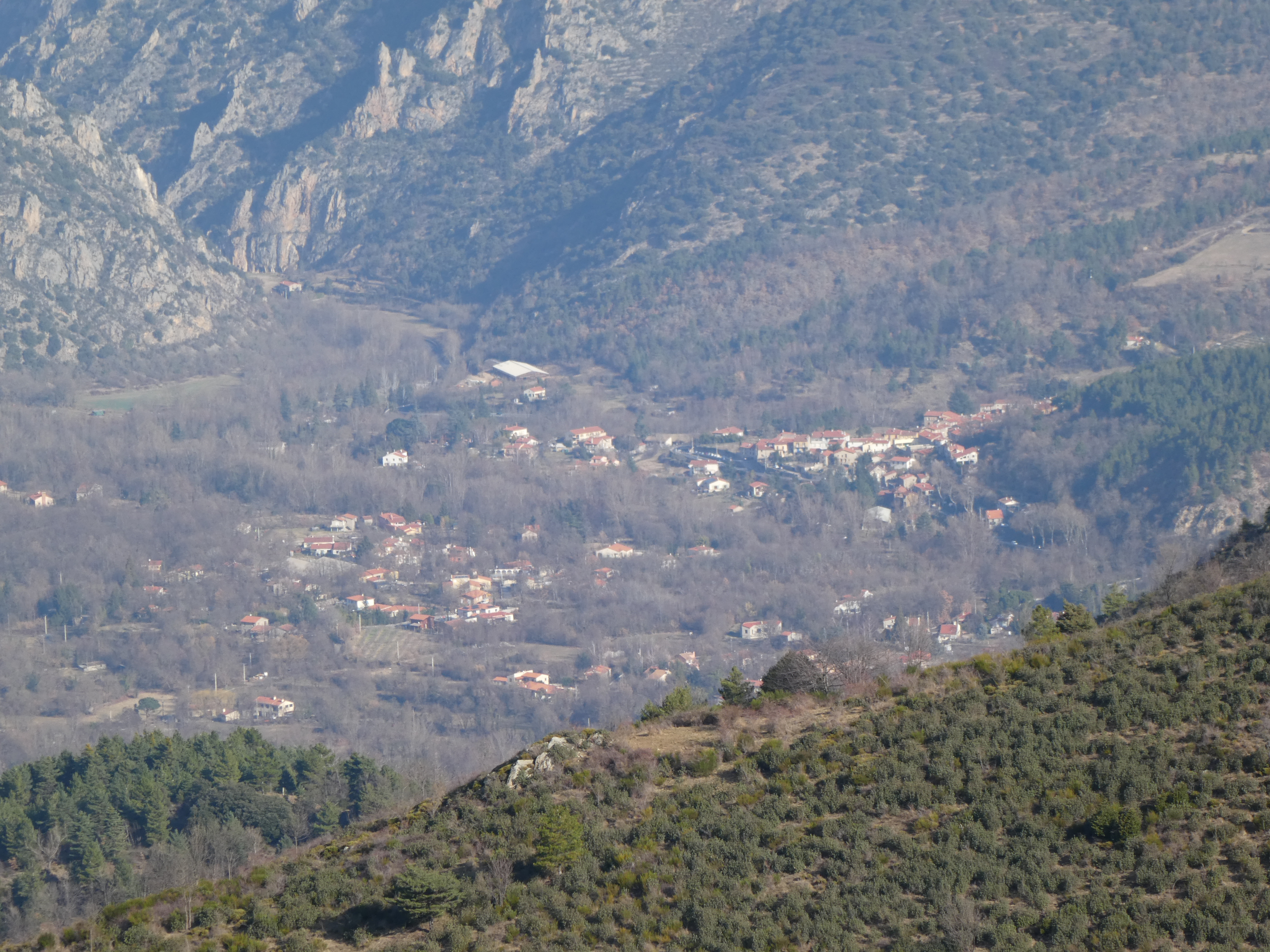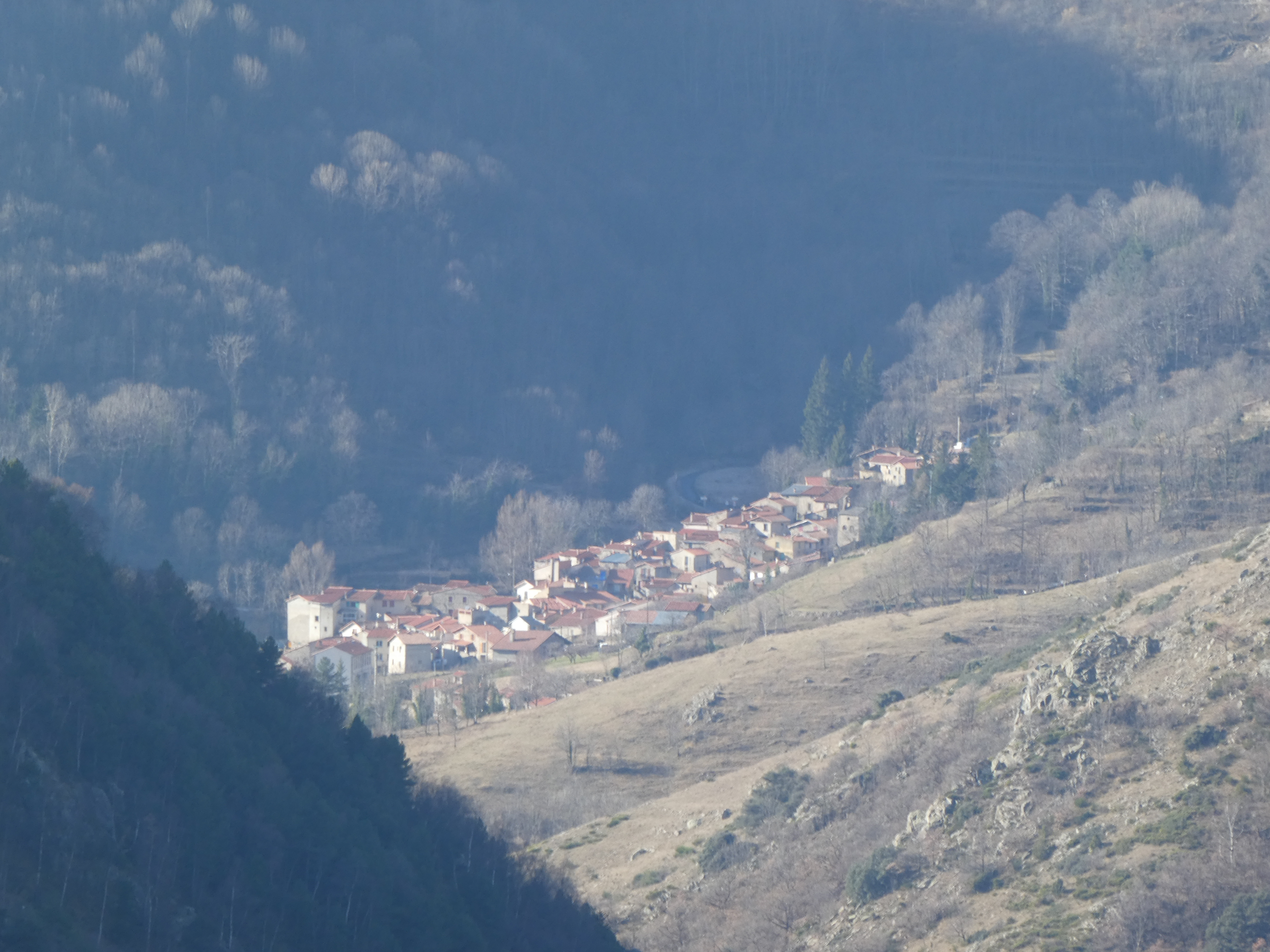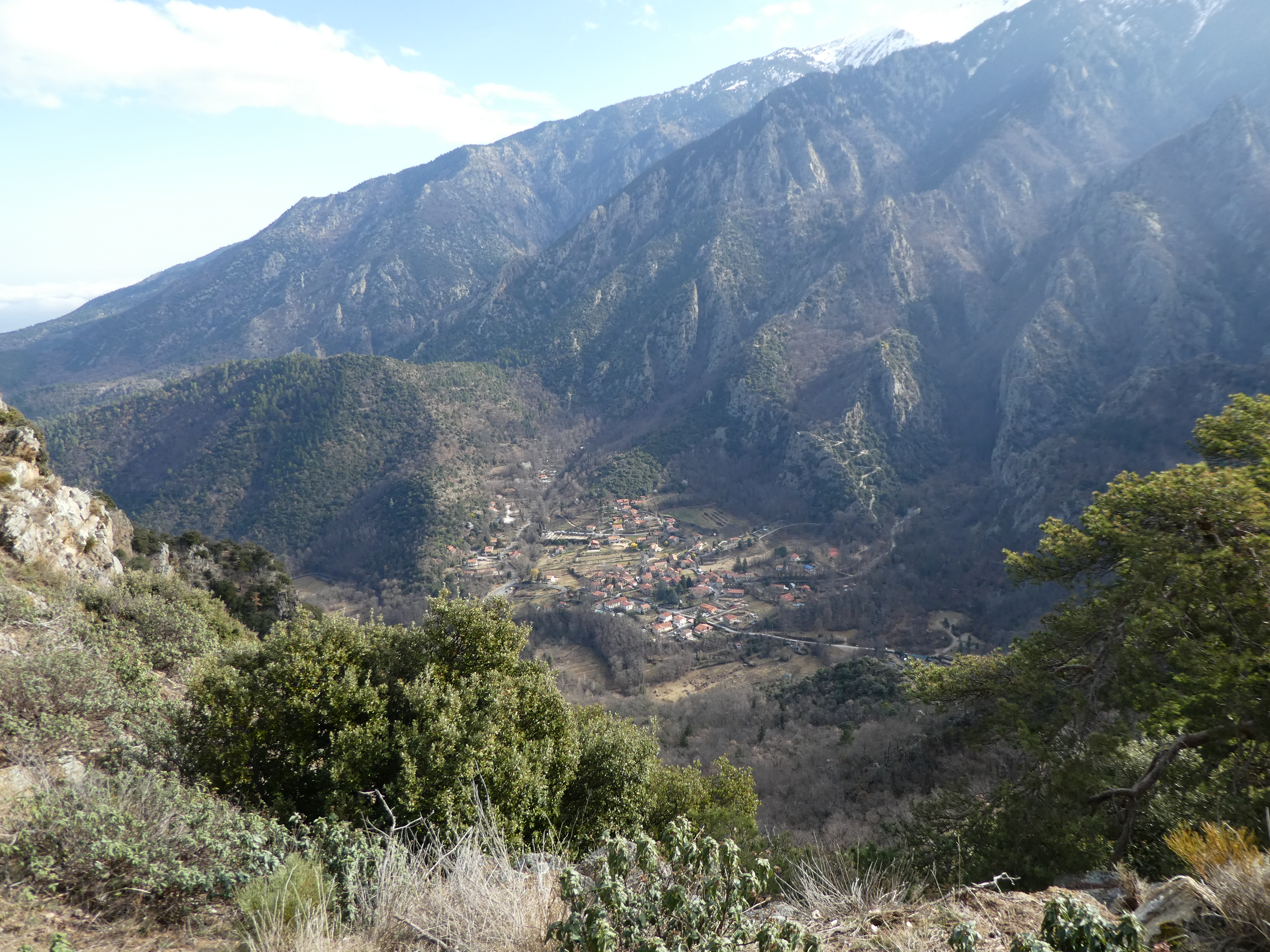 Belle vue plongeante sur le village de Casteil situé près de 400 mètres plus bas