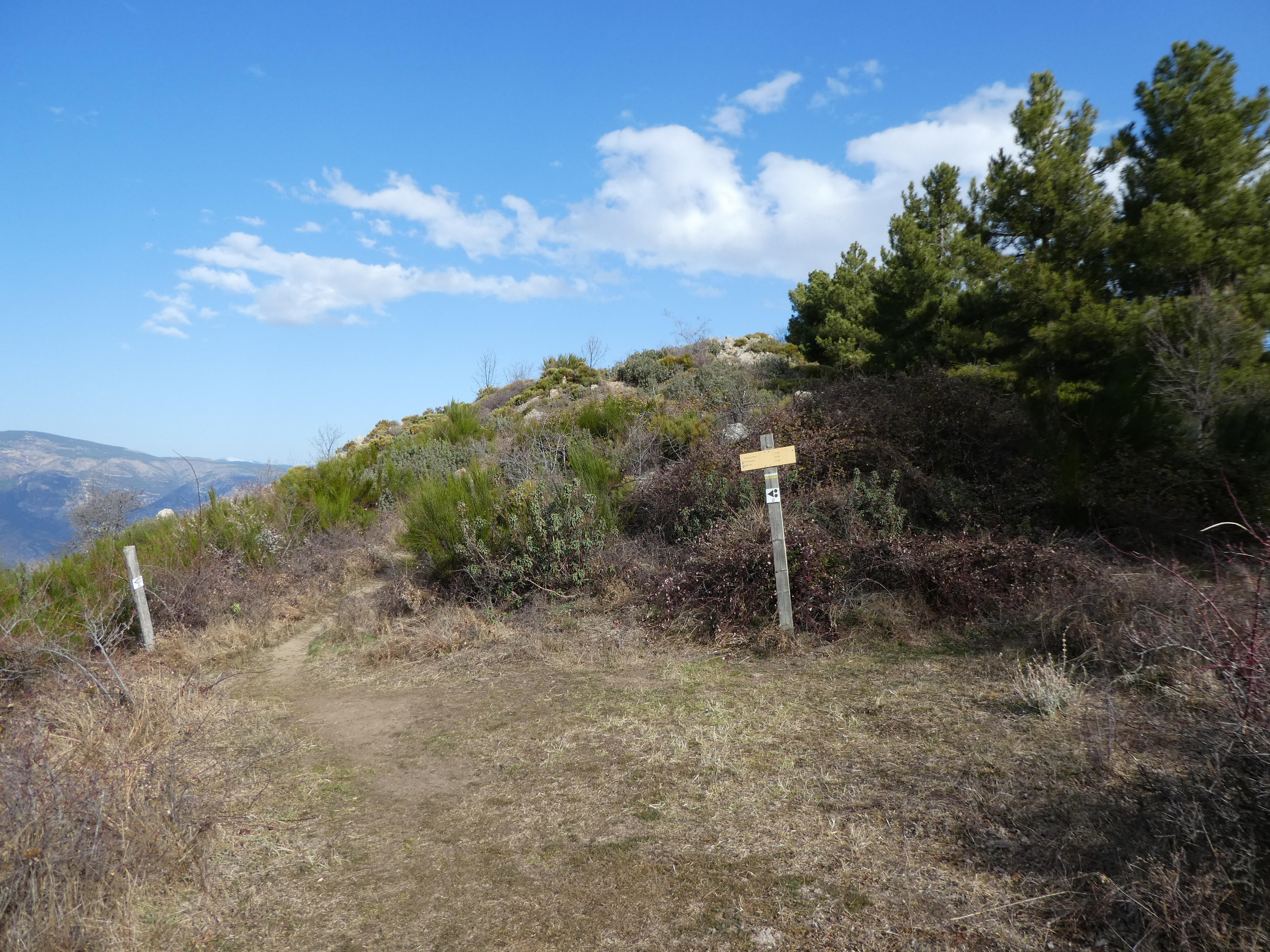 A ce croisement marqué par la présence d'un panneau directionnel (500 mètres après avoir quitté la Torre de Goà), suivre le chemin partant tout droit direction Pic de la Pena, balisé en jaune et blanc (le chemin descendant sur la gauche mène à Sahorre)