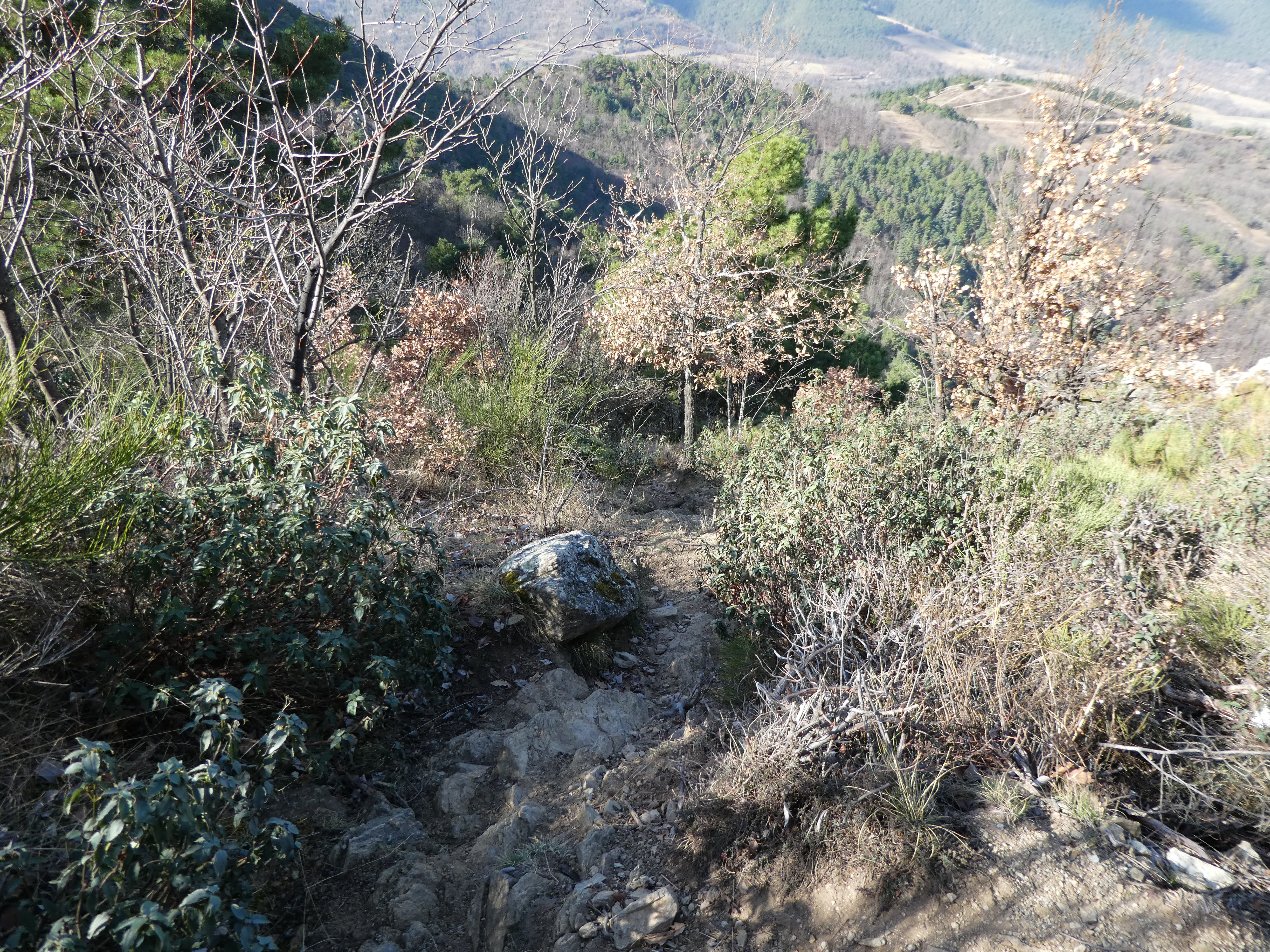 - Portions de descente raide sur le sentier descendant du Dolmen du Fulla del Mig
