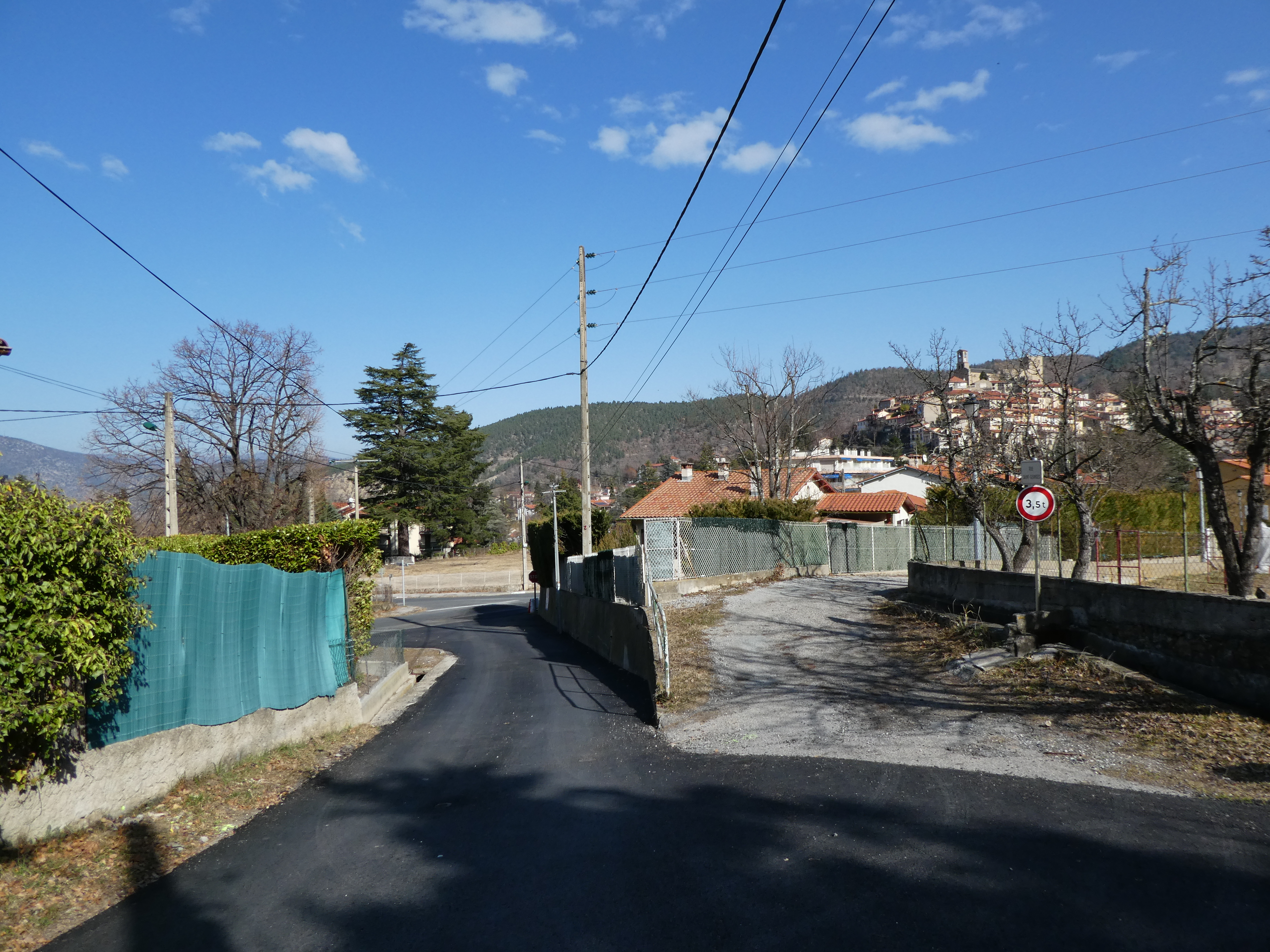 A cette intersection marquée par la présence d'un panneau directionnel (50 mètres après le départ), suivre la rue partant de biais sur la gauche direction Vernet-les-Bains, balisé en jaune (montée raide sur le sentier menant à la piste de la Forêt Domaniale de Conflent)