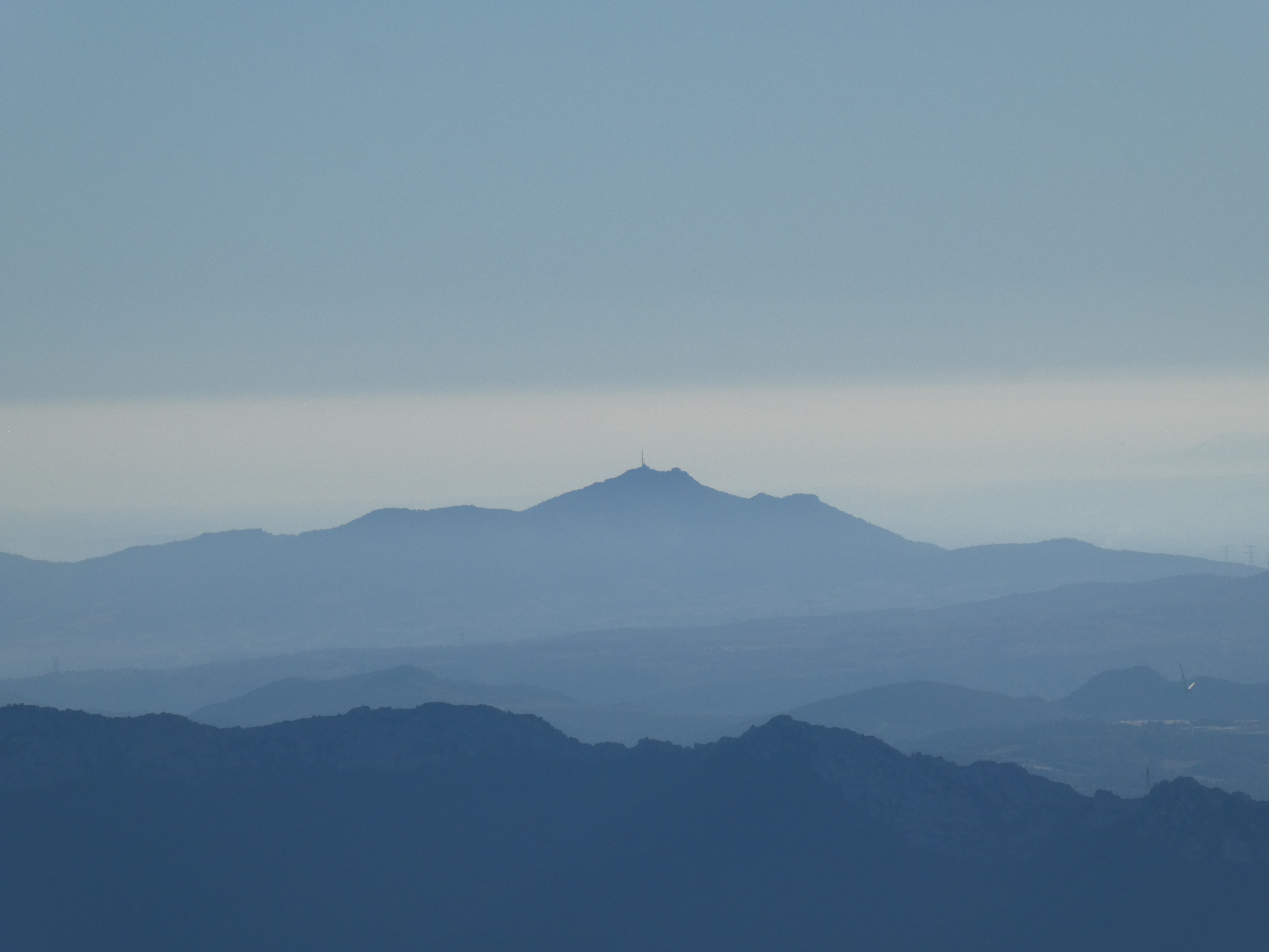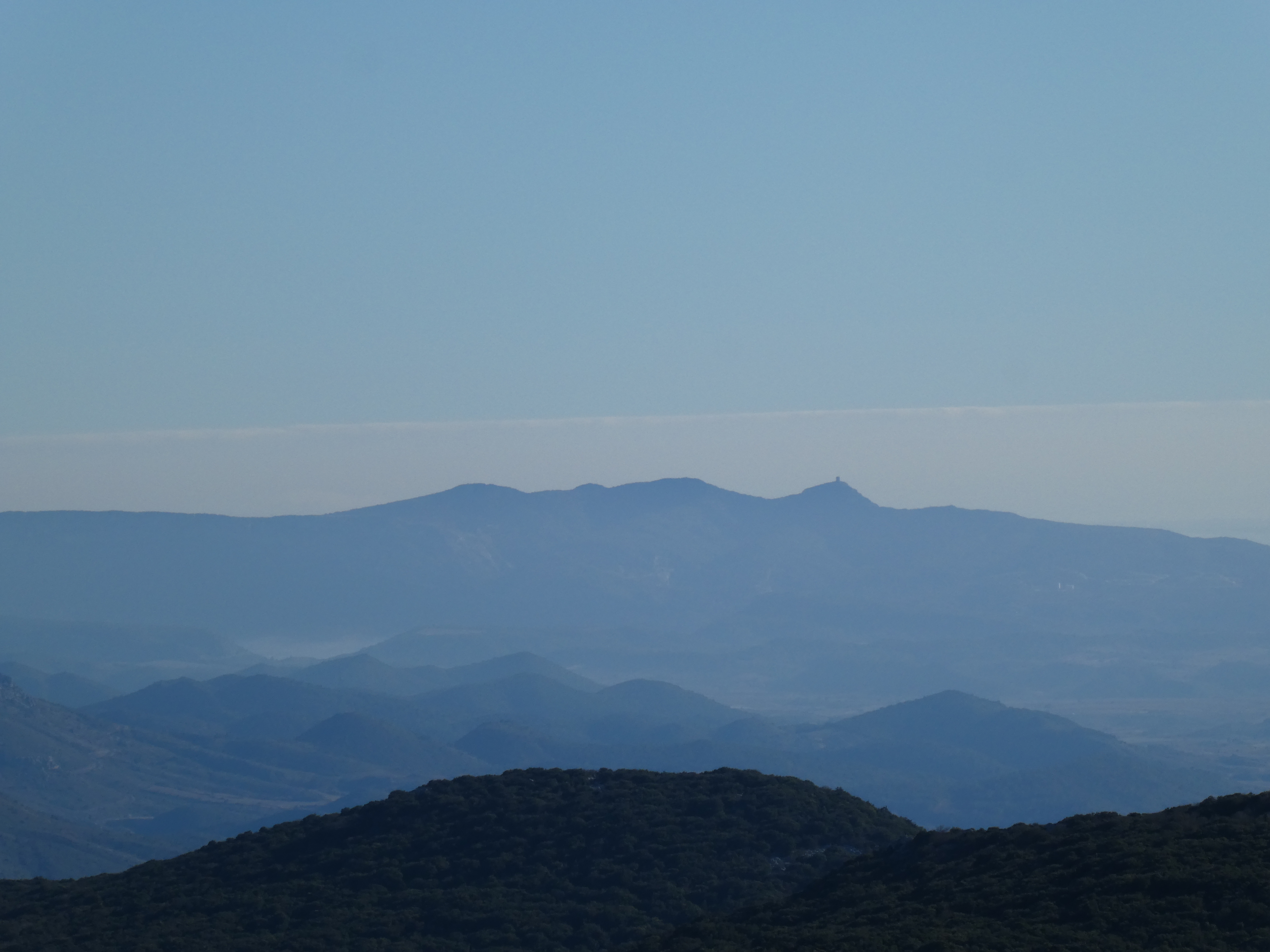 Zoom sur la Chaîne des Albères et notamment le Puig Neulós (1256 m) au centre