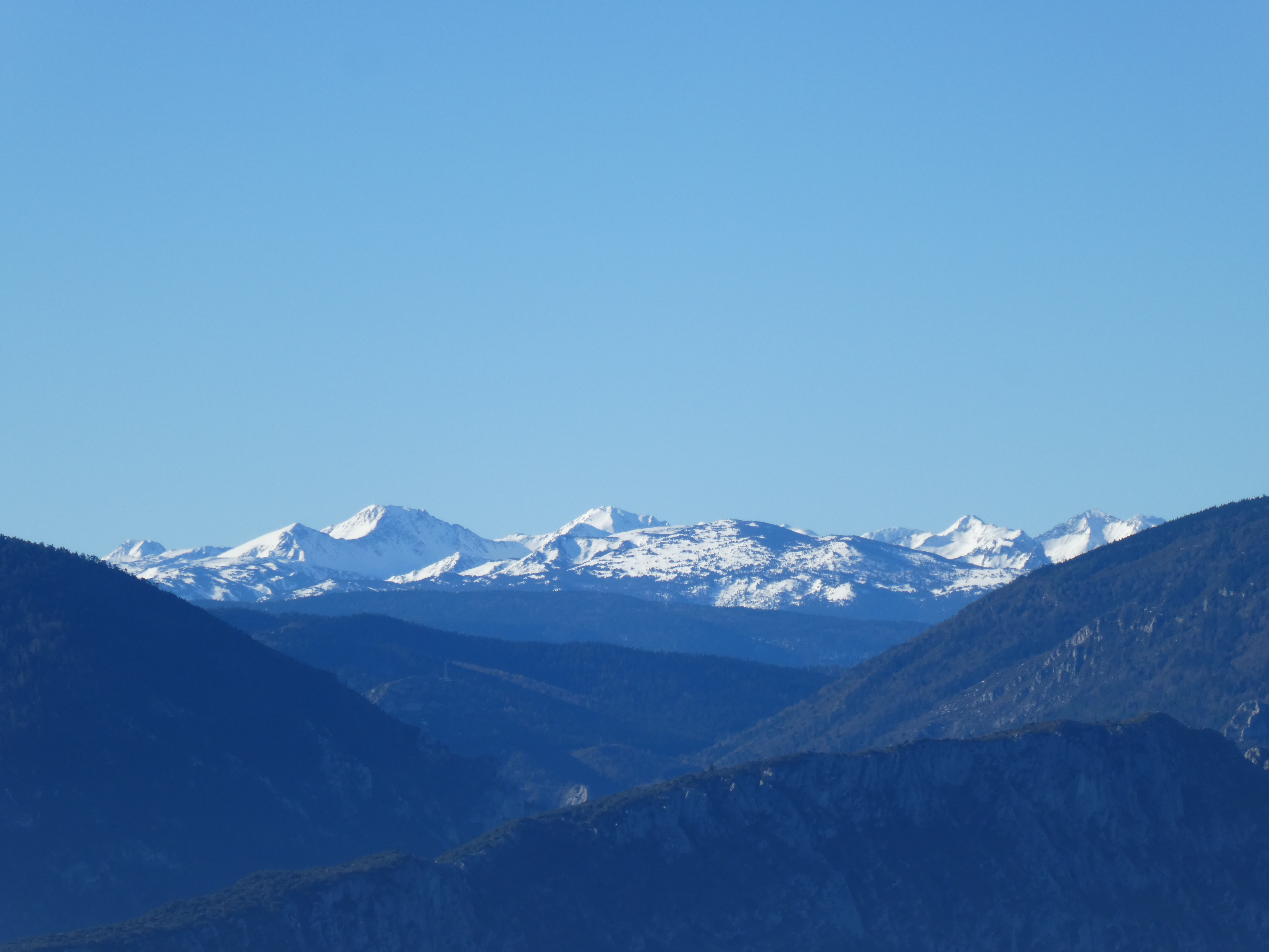 Zoom sur les sommets du Vallespir avec le Pic de les Salines (1333 m) au centre-gauche et le Roc de France (1450 m) au centre