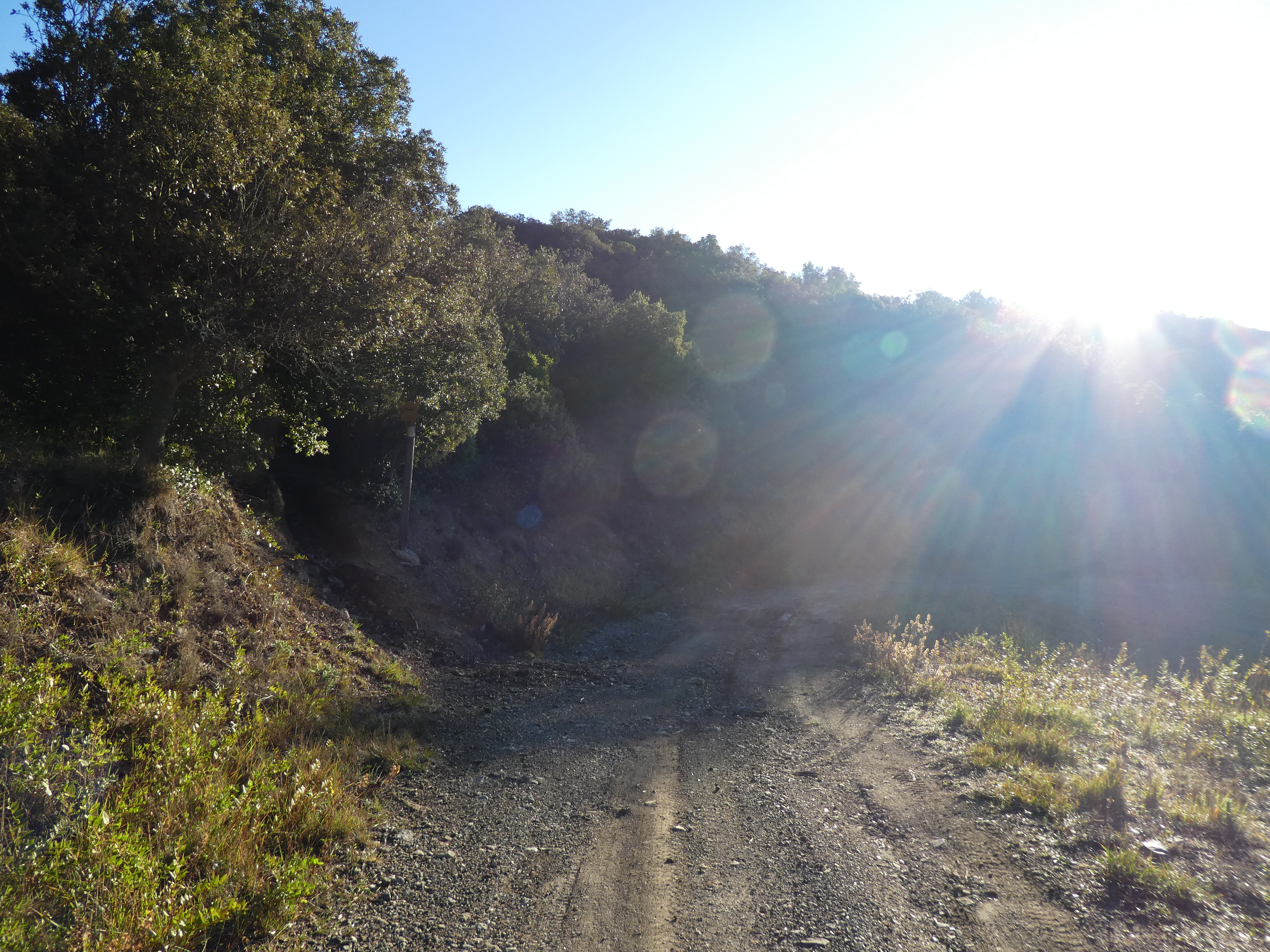 A ce croisement peu marqué (300 mètres après le précédent), suivre le large chemin partant tout droit direction Pla de Lagal, balisé en rouge et blanc (le chemin partant de biais sur la droite mène directement à Camps-sur-l'Agly)