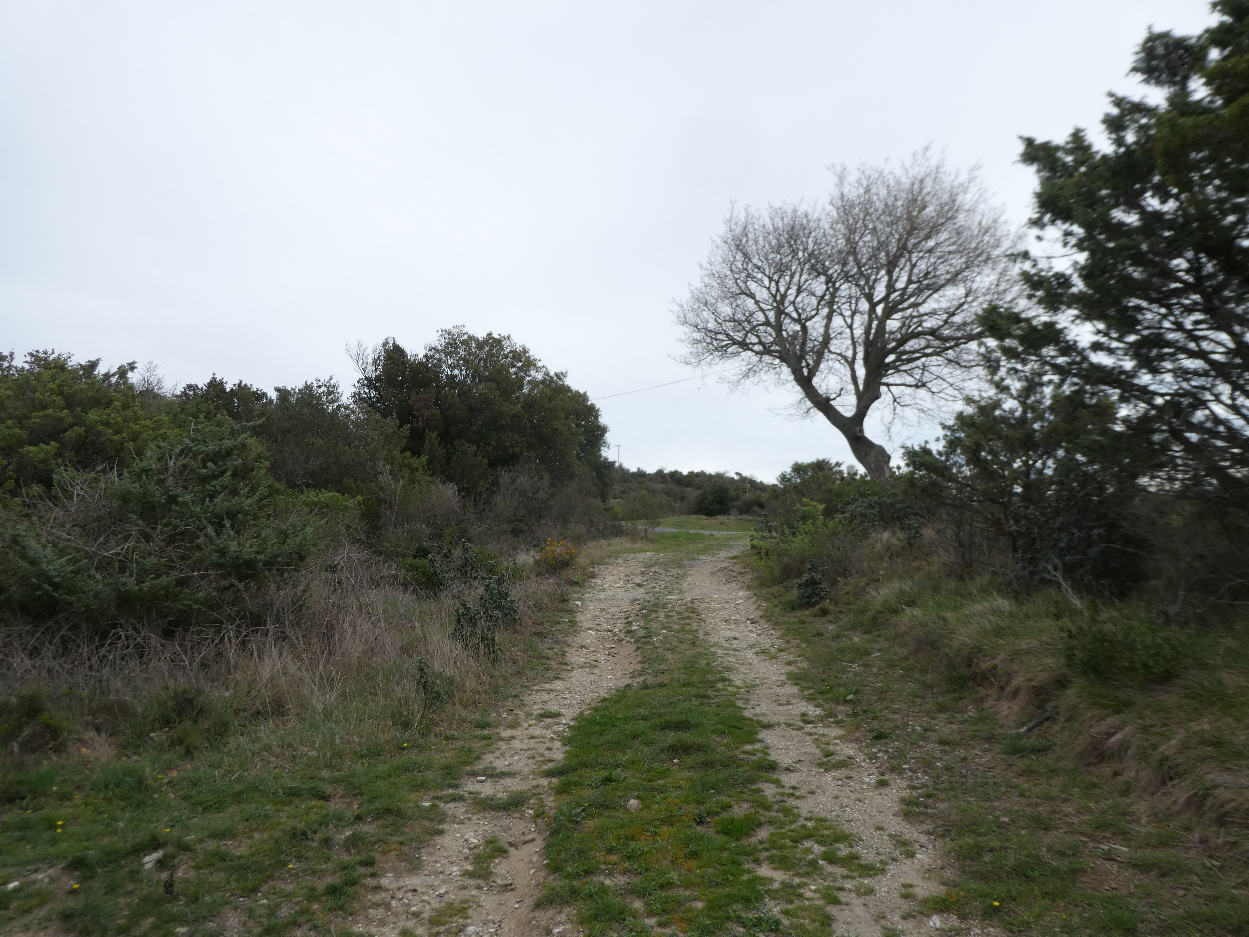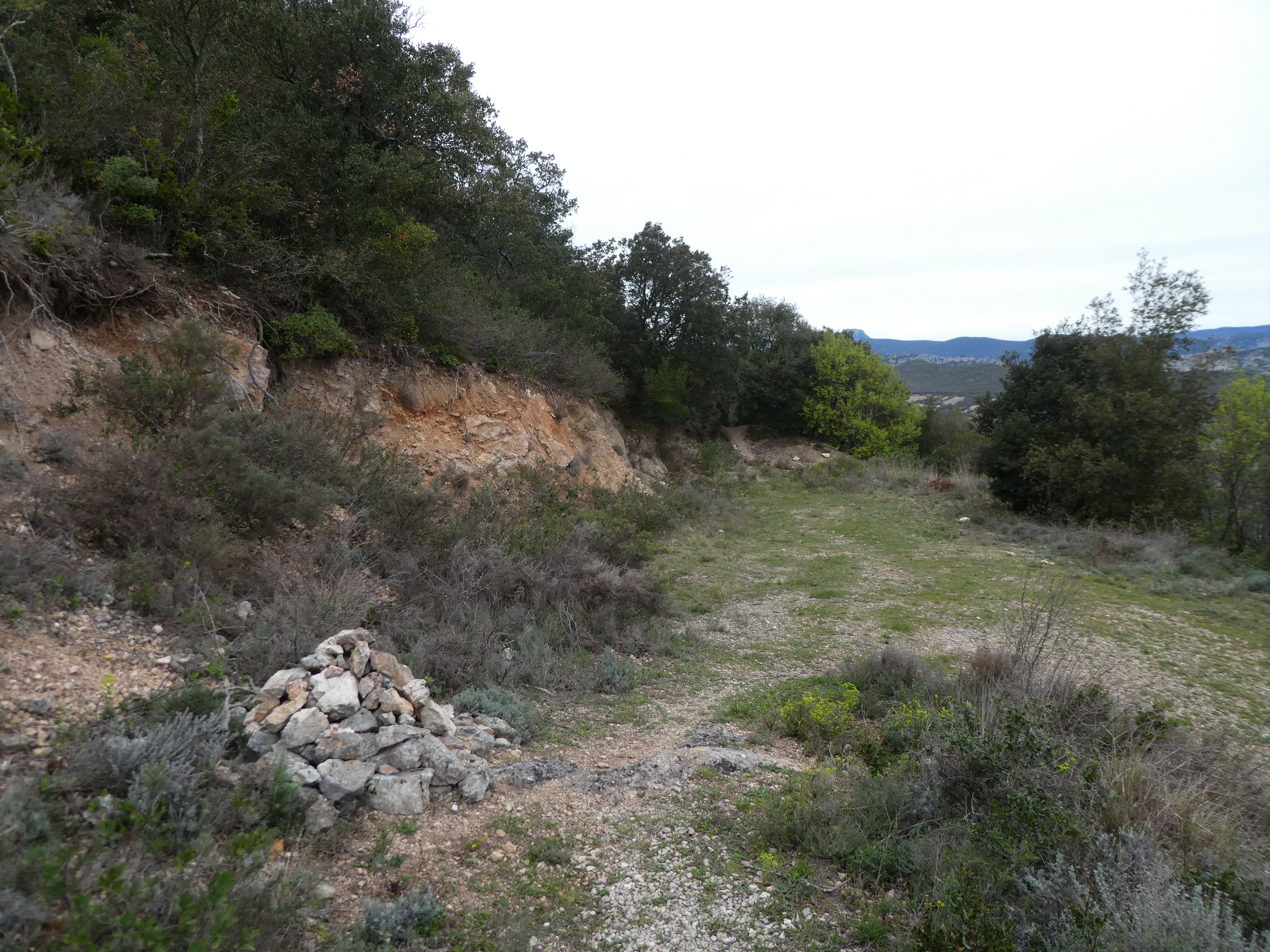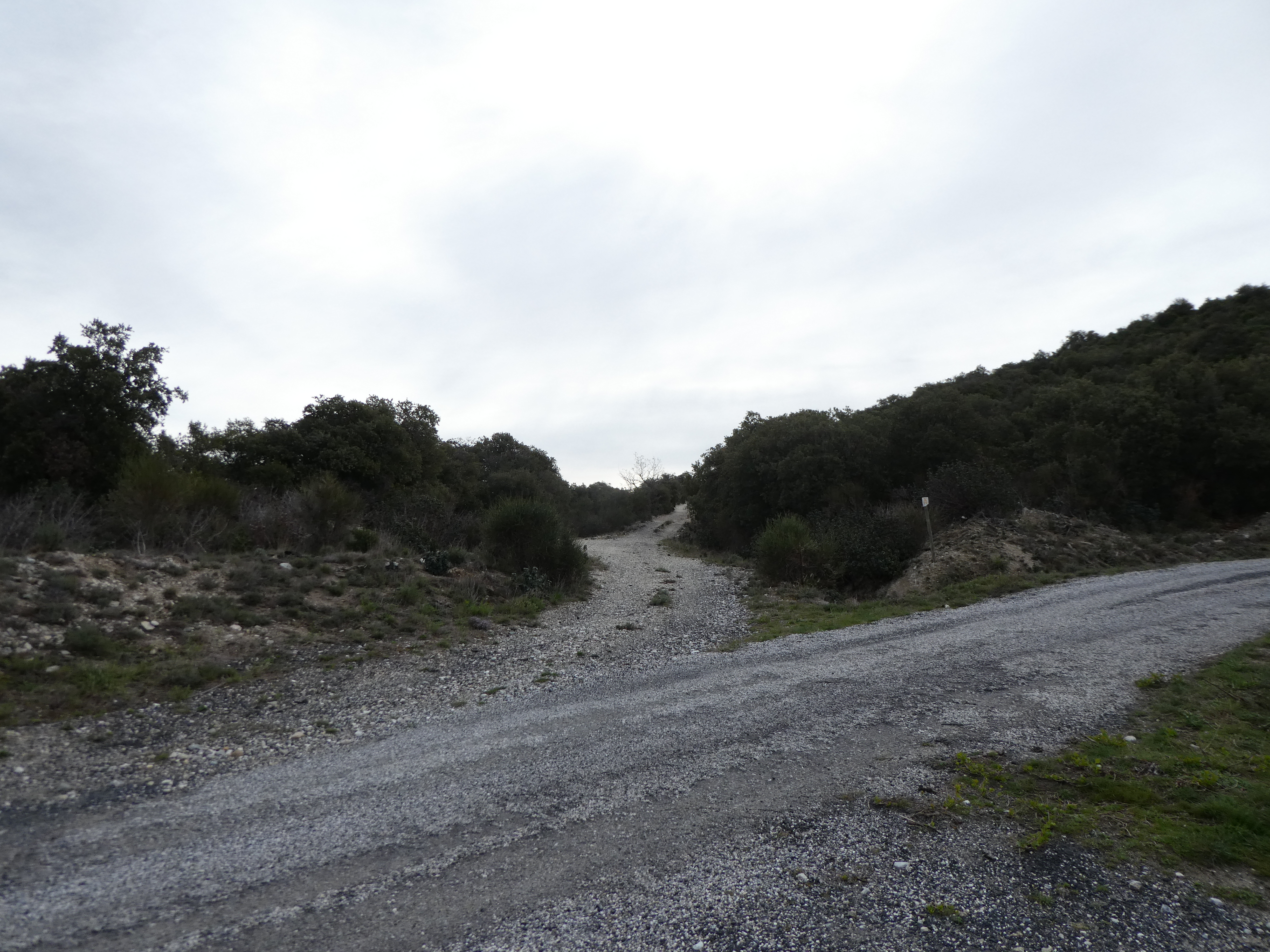 A ce croisement avec la piste DFCI F53 (400 mètres après le lieu-dit "Aqueduc Romain d'Ansignan"), suivre cette dernière montant sur la gauche direction Saint-Arnac, balisé sporadiquement en balises VTT n°15 dorénavant