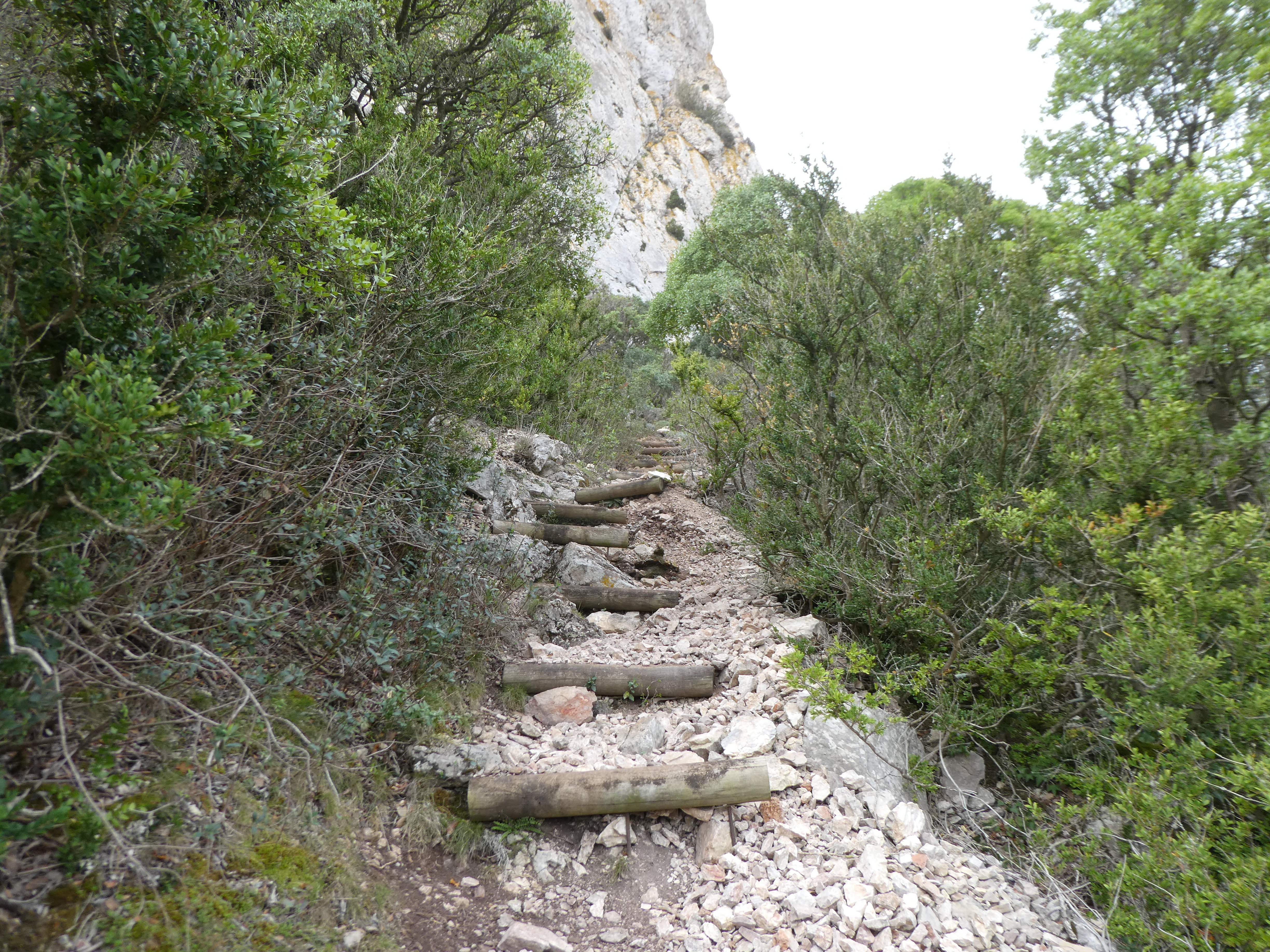 Sentier aménagé par endroits pour l'ascension du Serre de Vergés