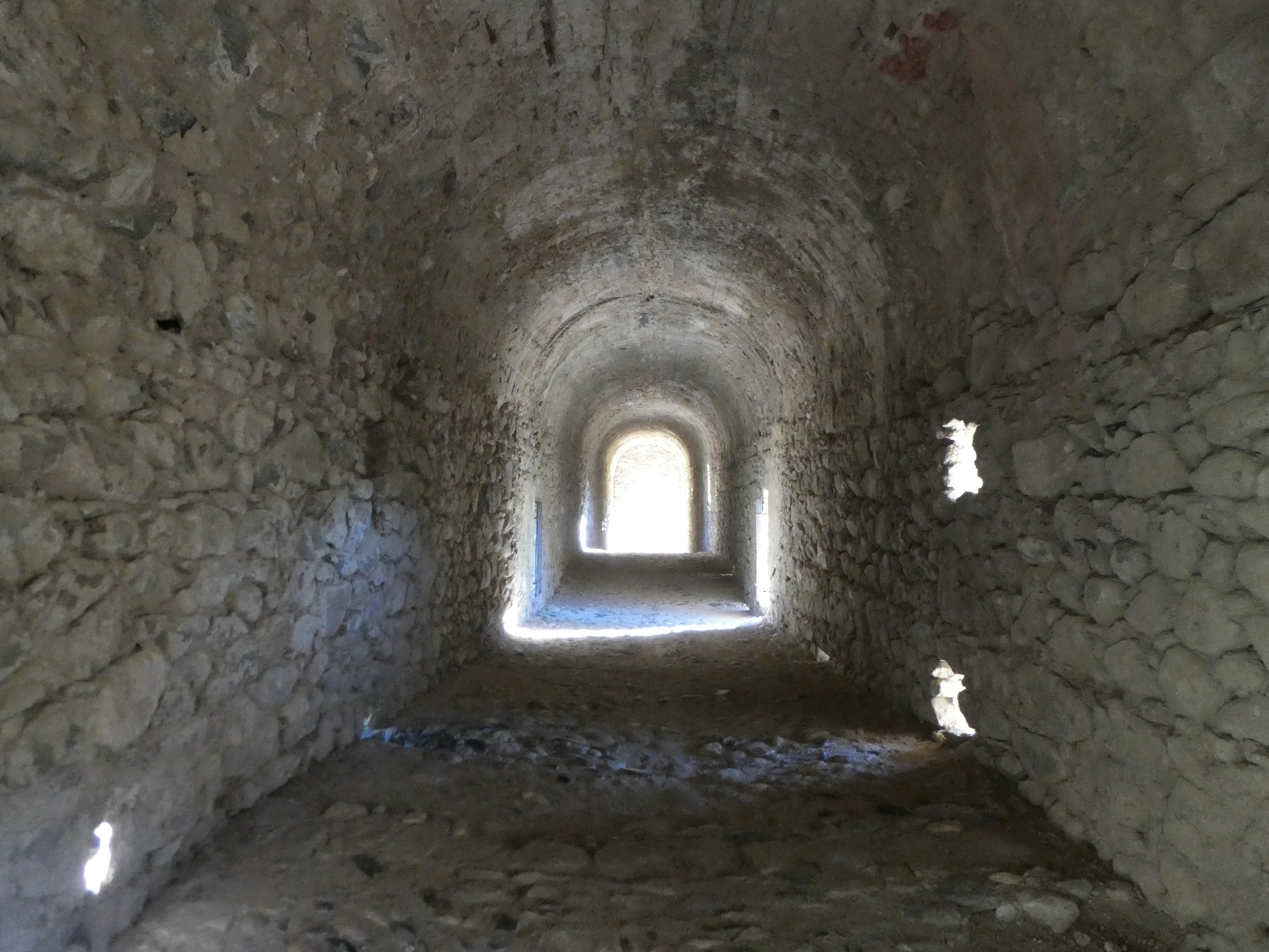 Aqueduc Romain d'Ansignan (188 m) : suivre le chemin partant légèrement sur la gauche à l'intérieur de l'aqueduc direction Saint-Arnac, balisé en jaune
