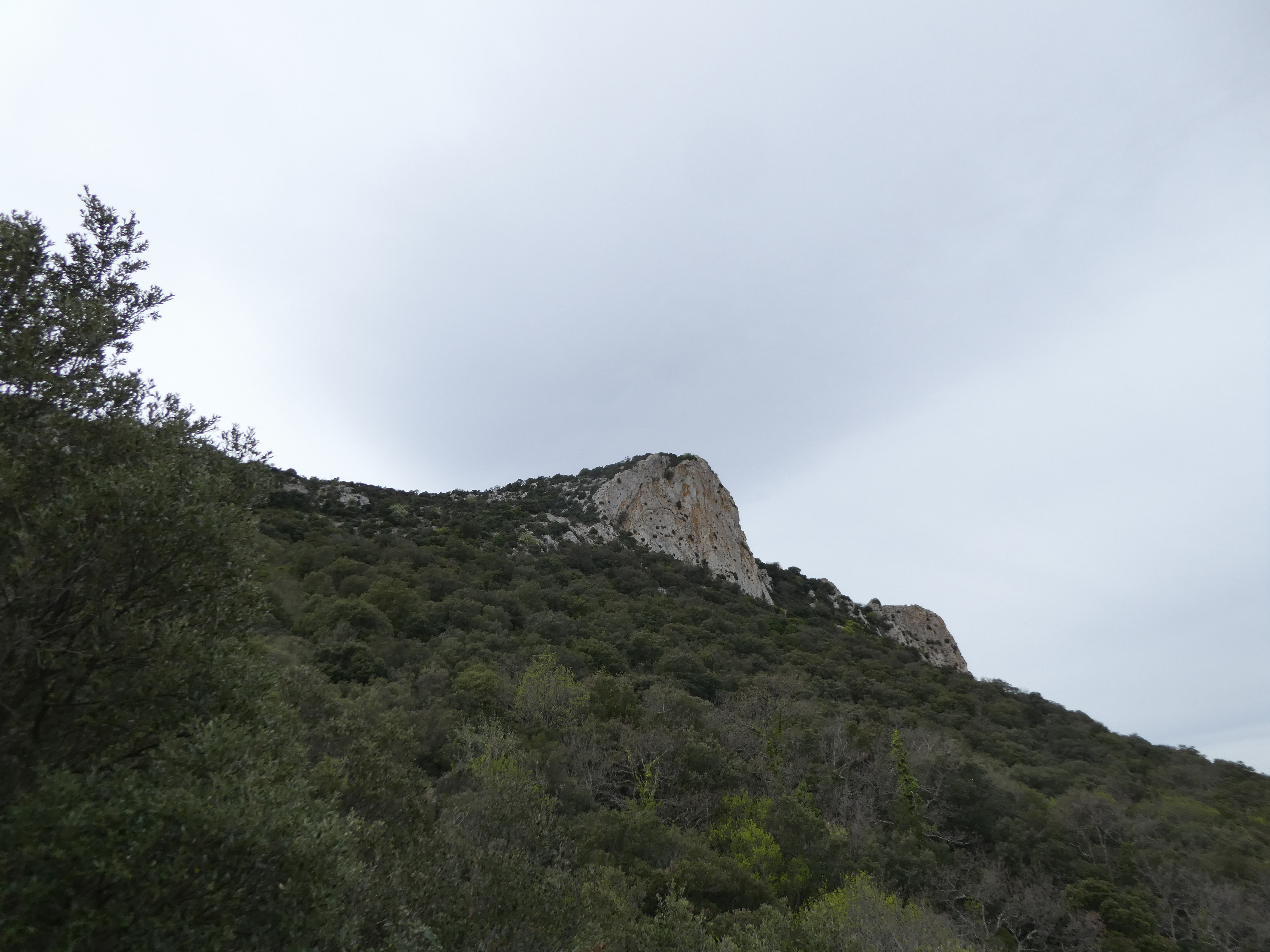 Zoom sur le Roc de la Gourgue (1618 m) situé dans les Monts d'Olmes en Ariège