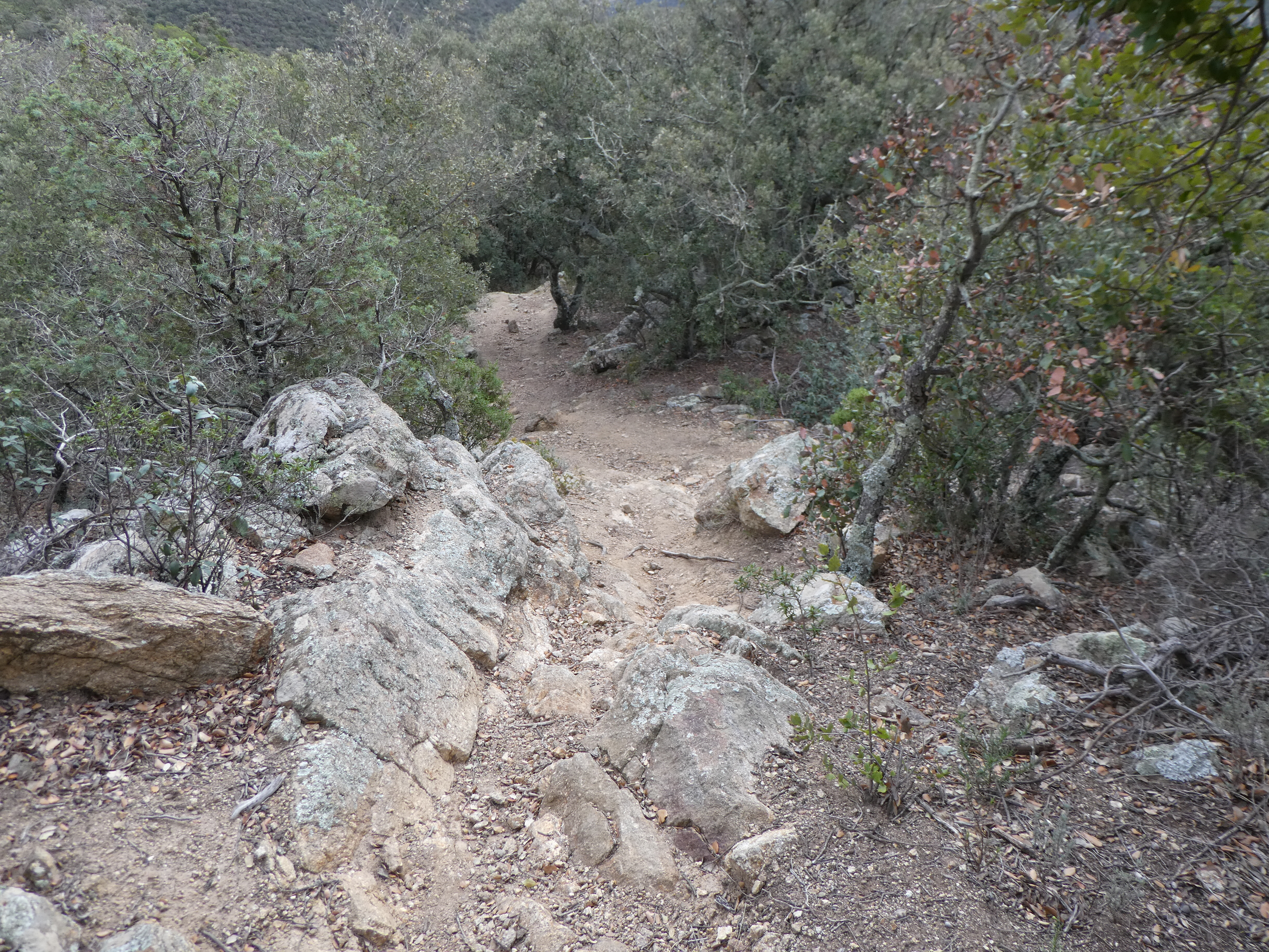 - Portions de descente raide sur le sentier de la Garrigue de Roque Rouge
