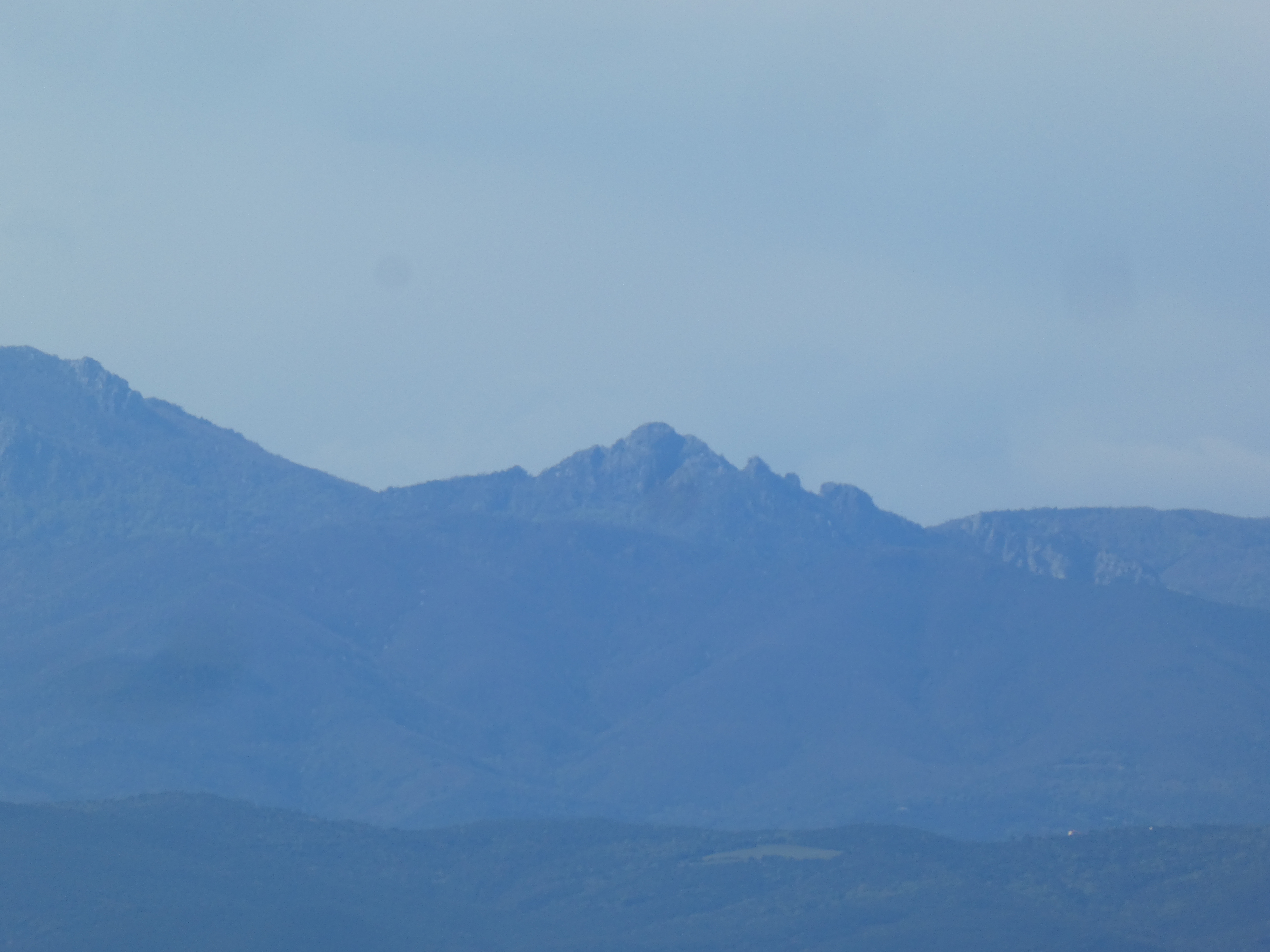 Vue au loin sur les sommets du Vallespir et notamment sur le massif du Roc de France au centre
