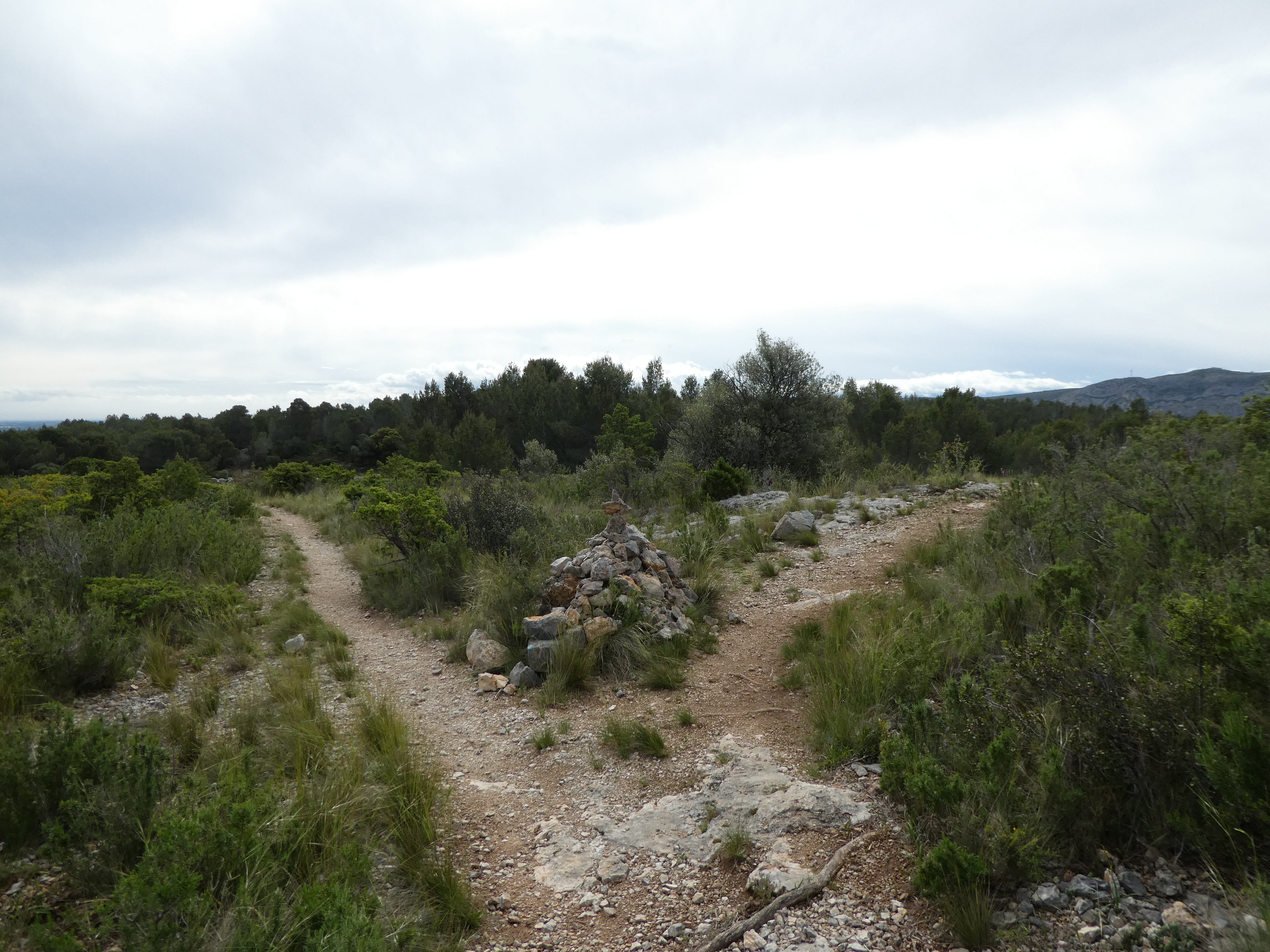 A ce croisement cairné (150 mètres après le précédent), suivre le chemin descendant légèrement sur la gauche direction Cases-de-Pène, balisé sporadiquement en jaune (pour information, le chemin de droite descend dans la Coma de les Teixoneres)