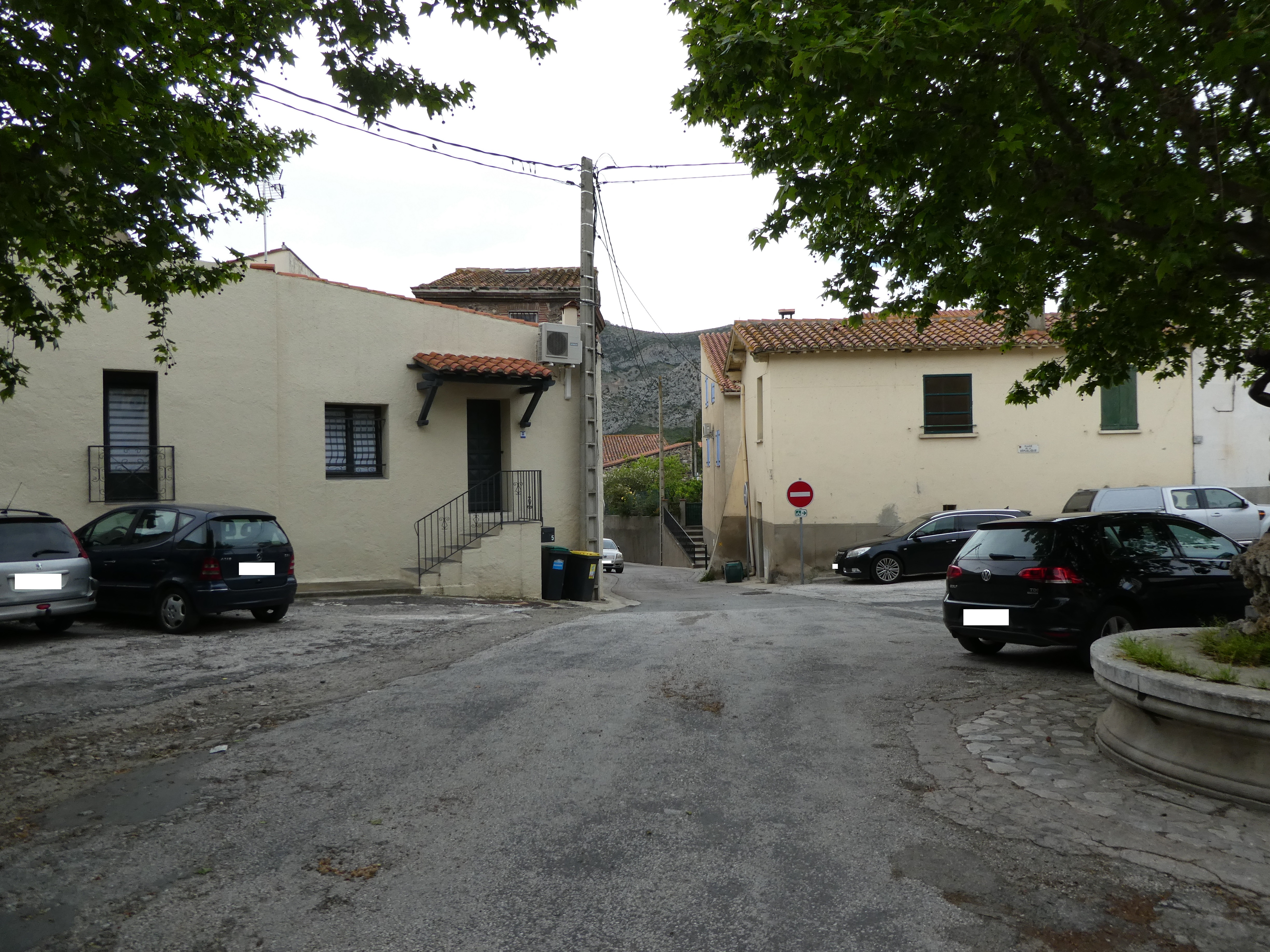 A cette intersection située au niveau de la Place de la Fontaine (150 mètres après le départ), délaisser l'itinéraire balisé en jaune partant sur la droite pour suivre la rue partant tout droit vers la D59 direction Estagel, aucun balisage dorénavant