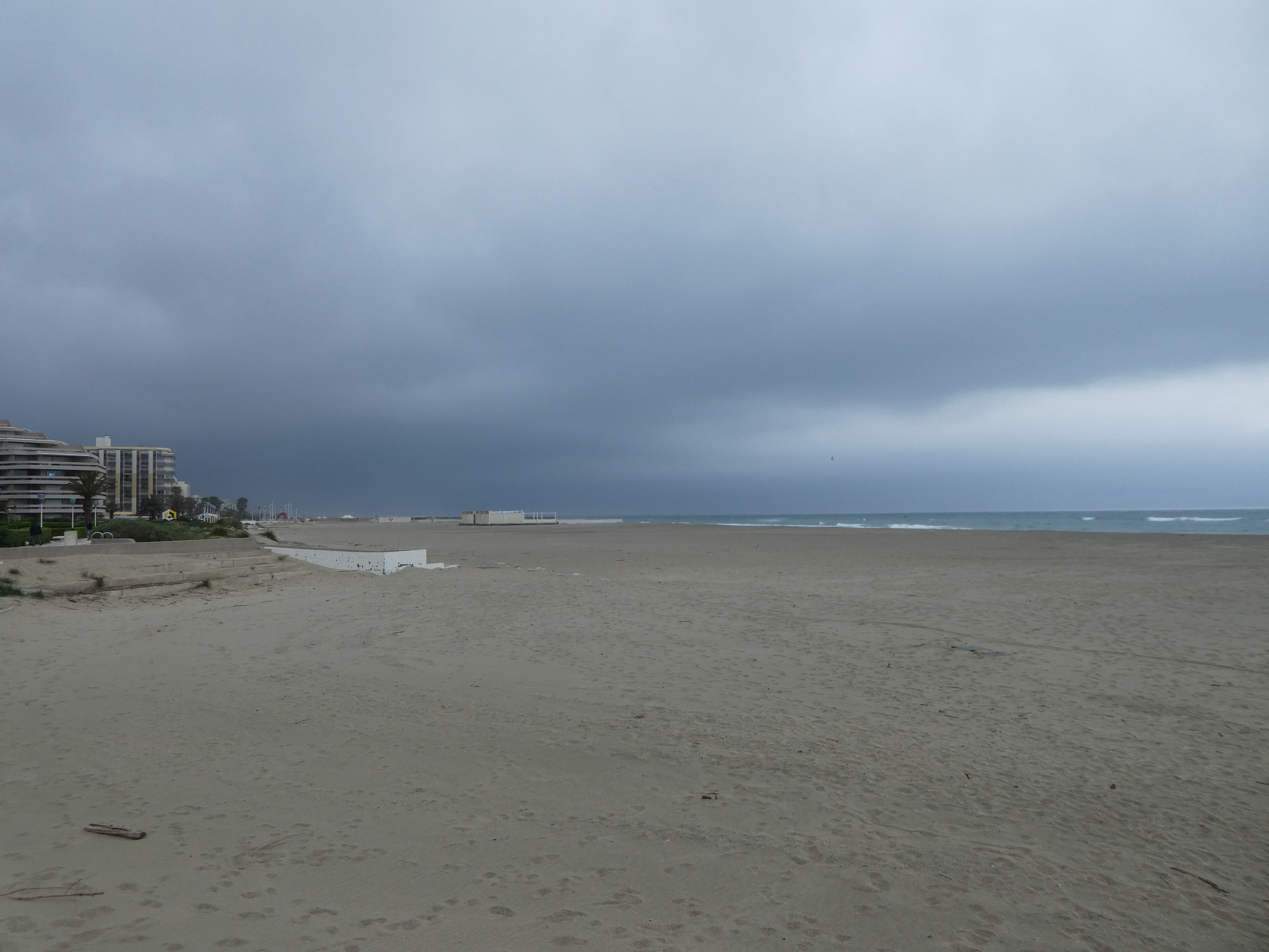 La longue plage de Canet-en-Roussillon et le temps qui commence à menacer !