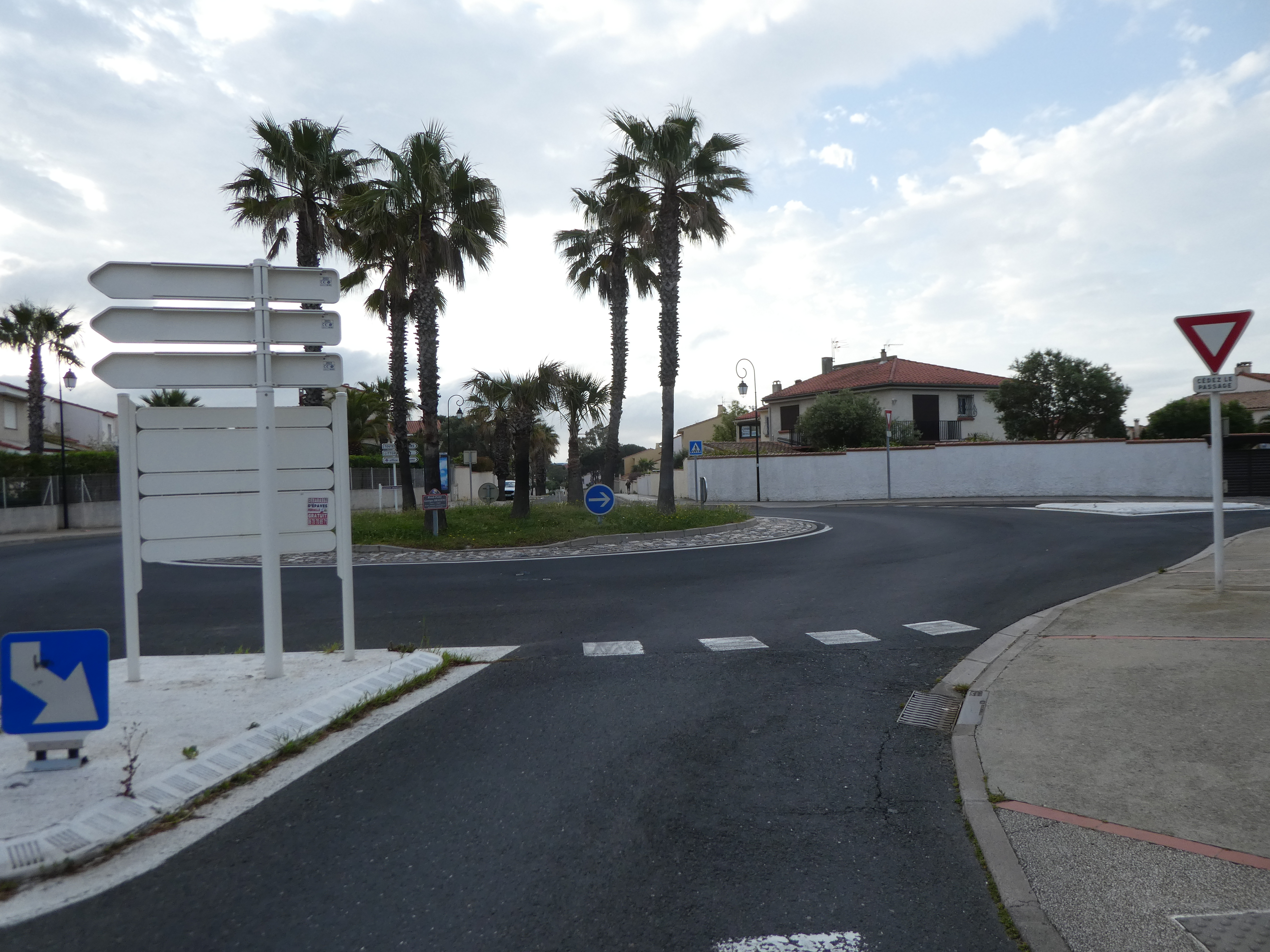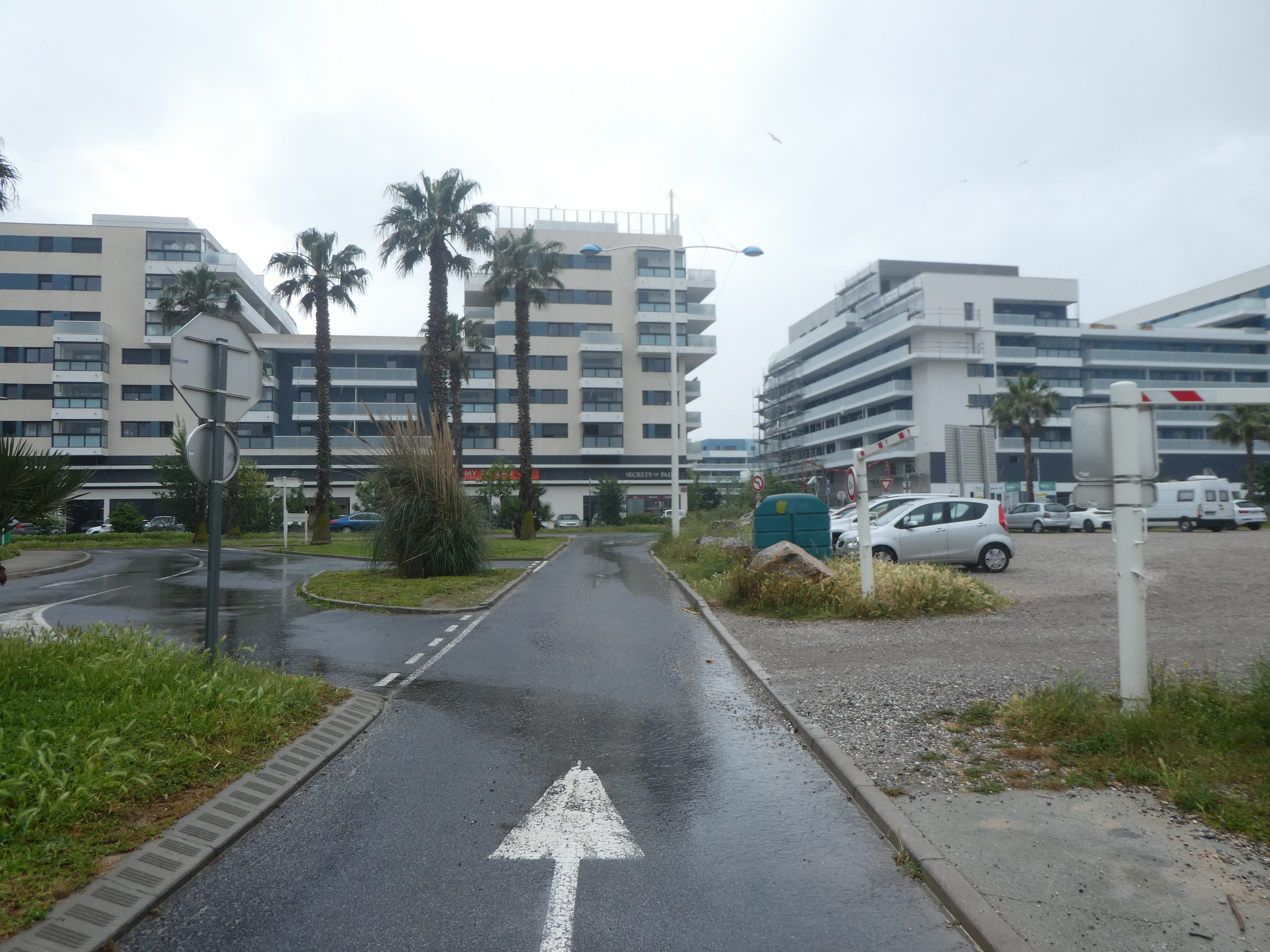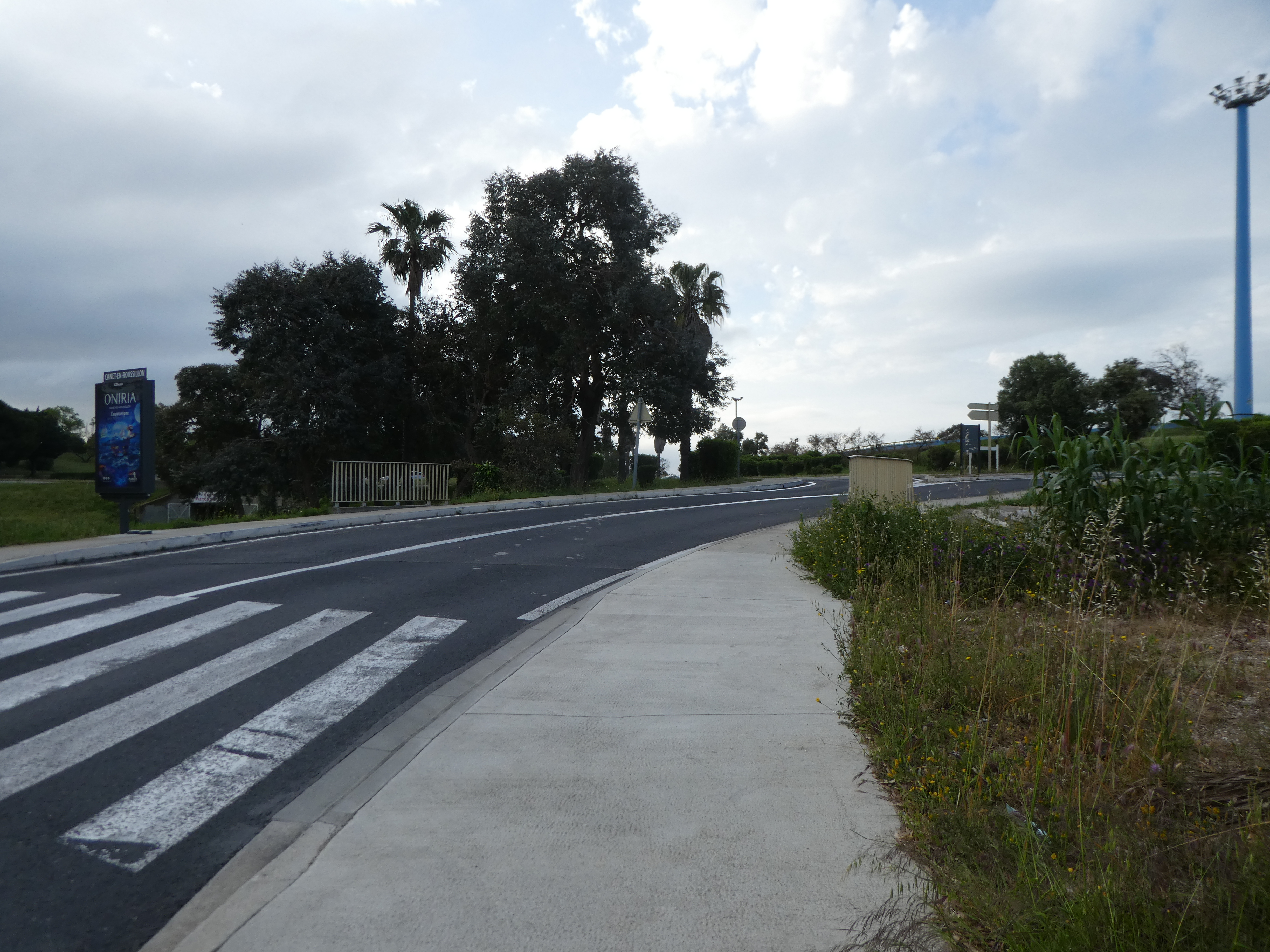 A ce croisement situé à l'entrée du parking de l'aquarium Oniria (3300 mètres après le précédent), traverser ce dernier tout droit pour atteindre l'aquarium direction Embouchure de la Têt