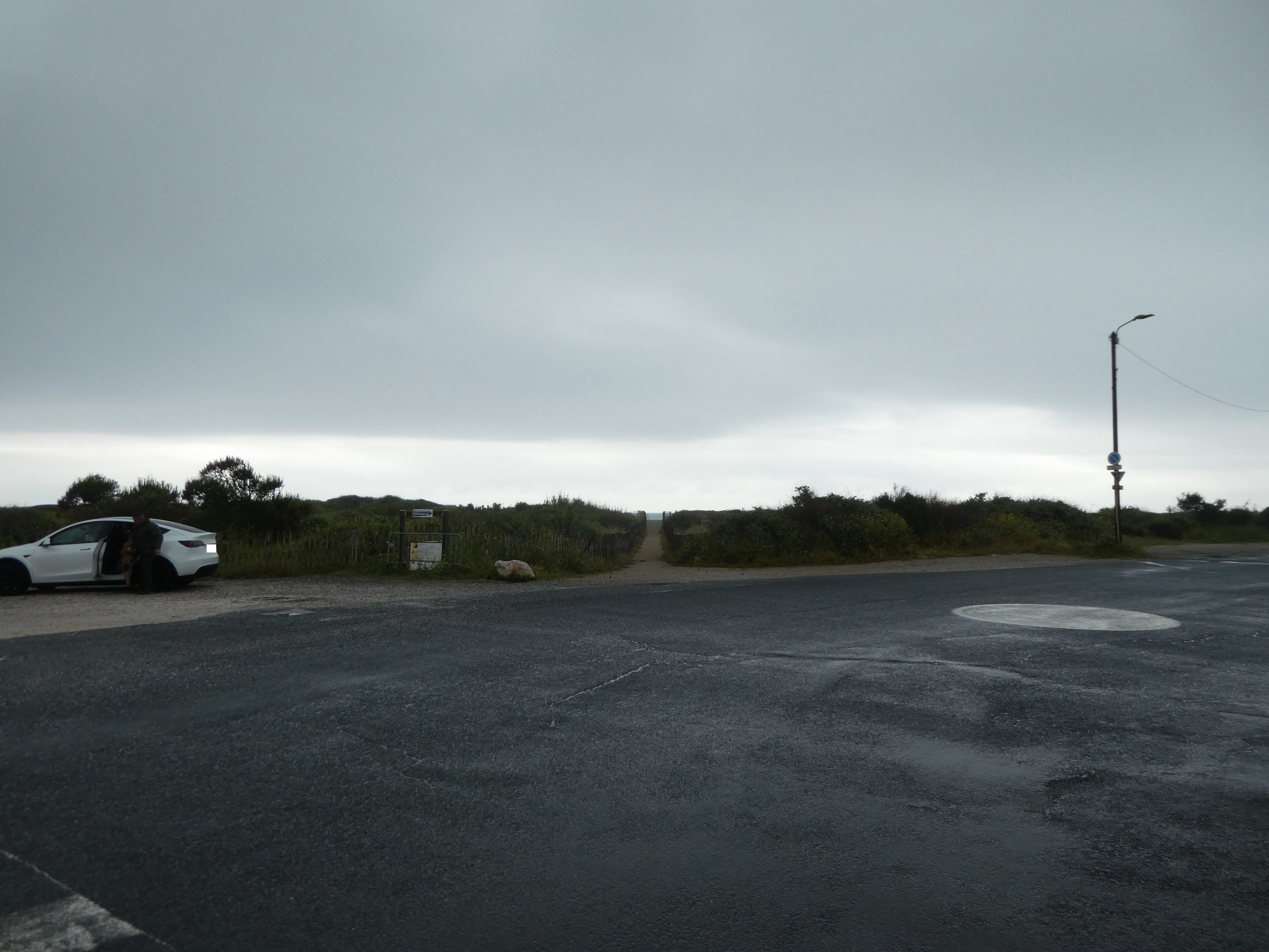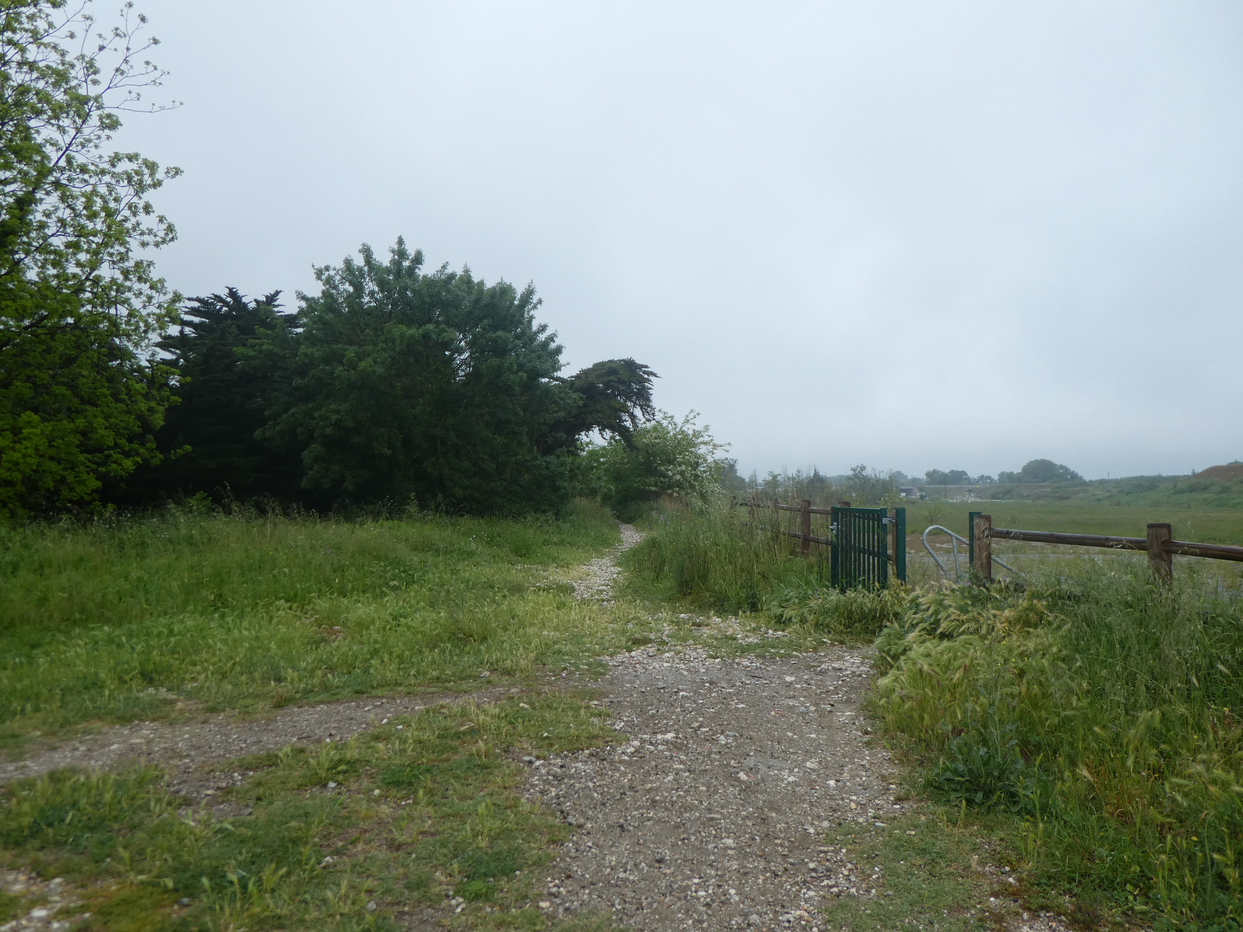 A ce croisement avec la piste cyclable passant de l'autre côté de la D617 (300 mètres après le précédent rond-point), suivre cette dernière partant sur la droite puis celle partant sur la gauche juste après avoir passé la D617 direction Village de Pêcheurs