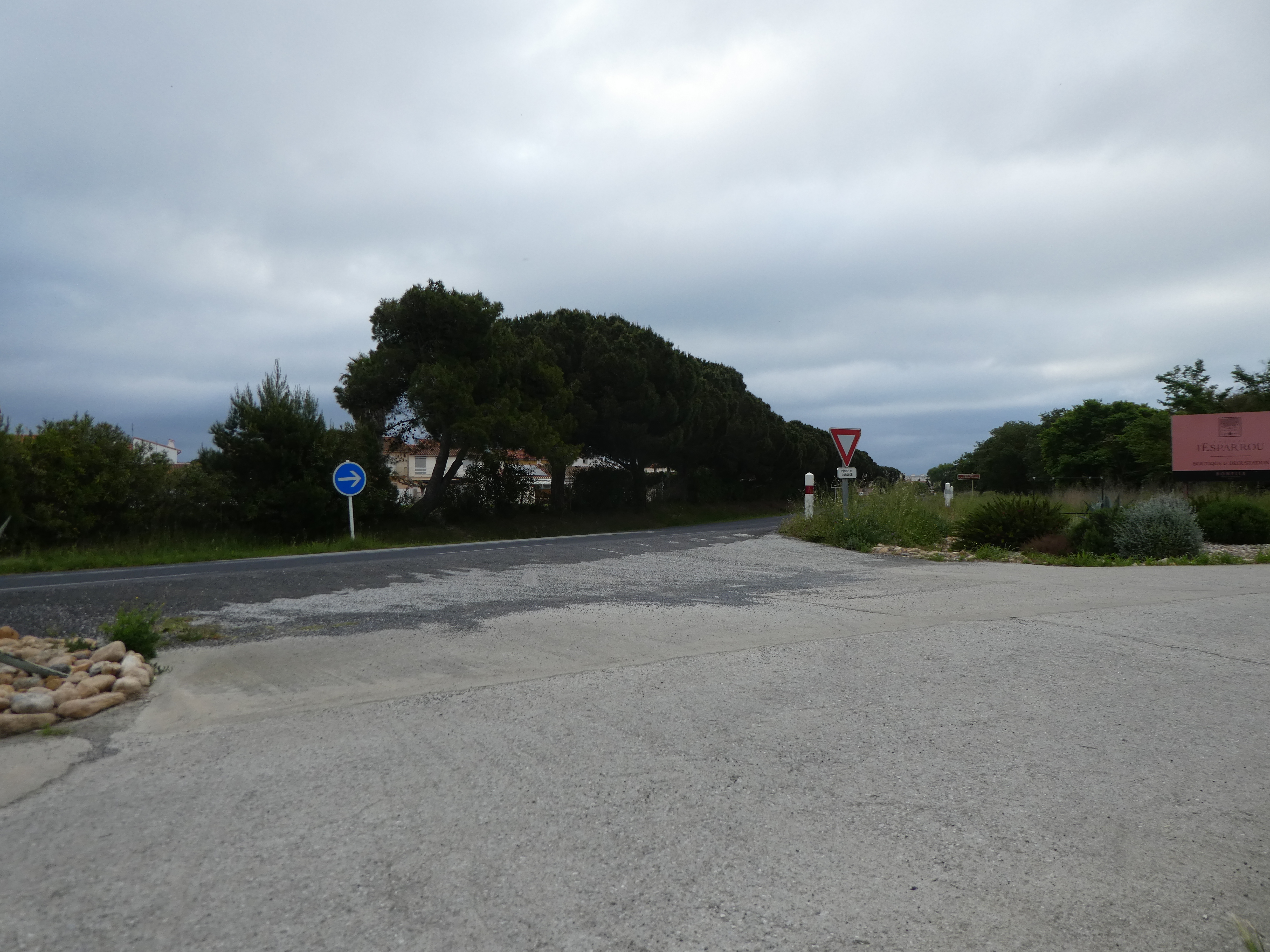 A ce croisement avec la route menant au Château de l'Esparrou (900 mètres après le précédent), suivre le chemin partant de biais sur la droite et longeant la D81a direction Village de Pêcheurs