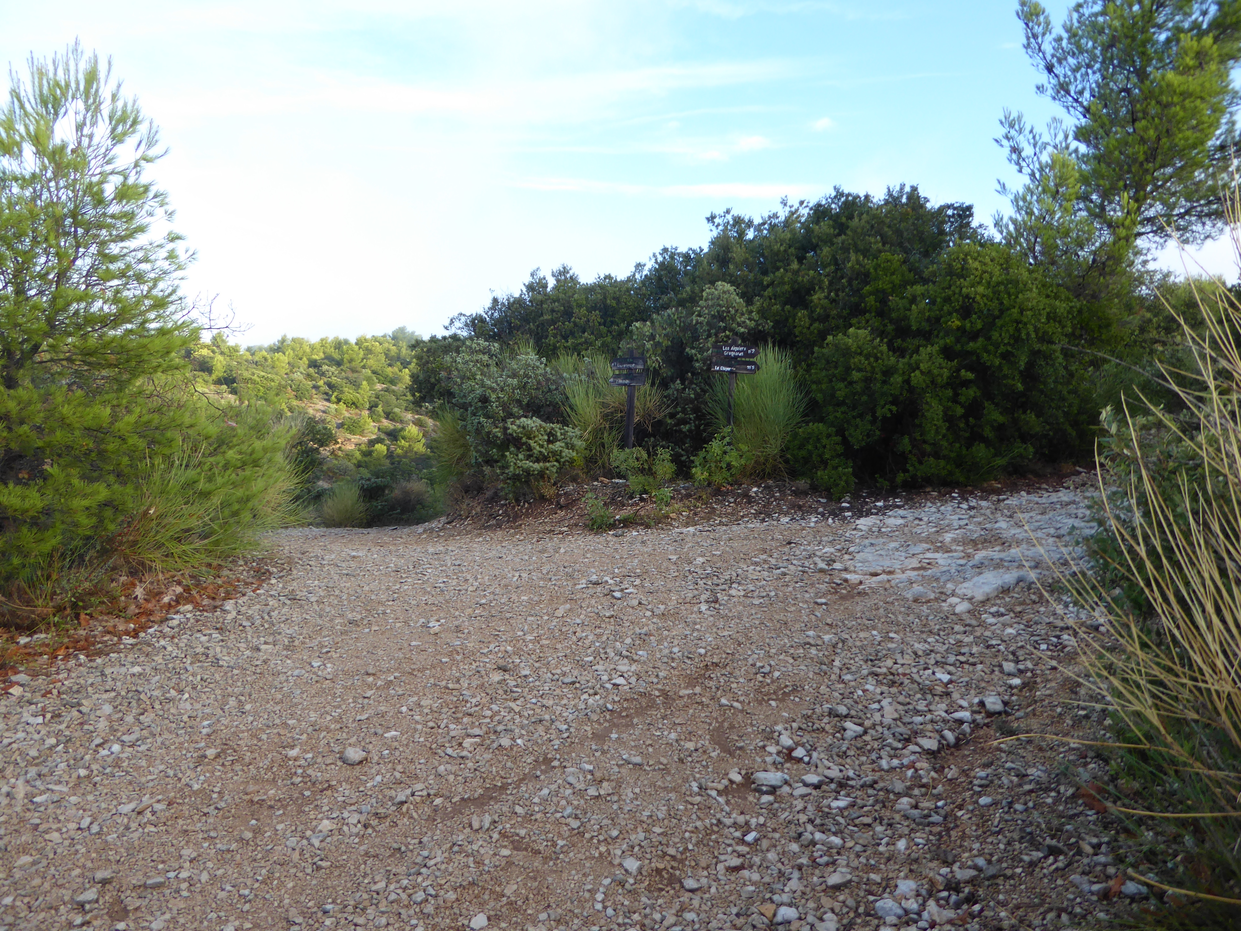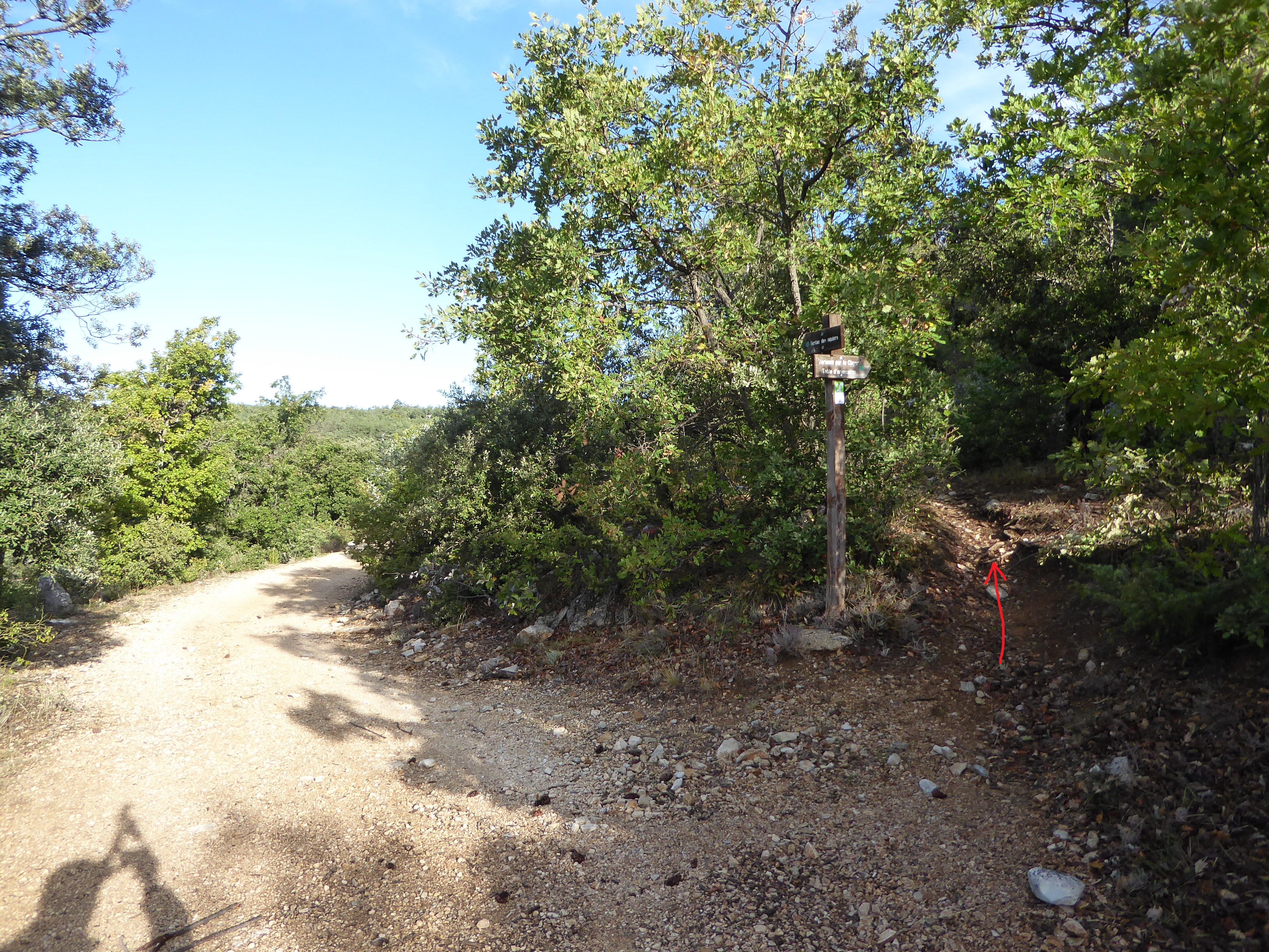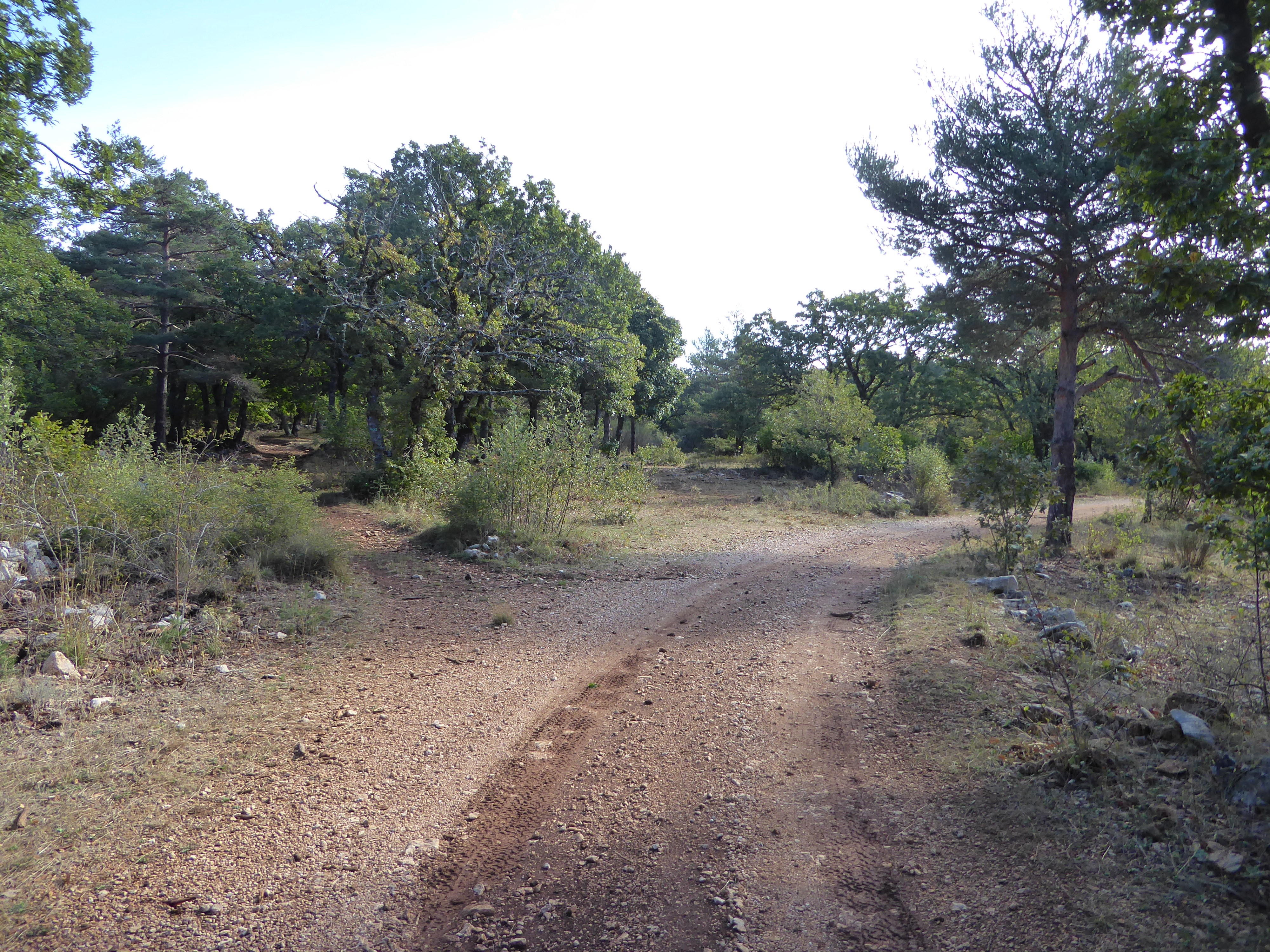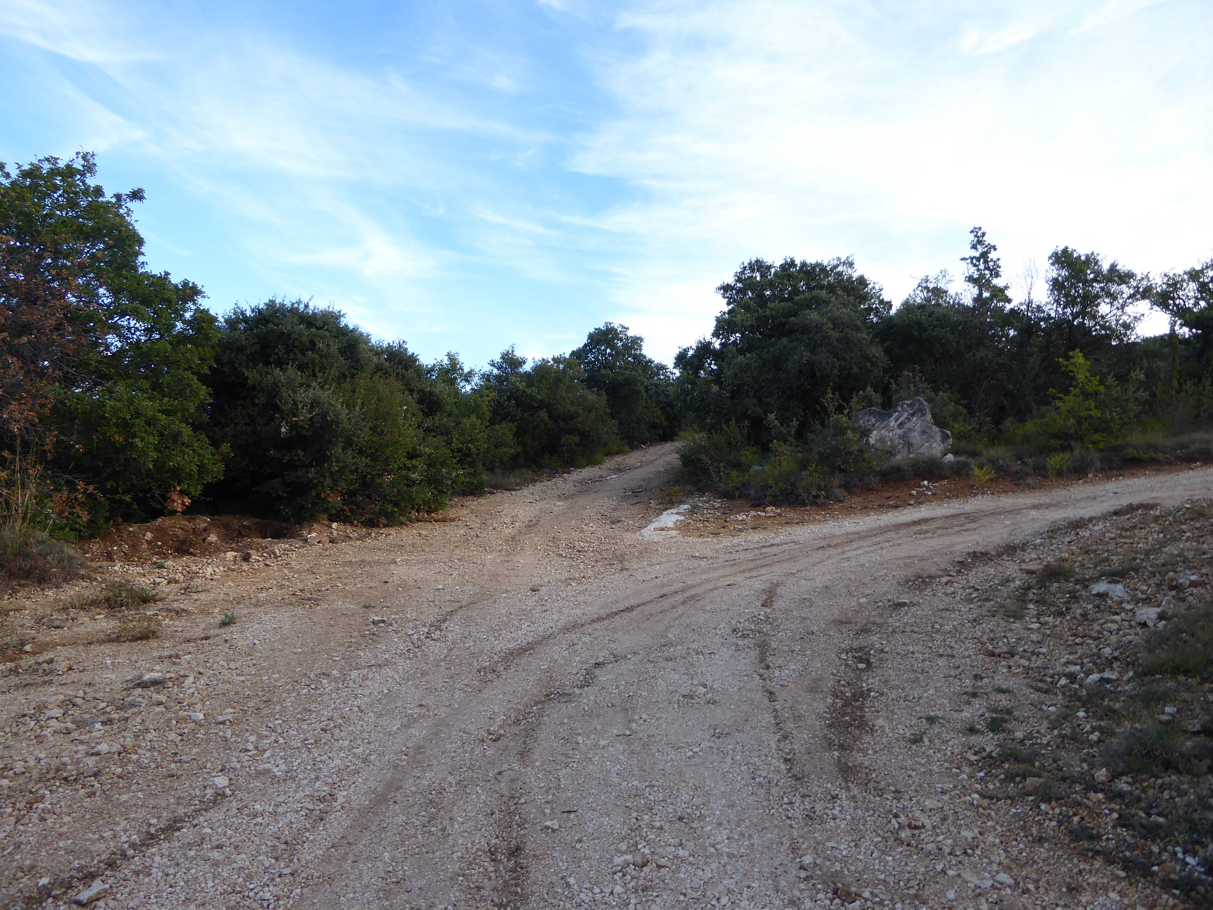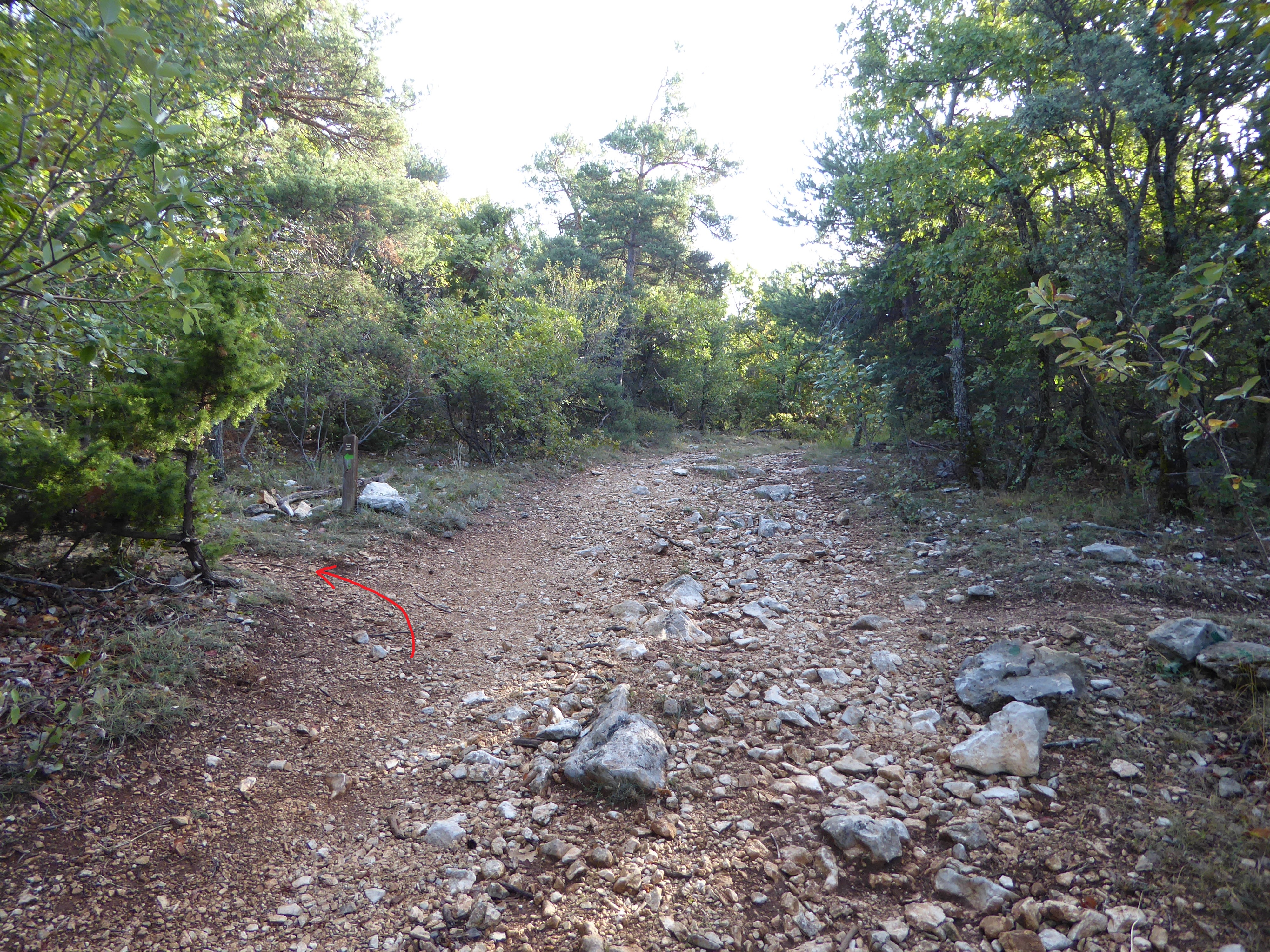 A ce croisement avce une large piste, suivre cette dernière à droite direction Saint-Saturnin-lès-Apt, balisé en points verts (n°5)