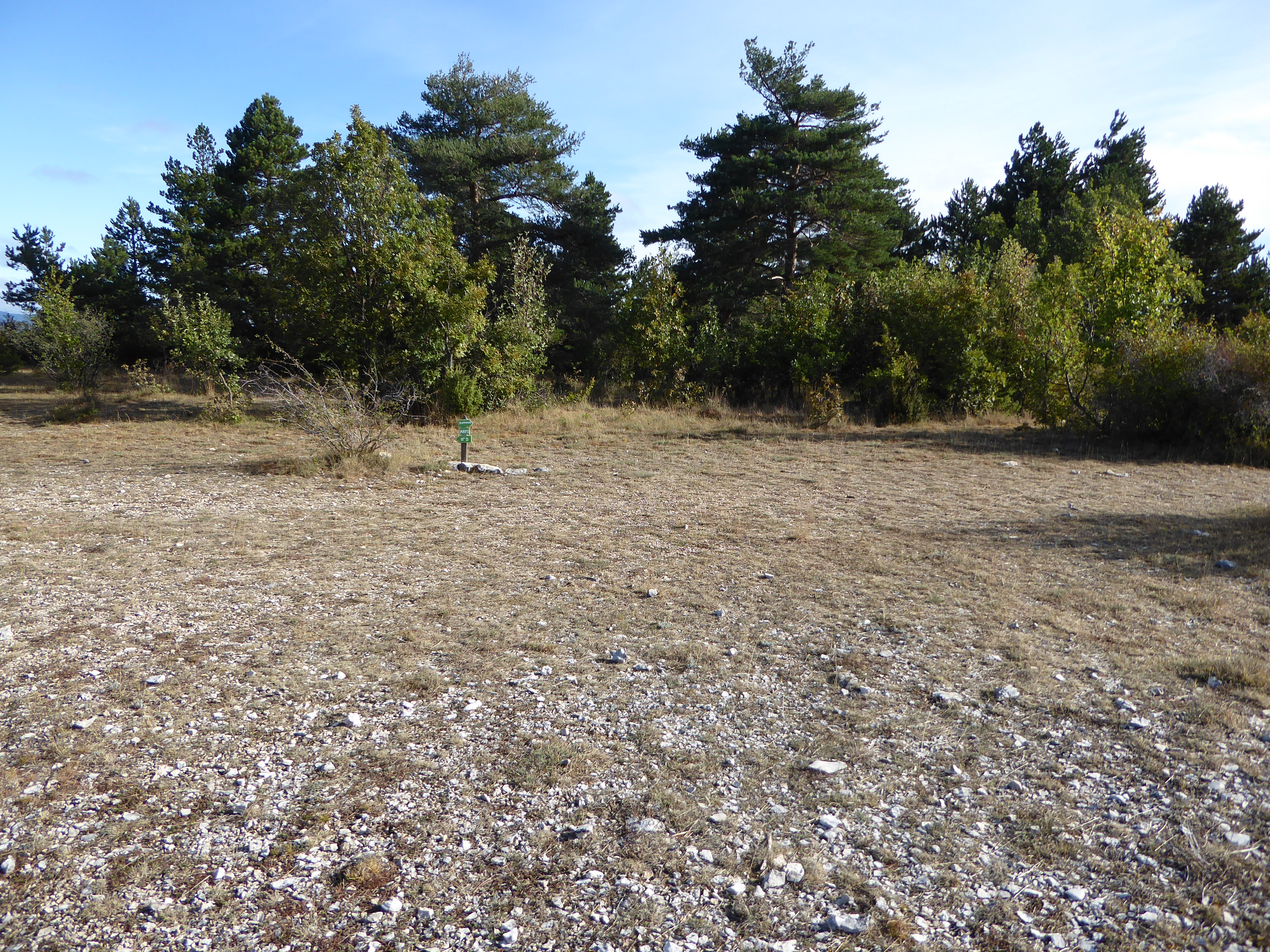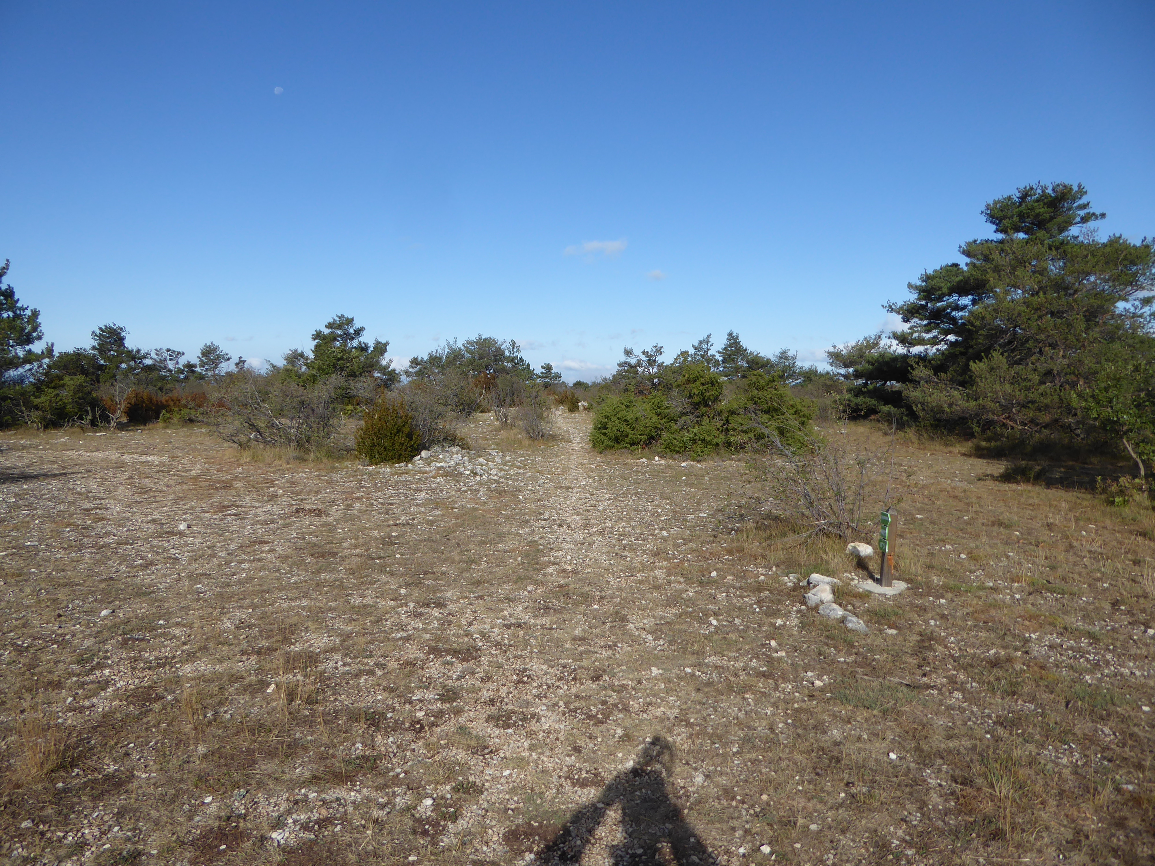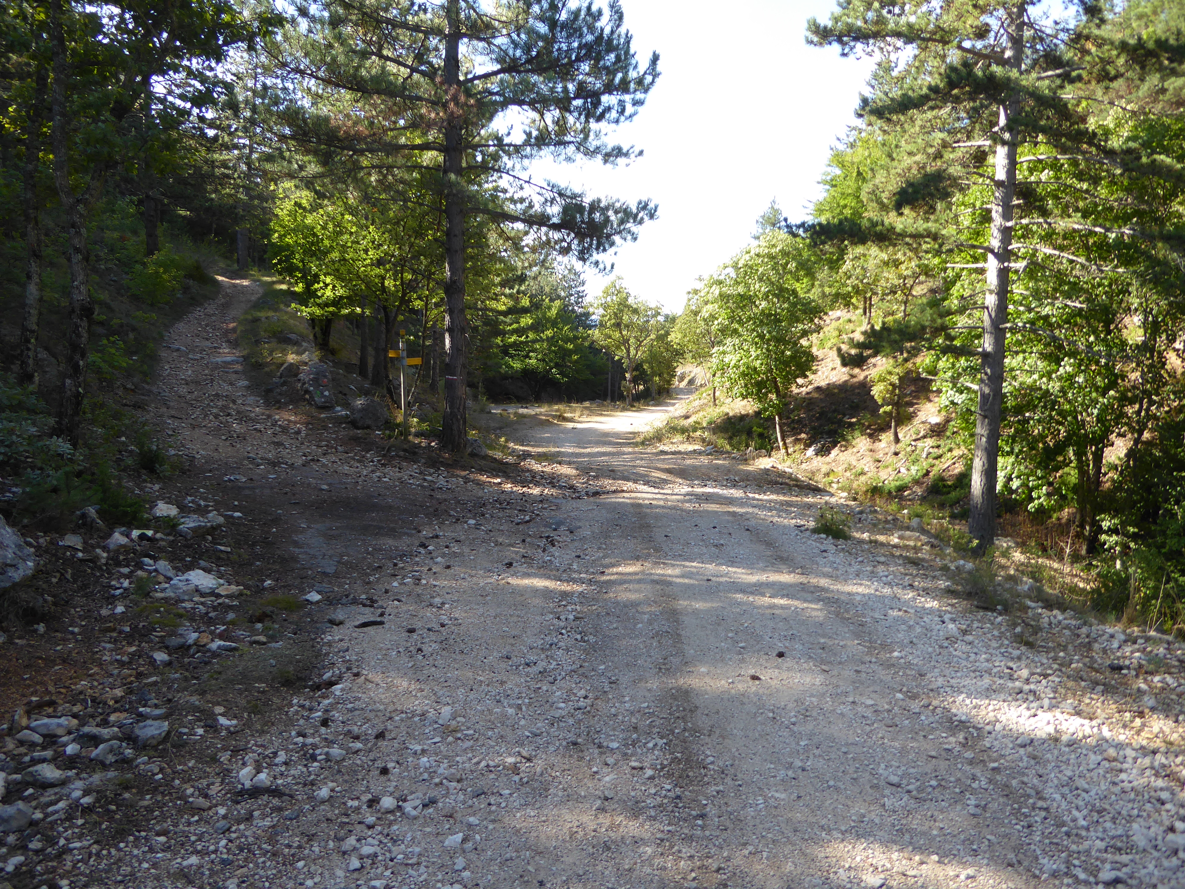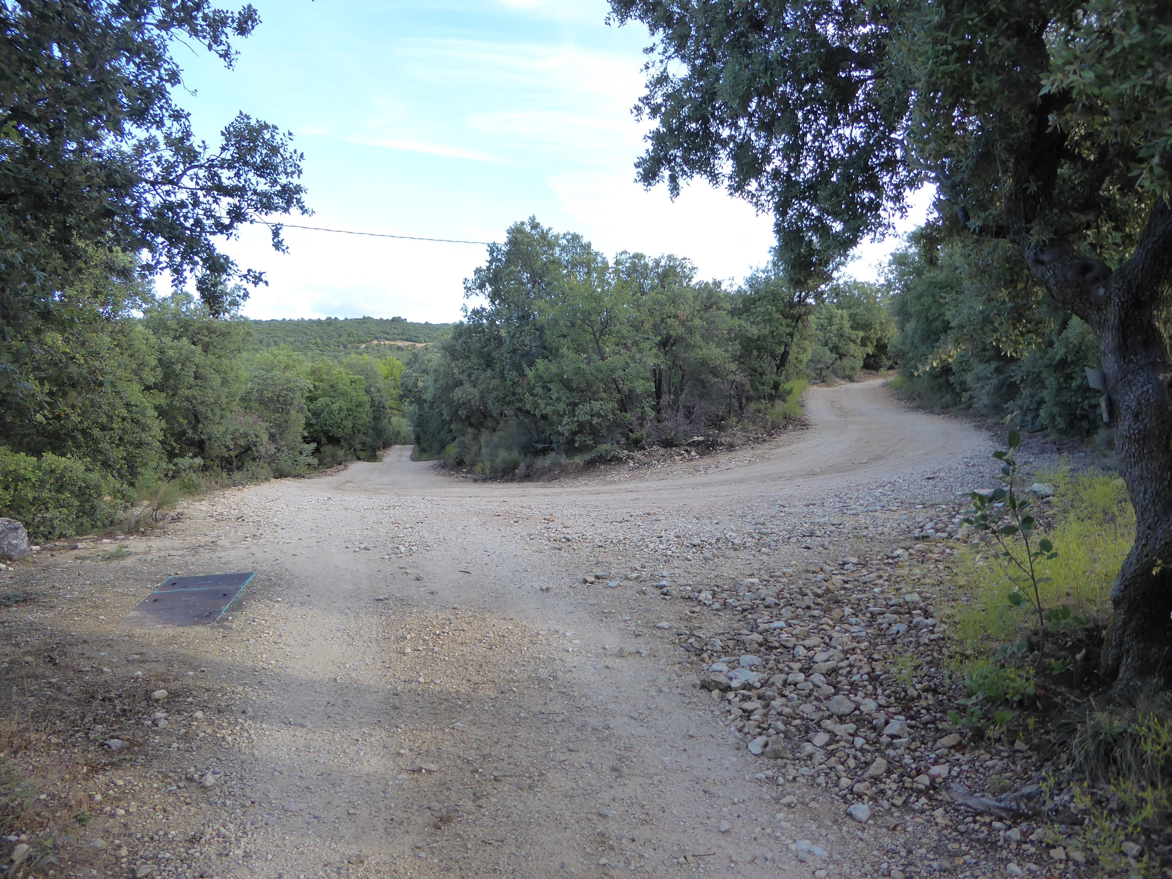 A ce croisement avce une large piste, suivre cette dernière à droite direction Saint-Saturnin-lès-Apt, balisé en points verts (n°5)