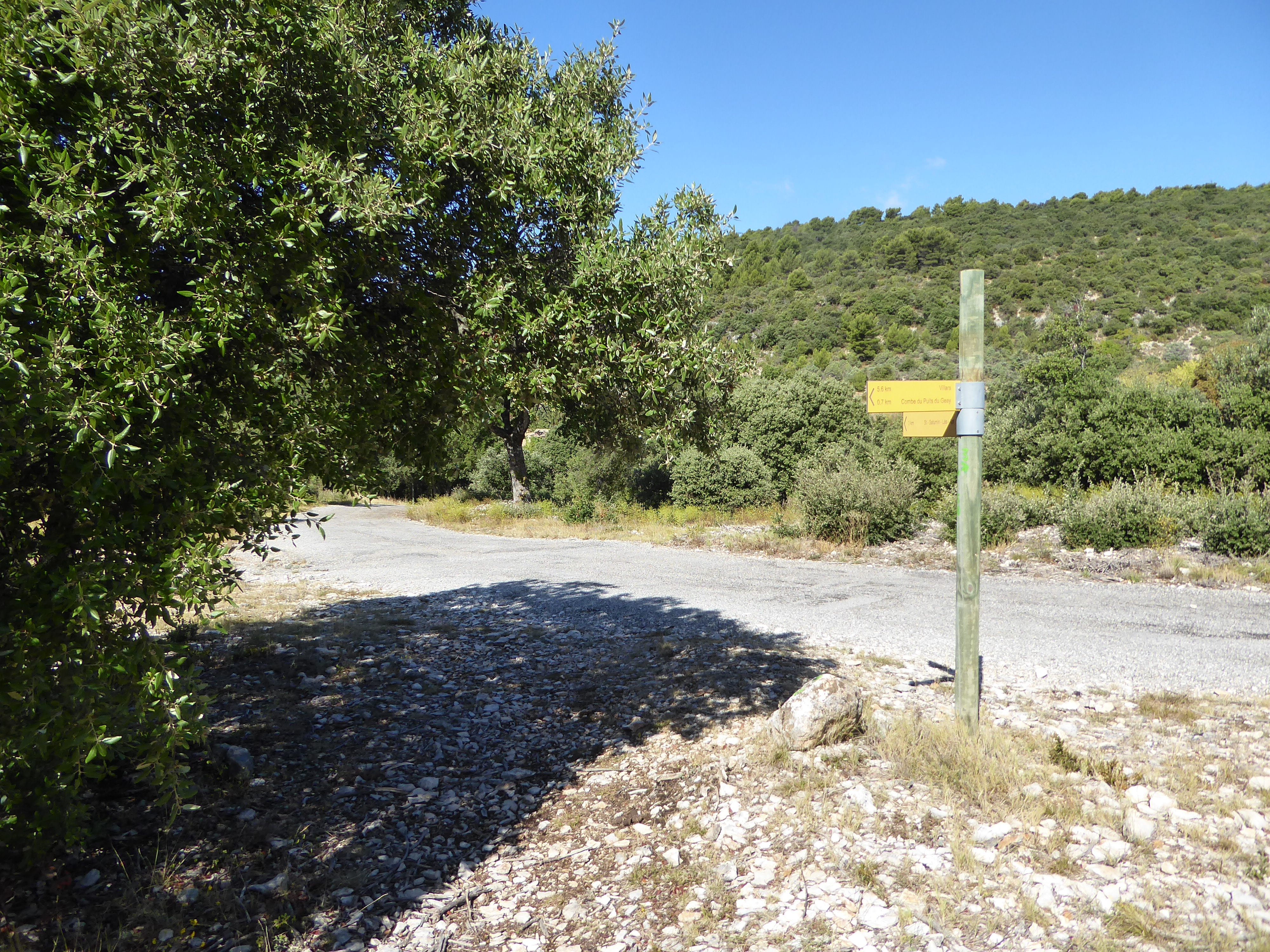 Combe du Puits du Geay (509 m) : suivre le chemin qui monte sur la droite direction Saint-Saturnin-lès-Apt, balisé en jaune et points verts (n°5) dorénavant