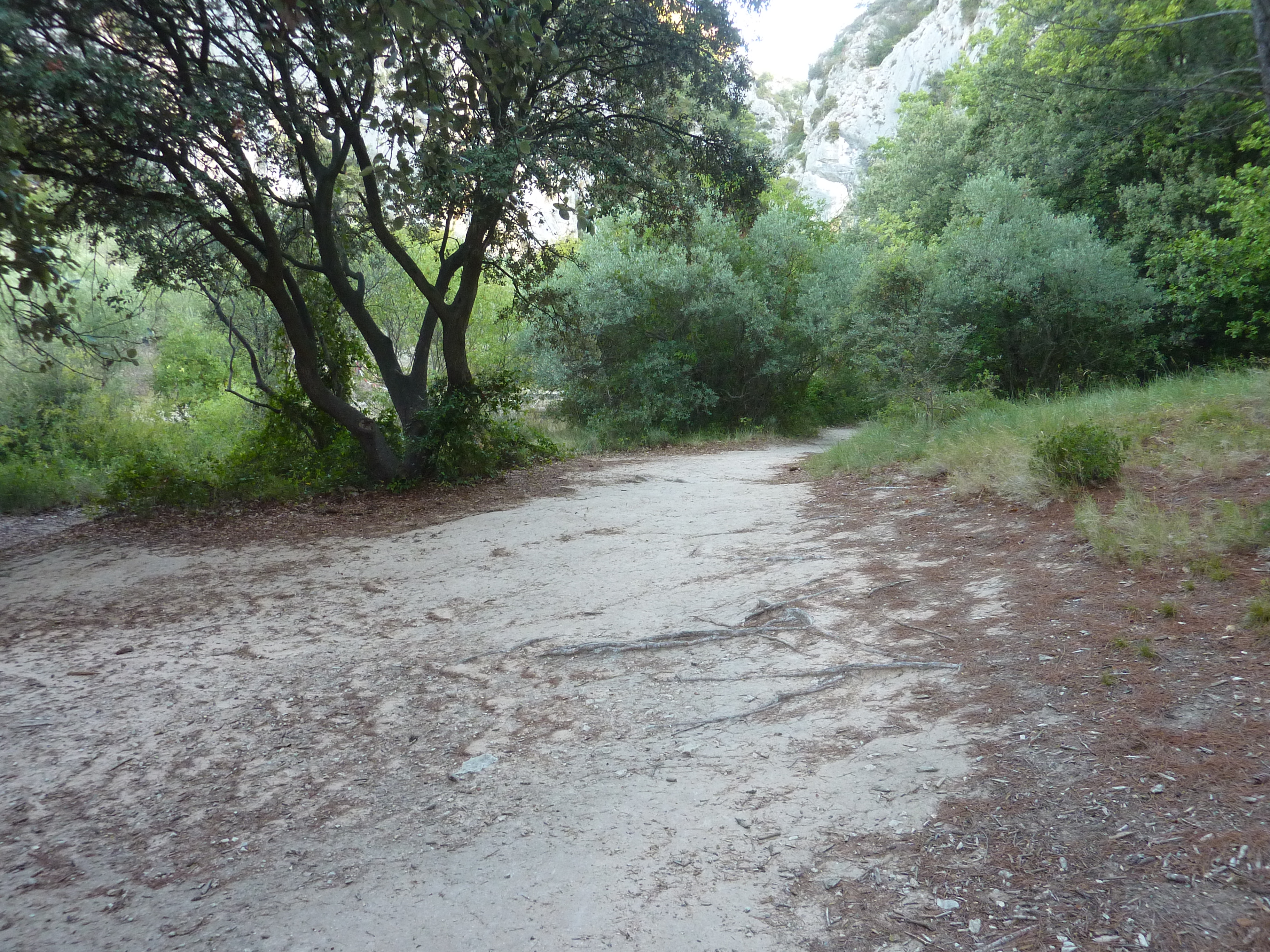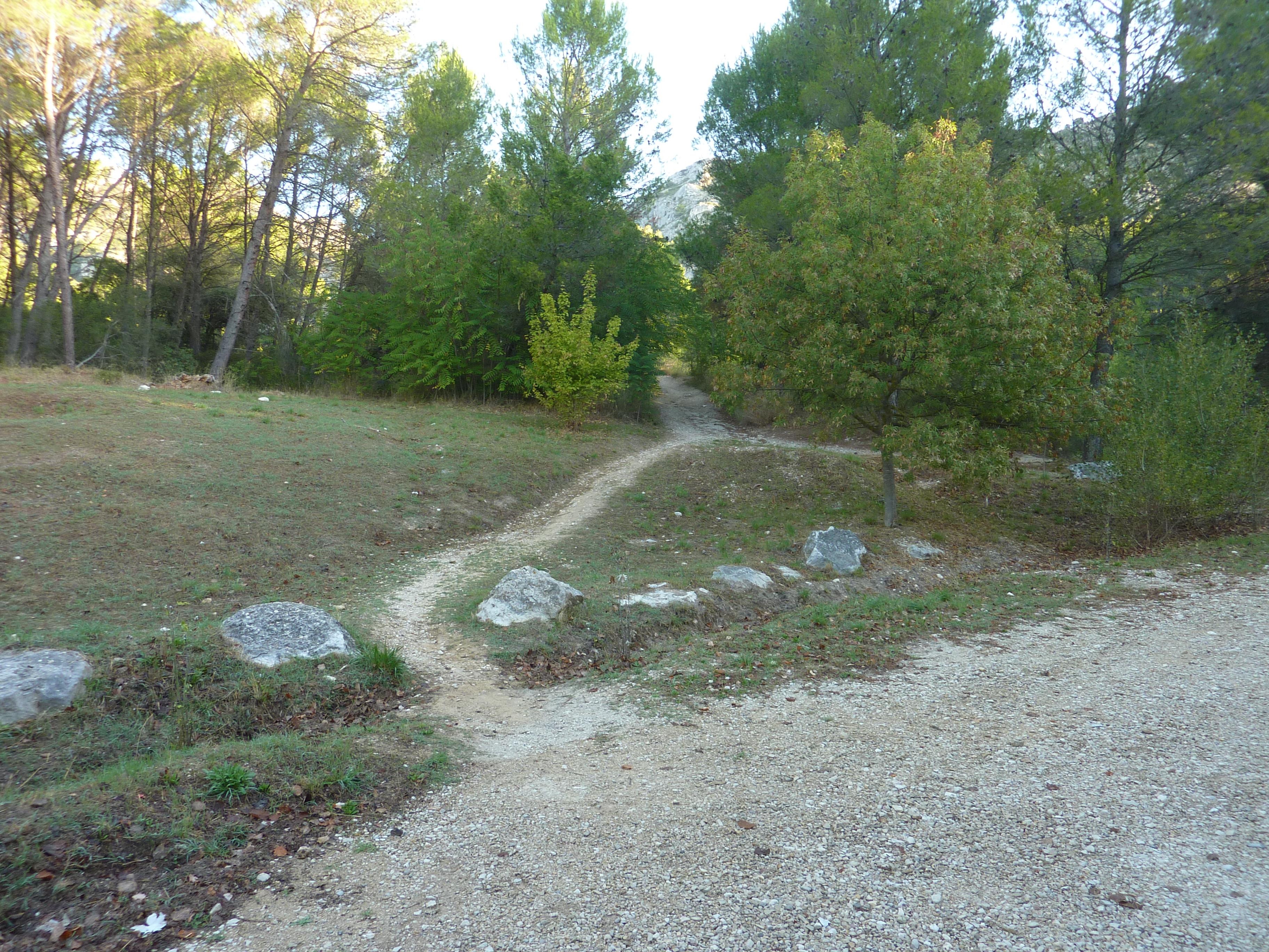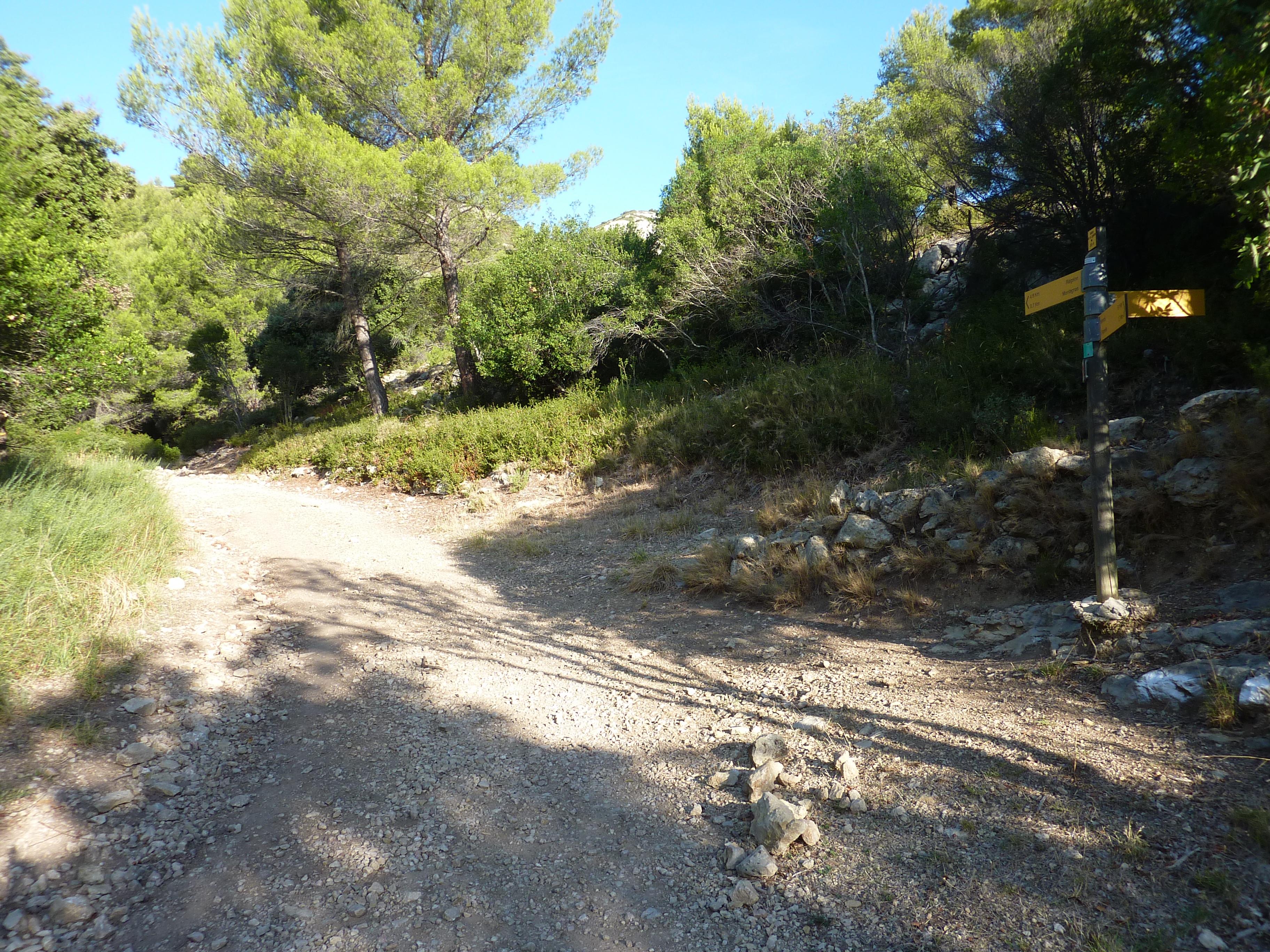 A ce croisement à l'entrée des Gorges de Régalon, suivre le chemin partant tout droit au fond des gorges direction Gorges de Régalon