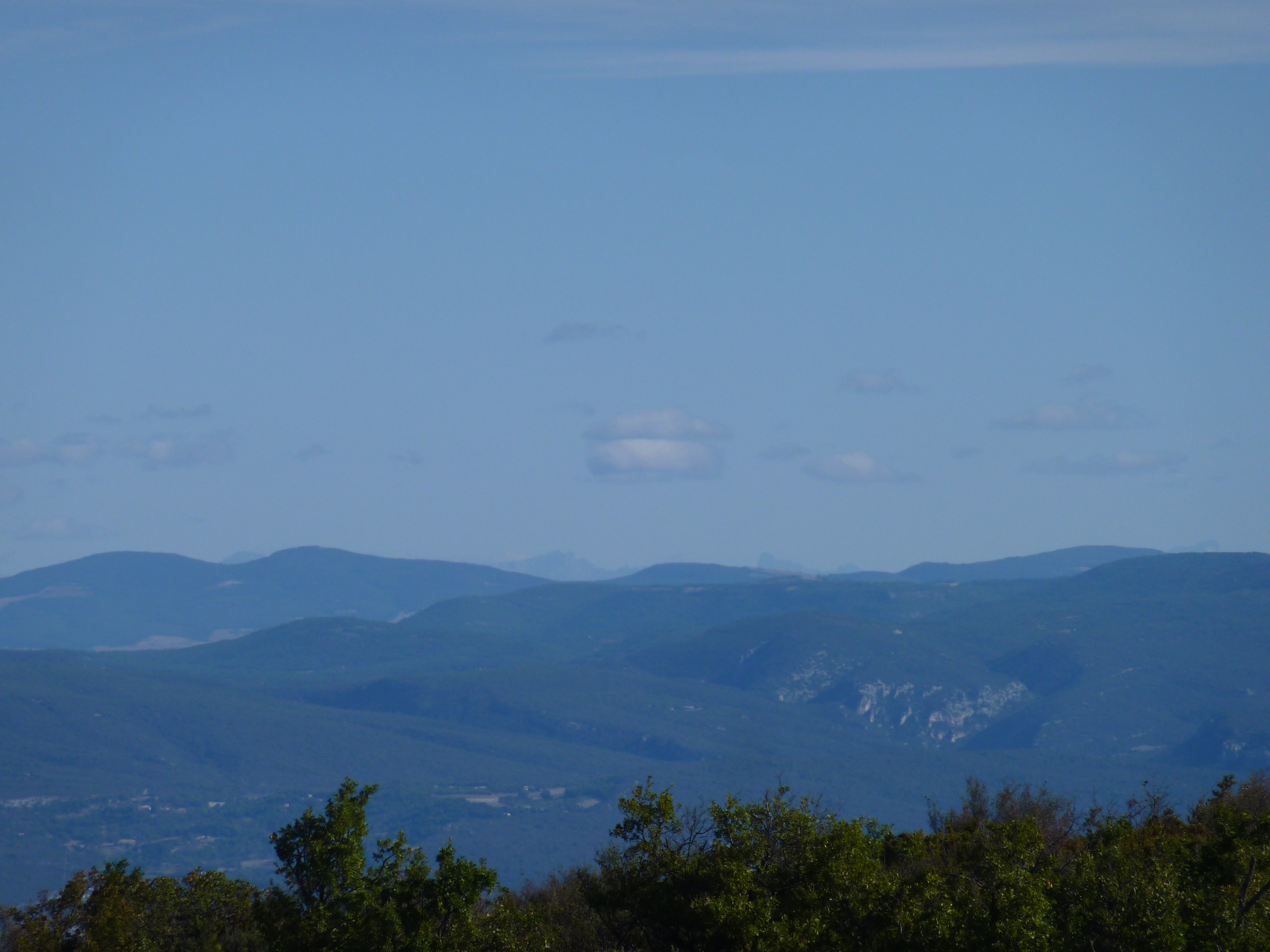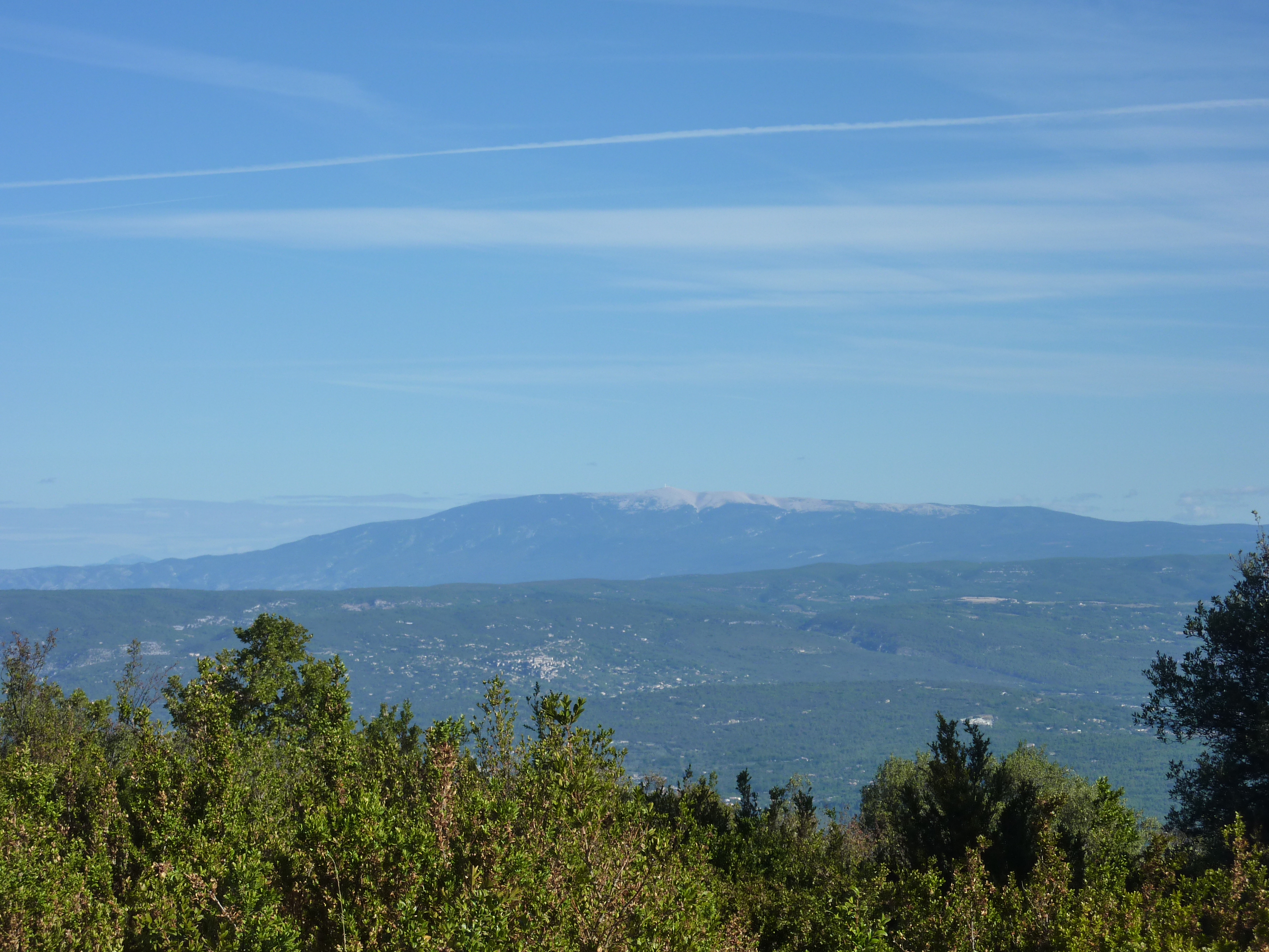 Visibilité excellente aujourd'hui avec les sommets du Plateau de Bure (Hautes-Alpes) distants de 108 kilomètres en arrière-plan derrière les Monts de Vaucluse
