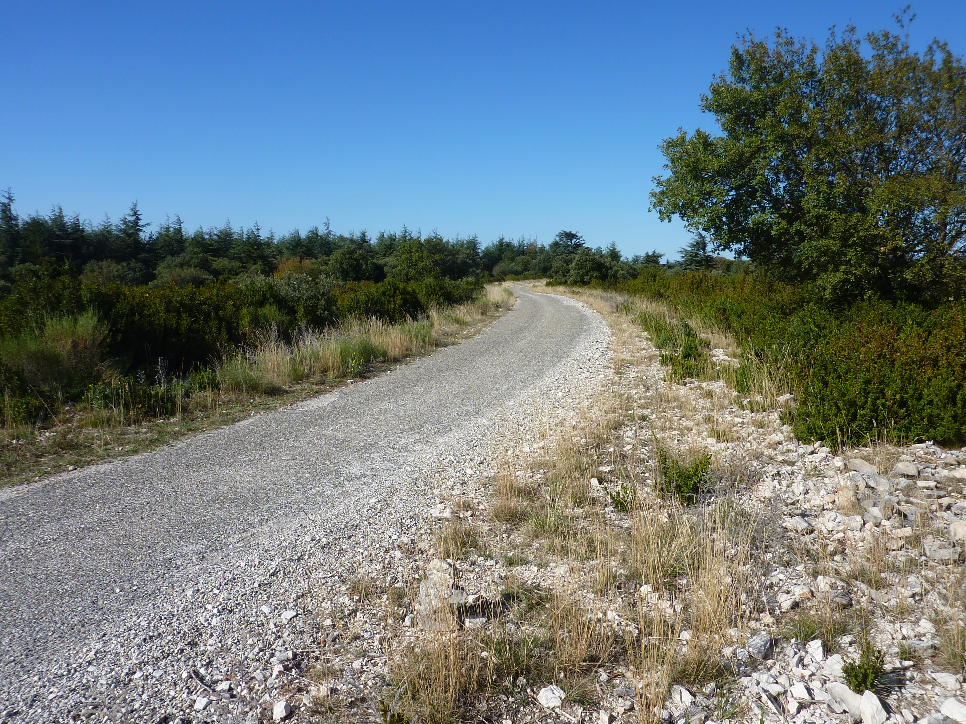 Redescendre du sommet par le même chemin que celui de l'aller puis continuer sur le GR direction Oppède-le-Vieux, balisé en rouge et blanc