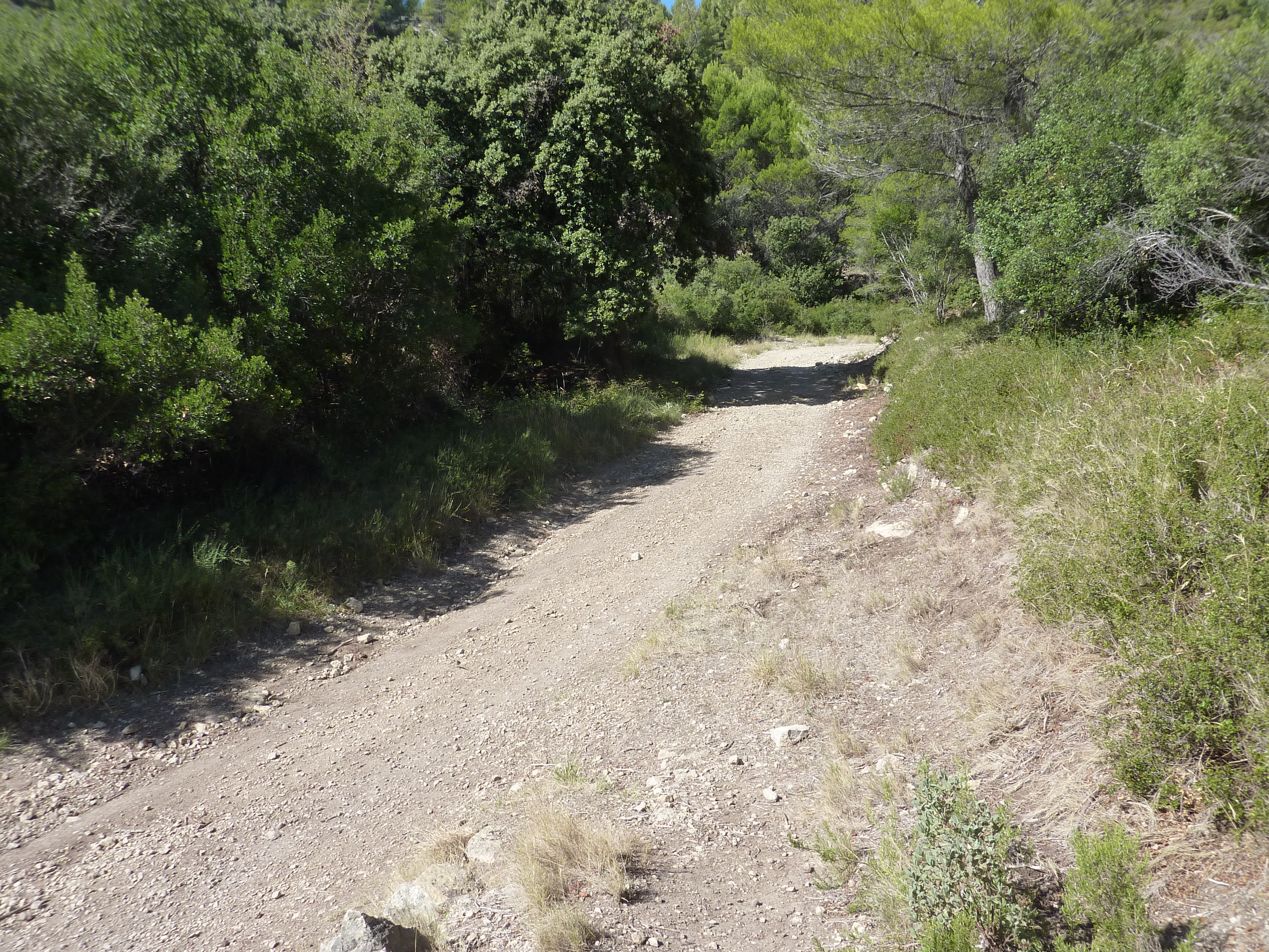A ce croisement (500 mètres après le parking), suivre le chemin partant tout droit direction Gorges de Régalon