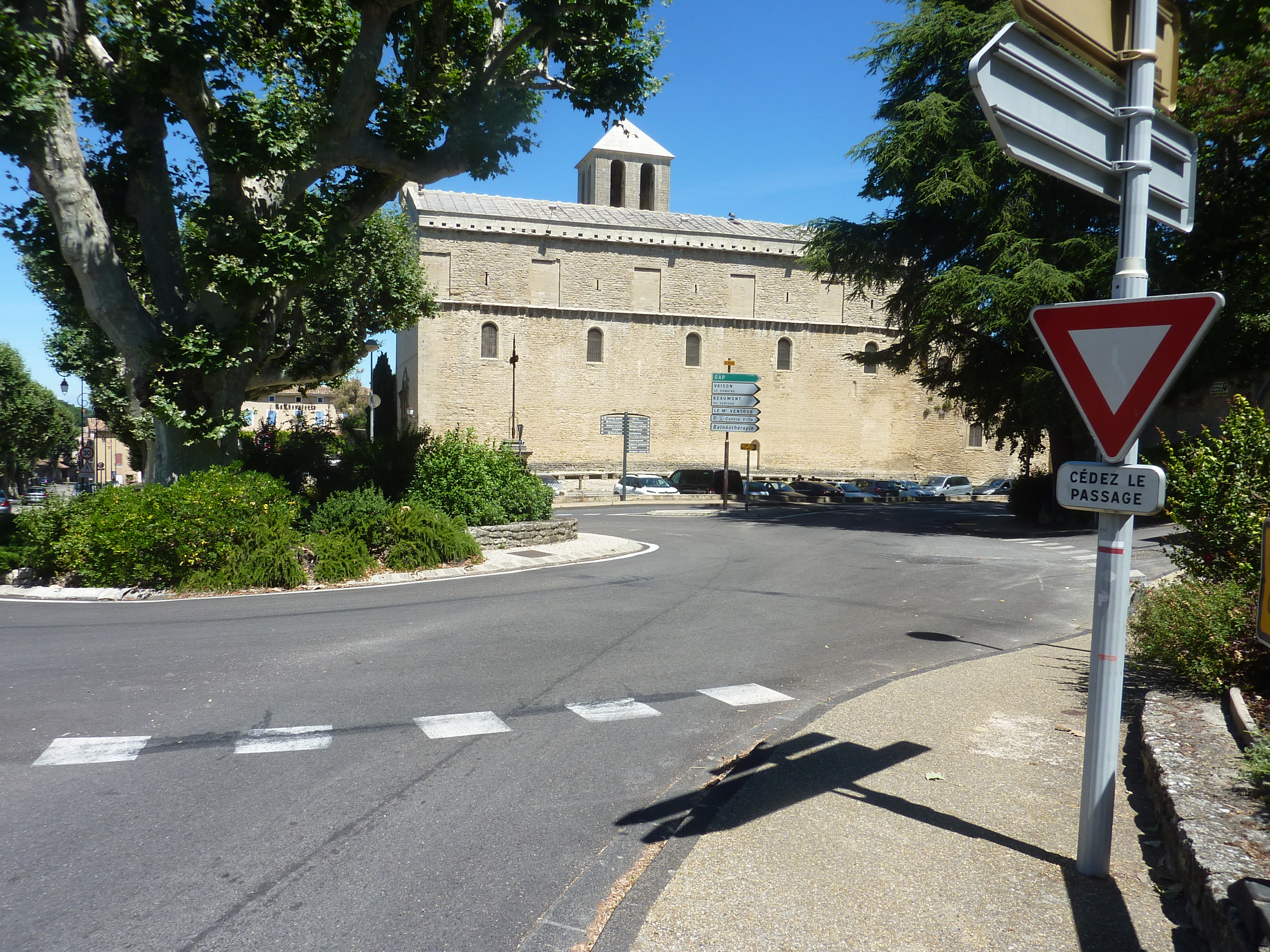 Au niveau de ce rond-point (300 mètres après le départ) (318 m), suivre la D938 partant sur la droite direction Vaison-la-Romaine