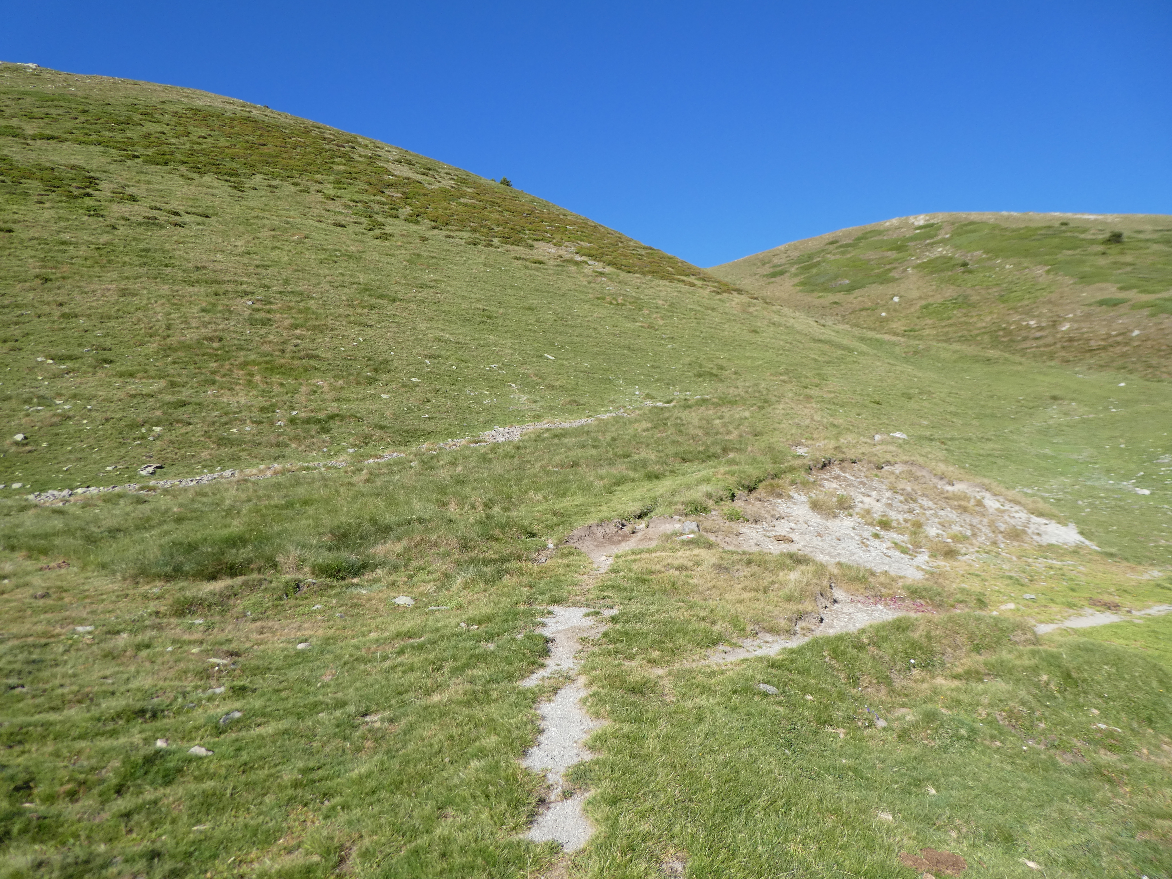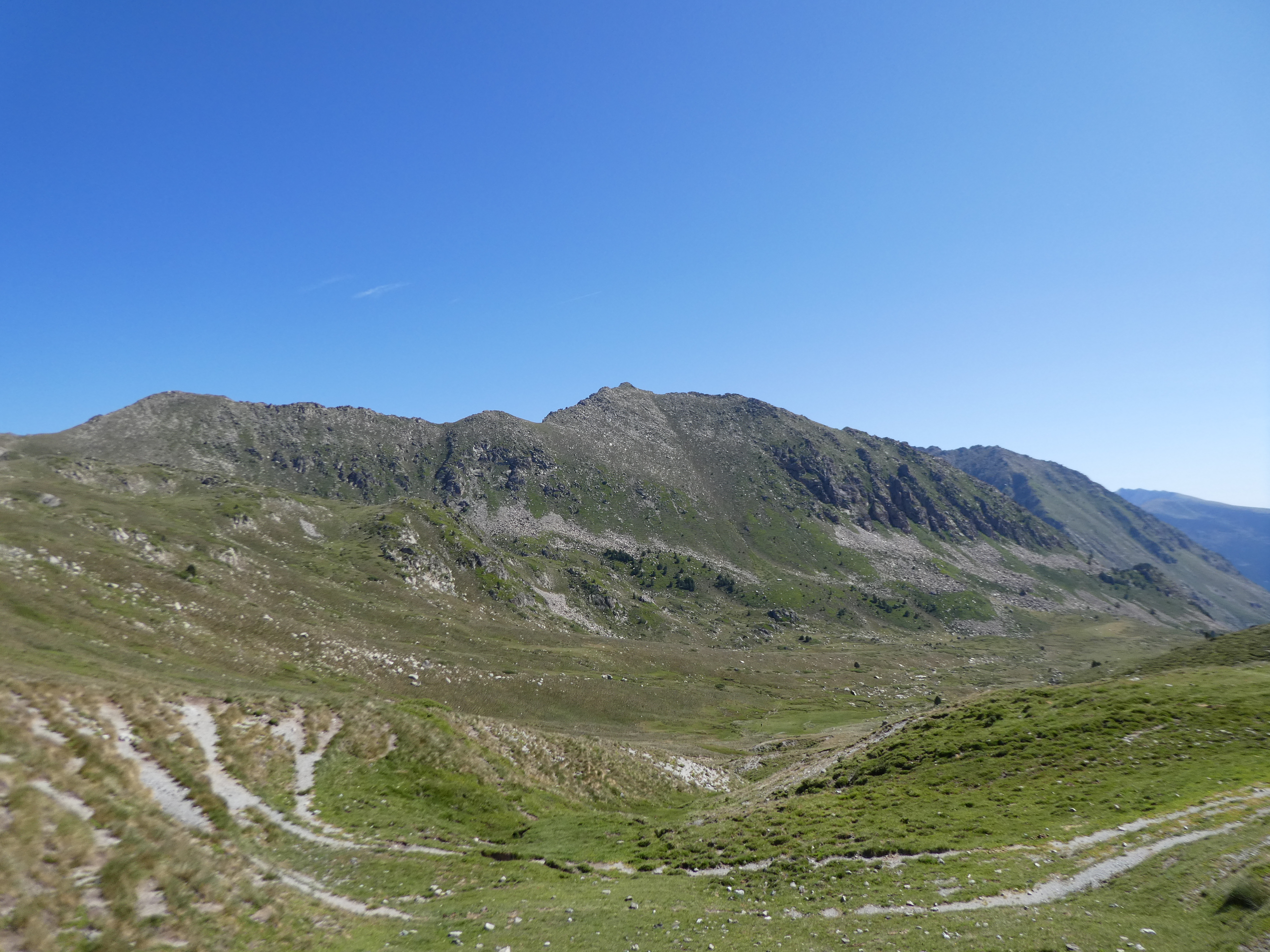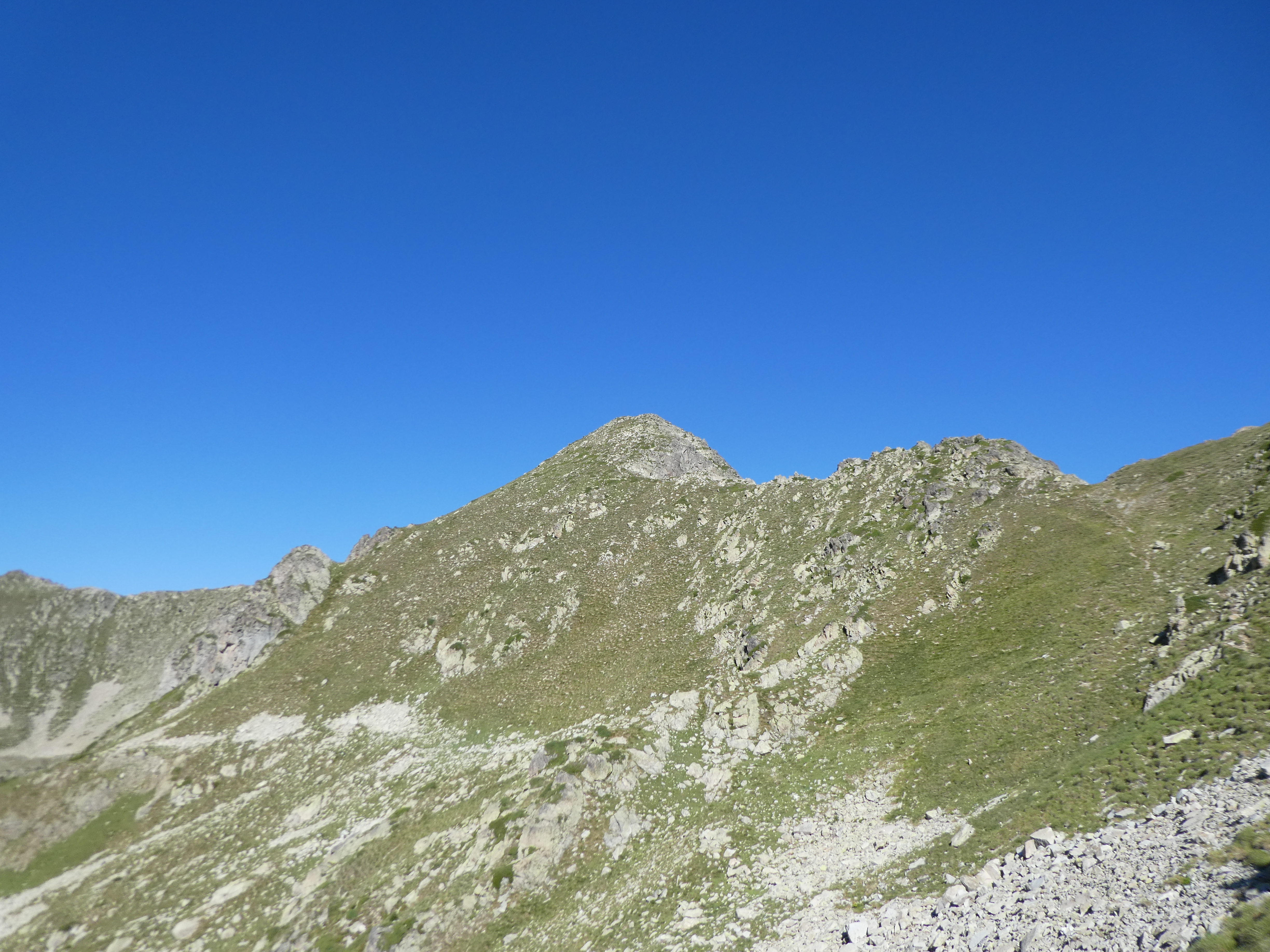 Dès que le pied du Pic d'Engaït est atteint (200 mètres après la Portella de Joan Antoni), quitter le GR7 partant tout droit et monter à vue sur la droite vers le sommet direction Pic d'Engaït, aucun balisage dorénavant (prudence lors de la montée légèrement aérienne côté Valira d'Orient)