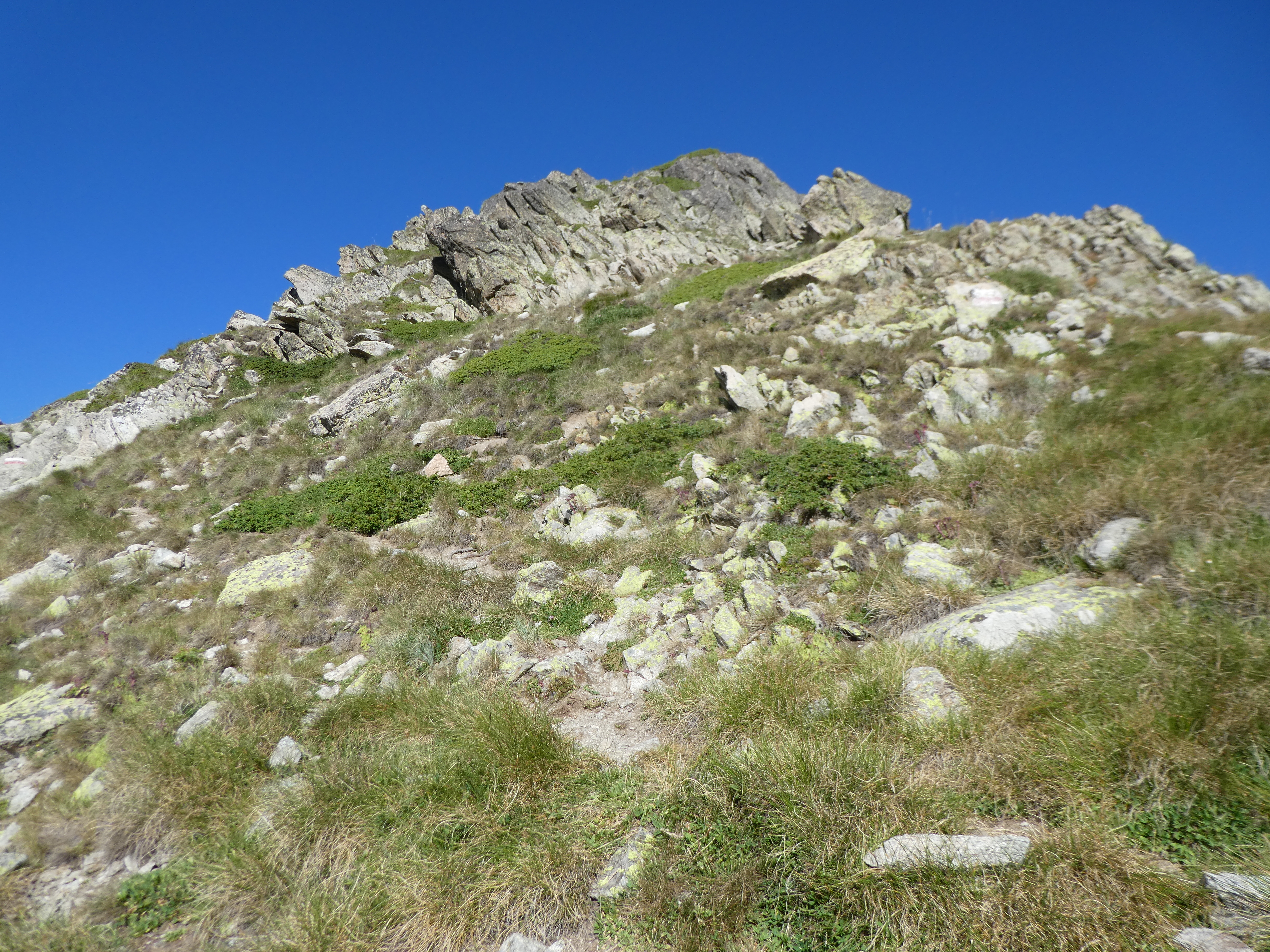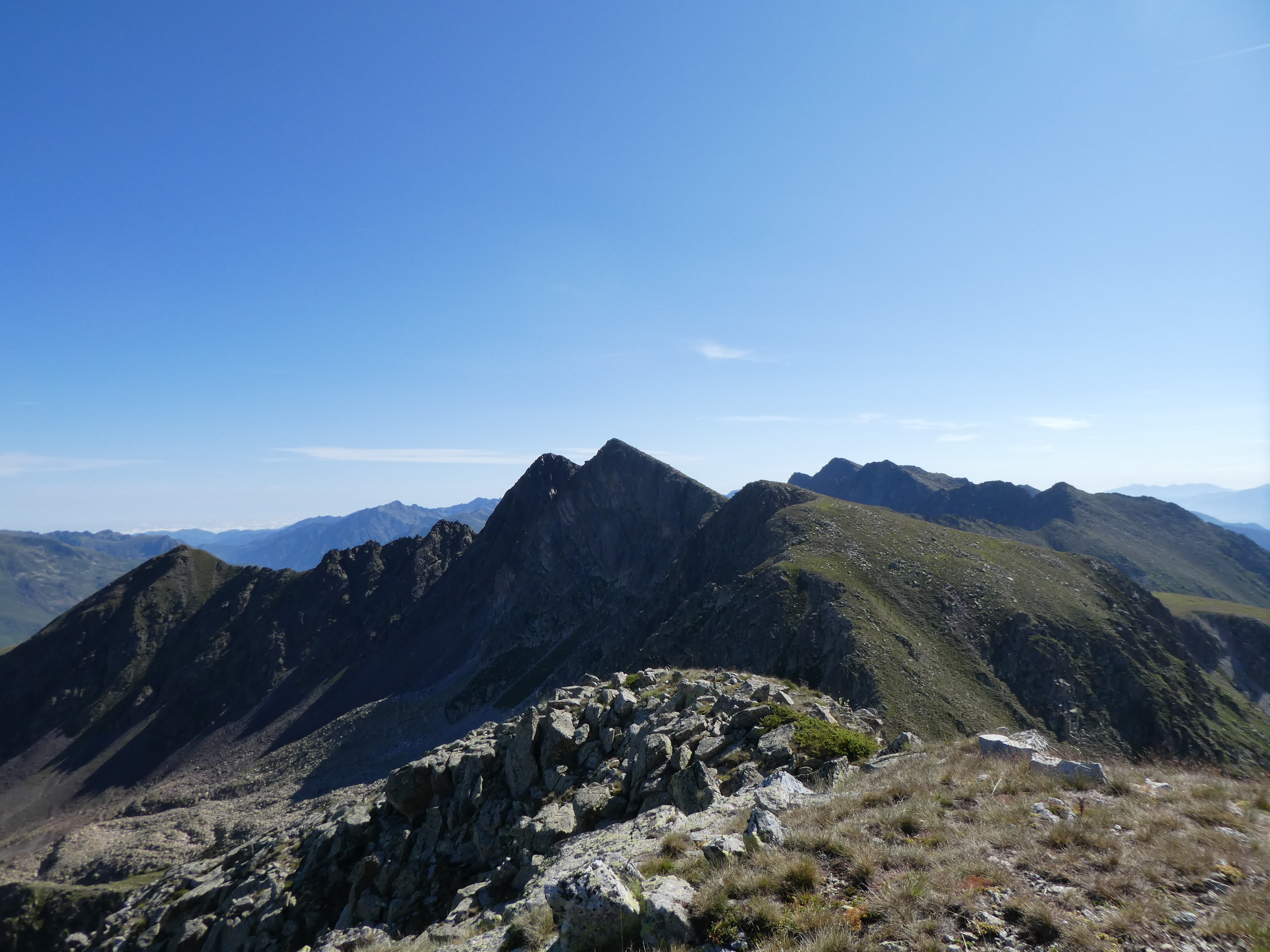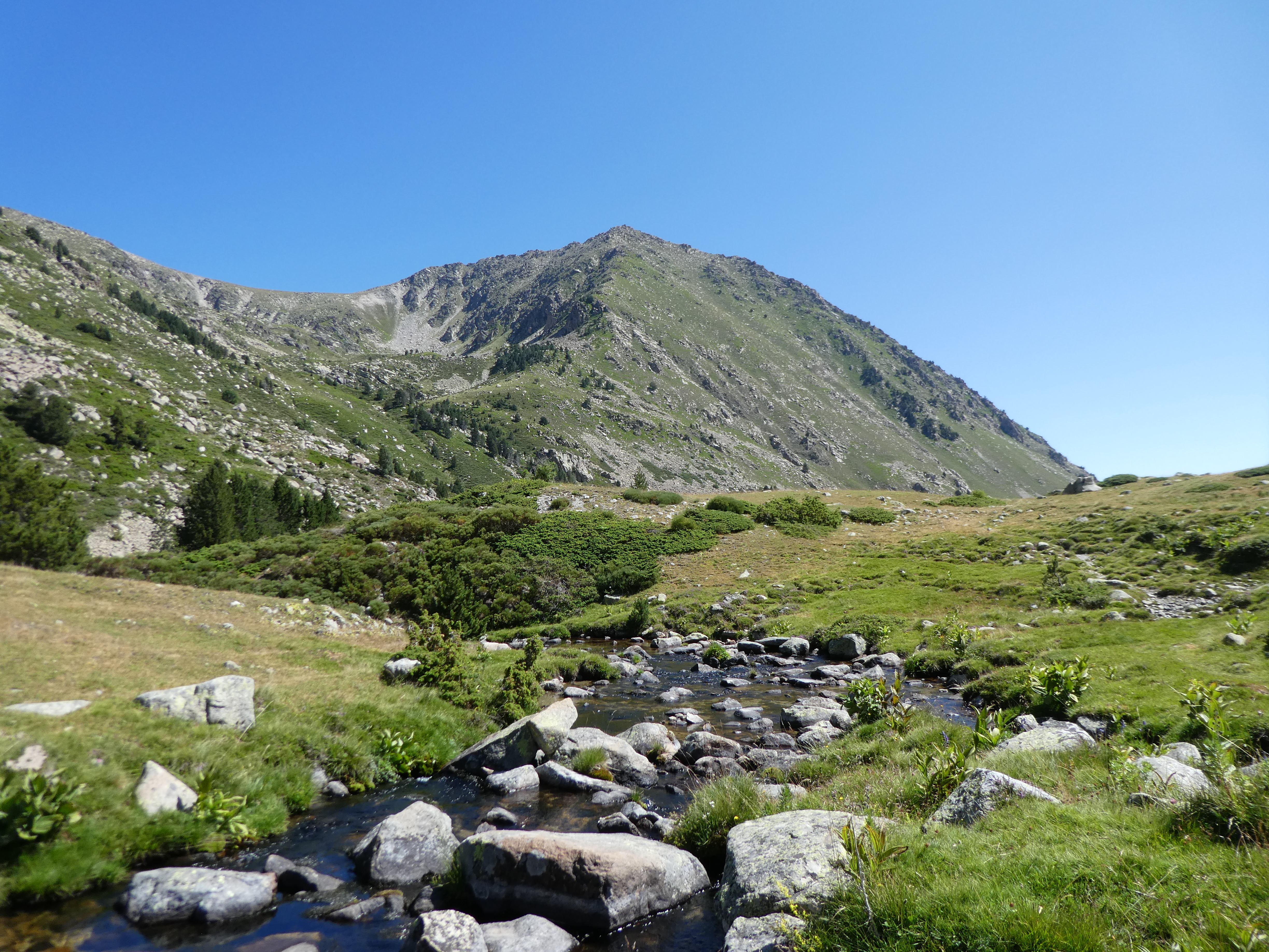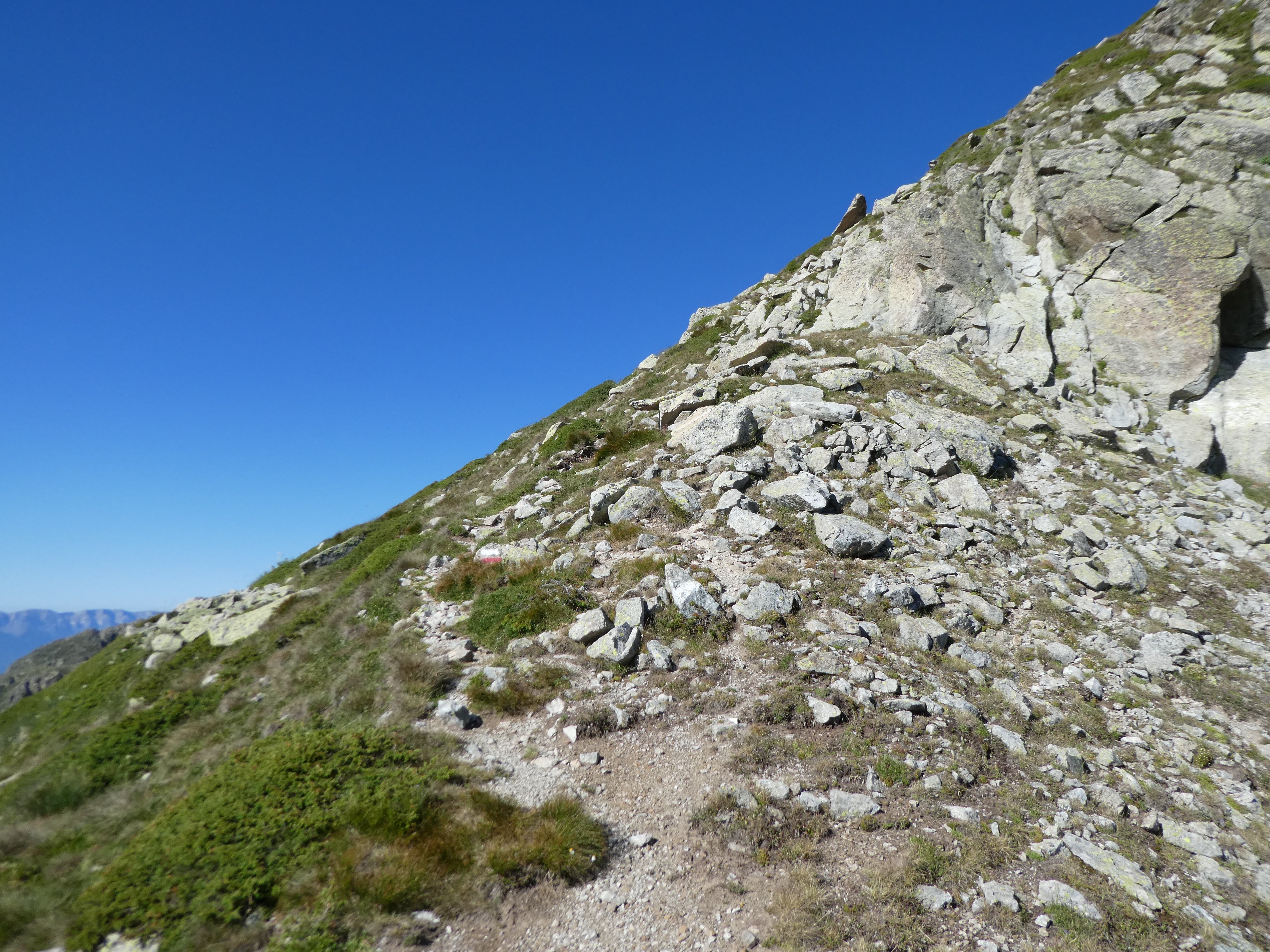 Dès que le pied du Pic d'Engaït est atteint (200 mètres après la Portella de Joan Antoni), quitter le GR7 partant tout droit et monter à vue sur la droite vers le sommet direction Pic d'Engaït, aucun balisage dorénavant (prudence lors de la montée légèrement aérienne côté Valira d'Orient)
