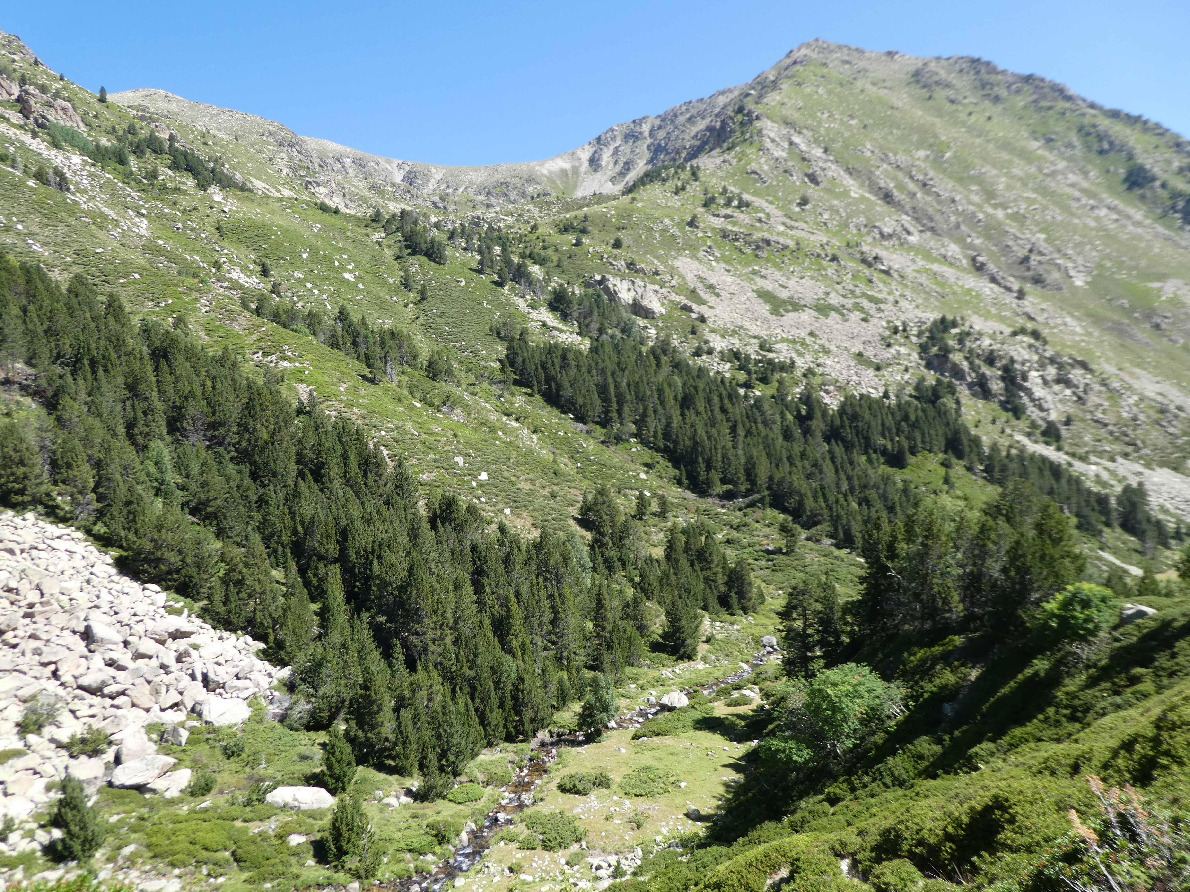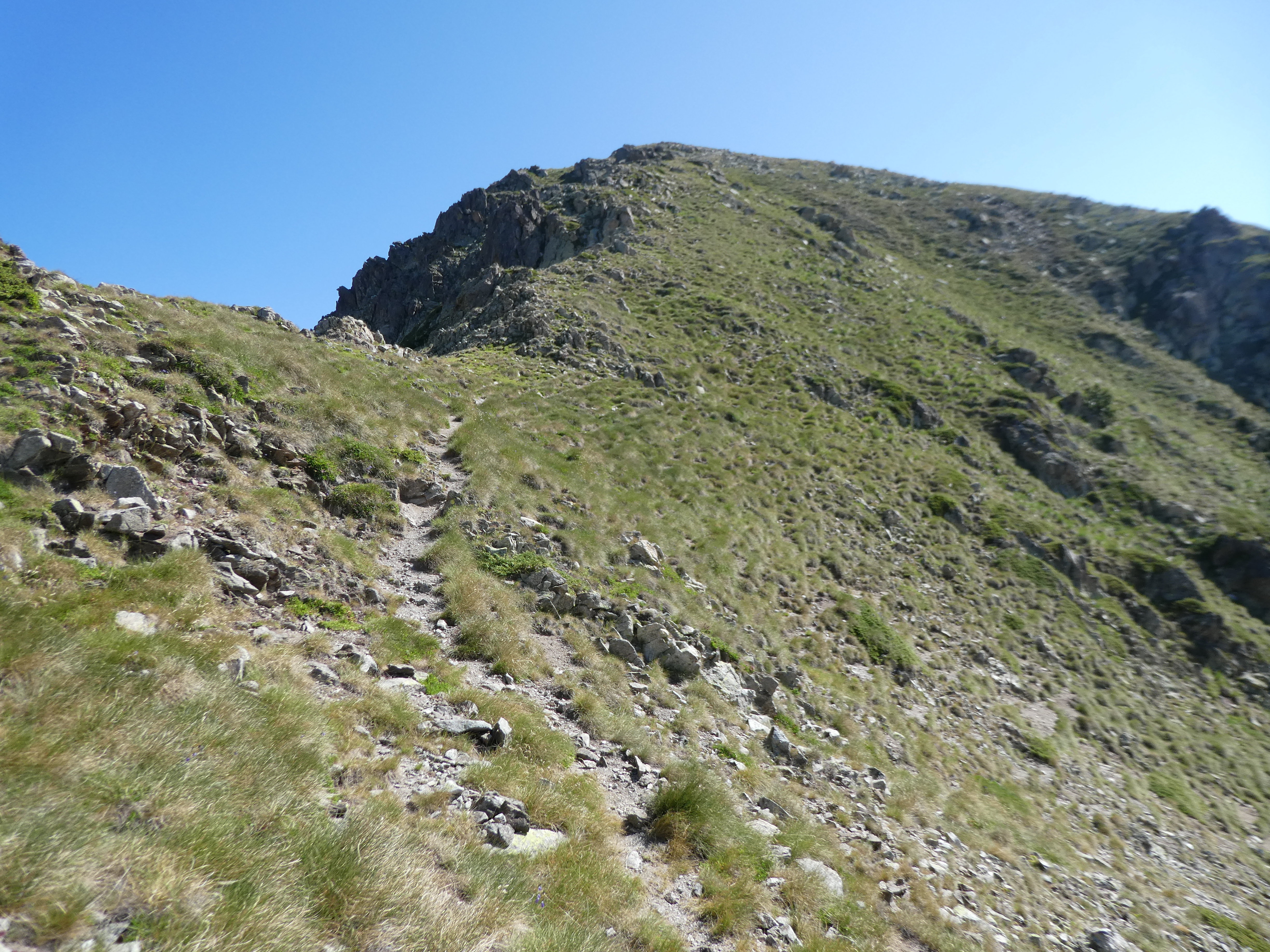 Montée raide et hors sentier vers le Pic de la Portella : viser au mieux le sommet de la crête !