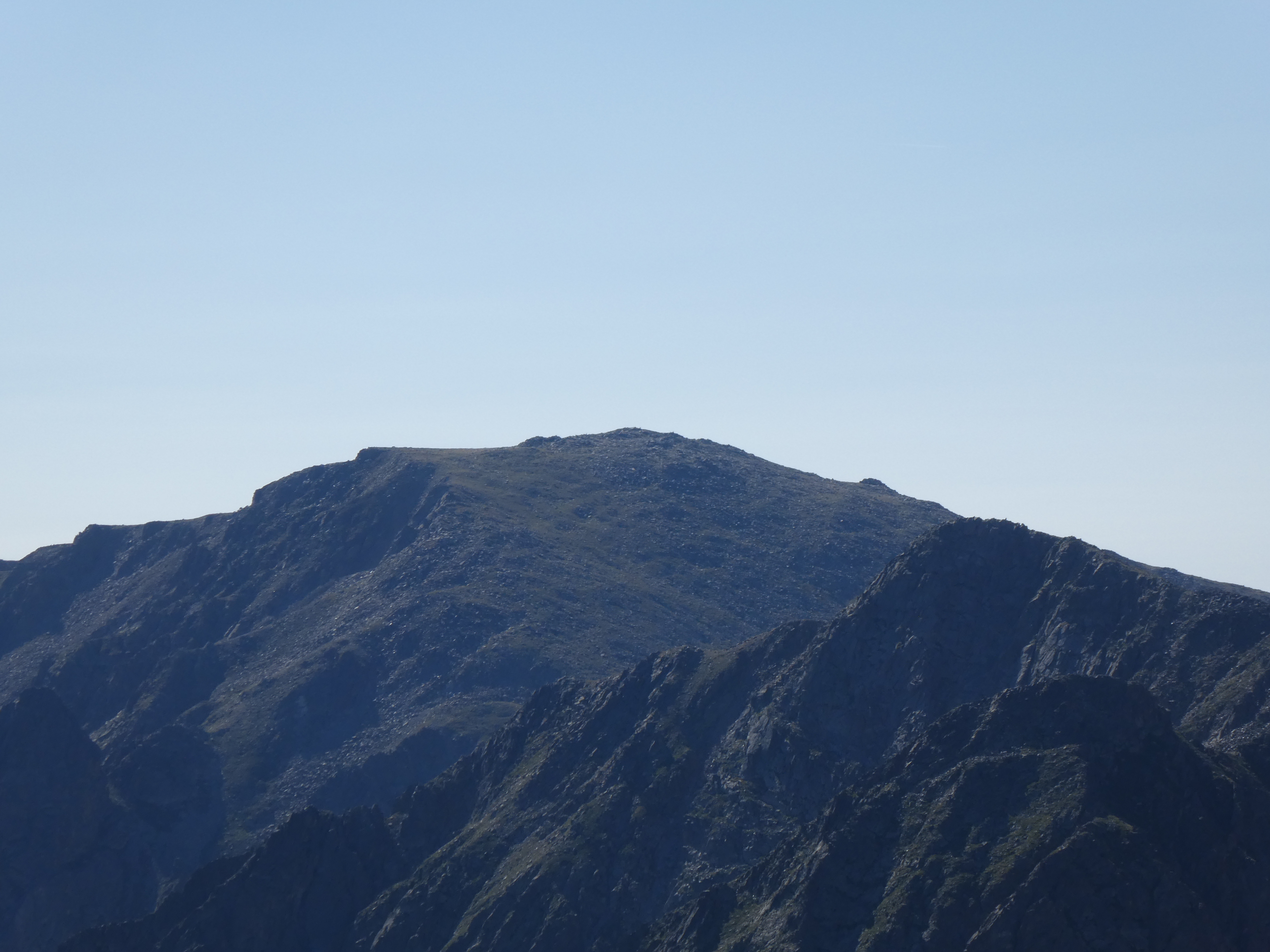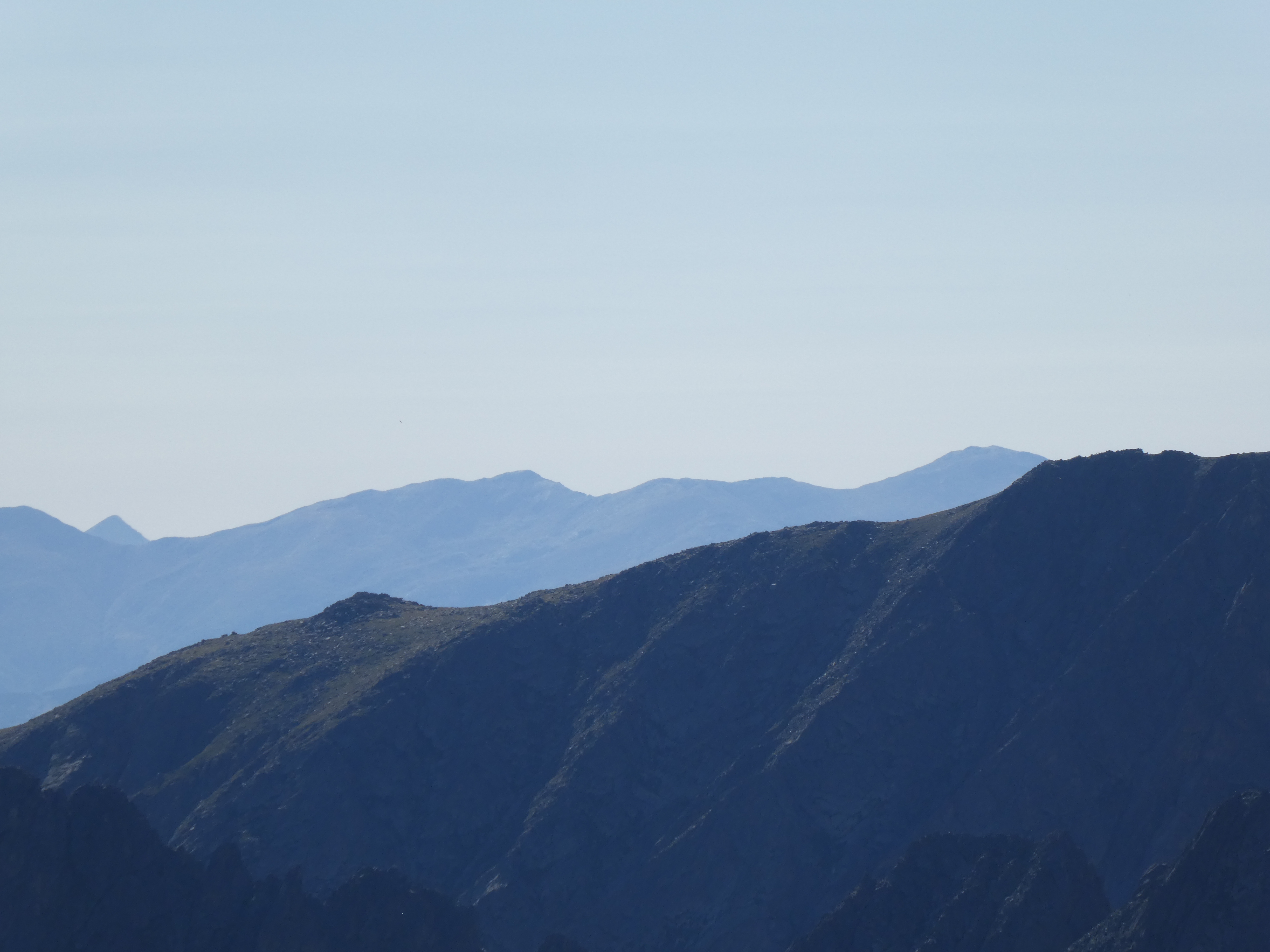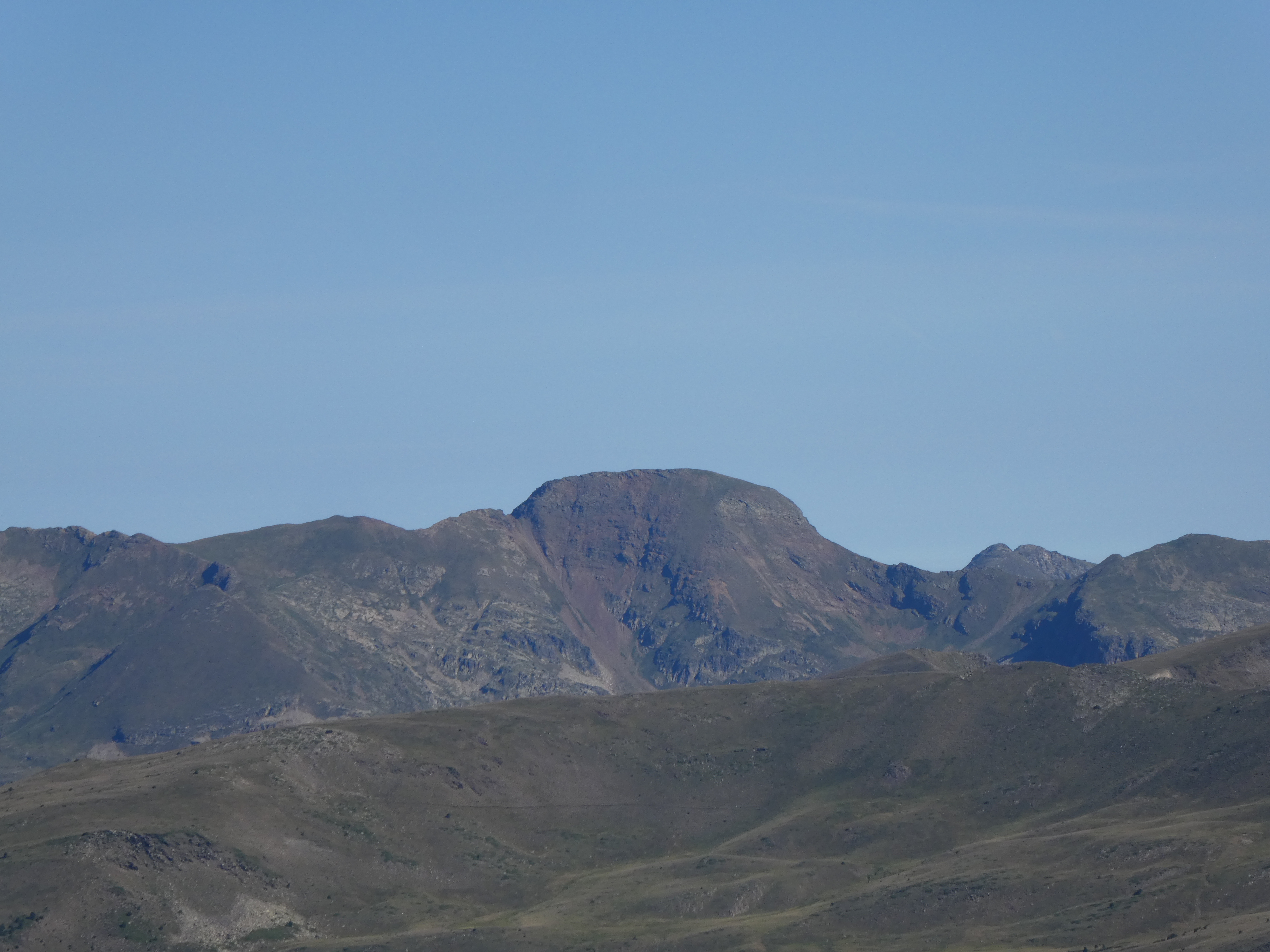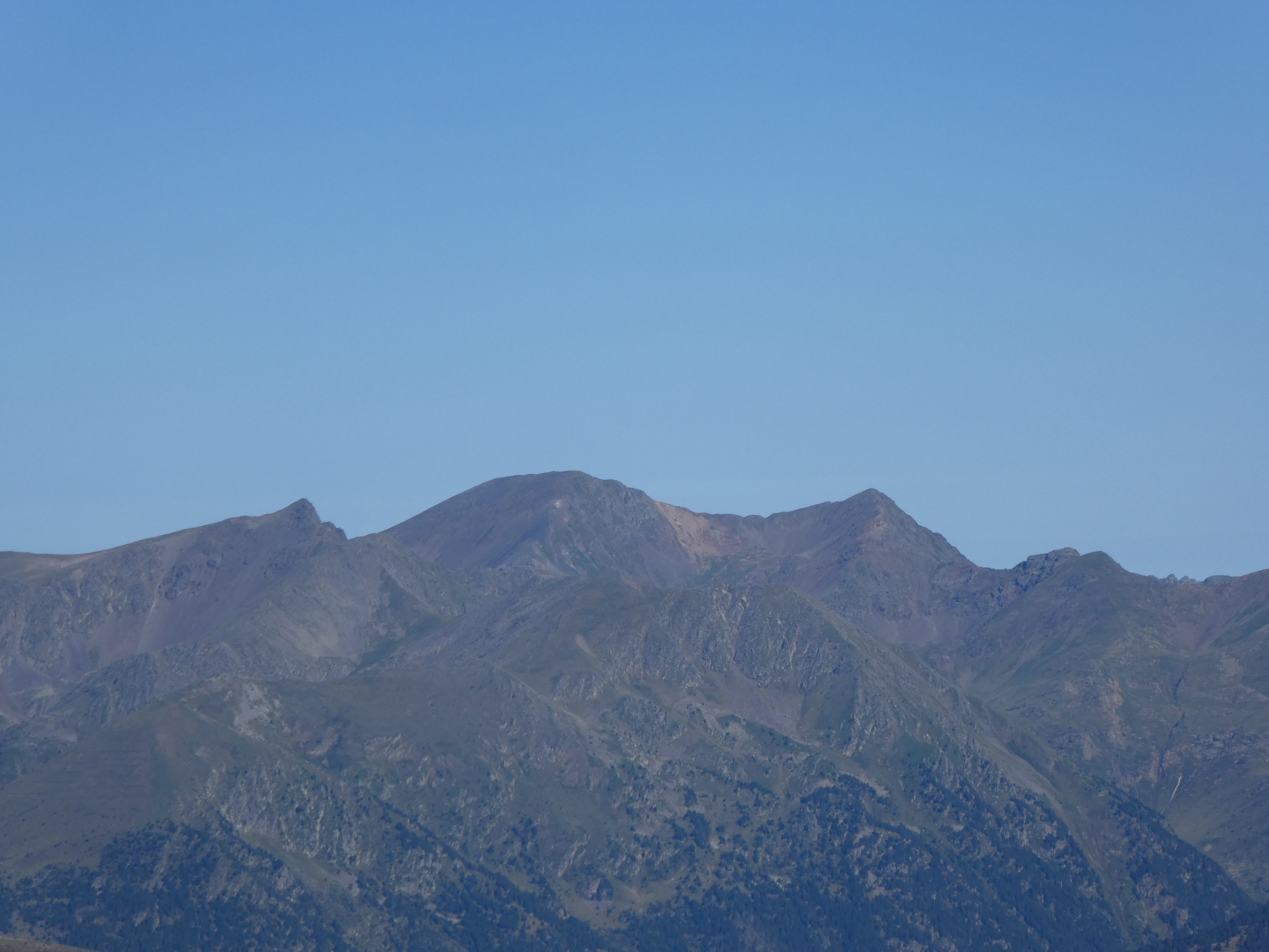 Zoom sur le Pic de Segre (2843 m) au centre-gauche, le Puigmal Petit de Segre (2810 m) au centre et le Puigmal (2910 m) à droite