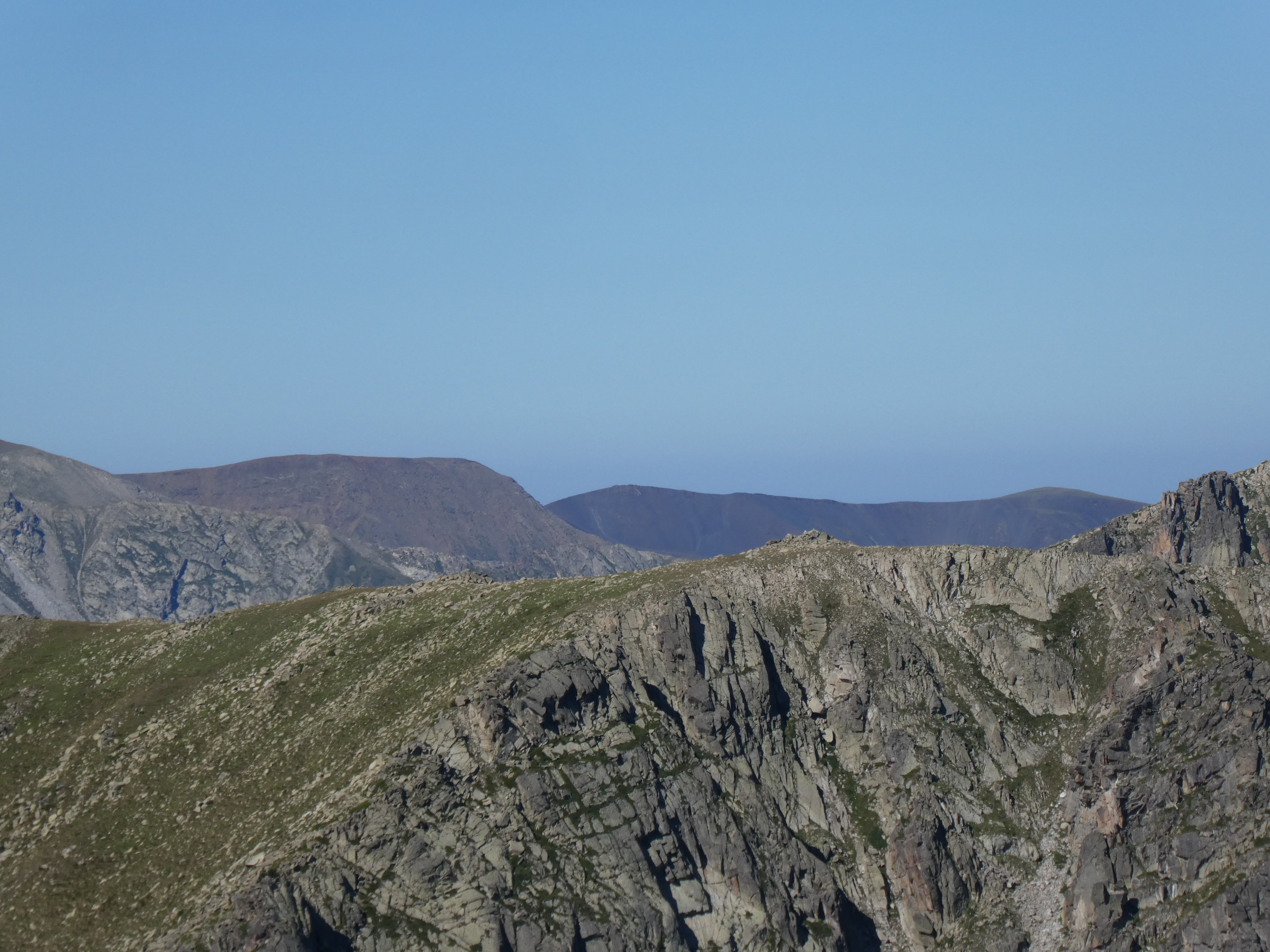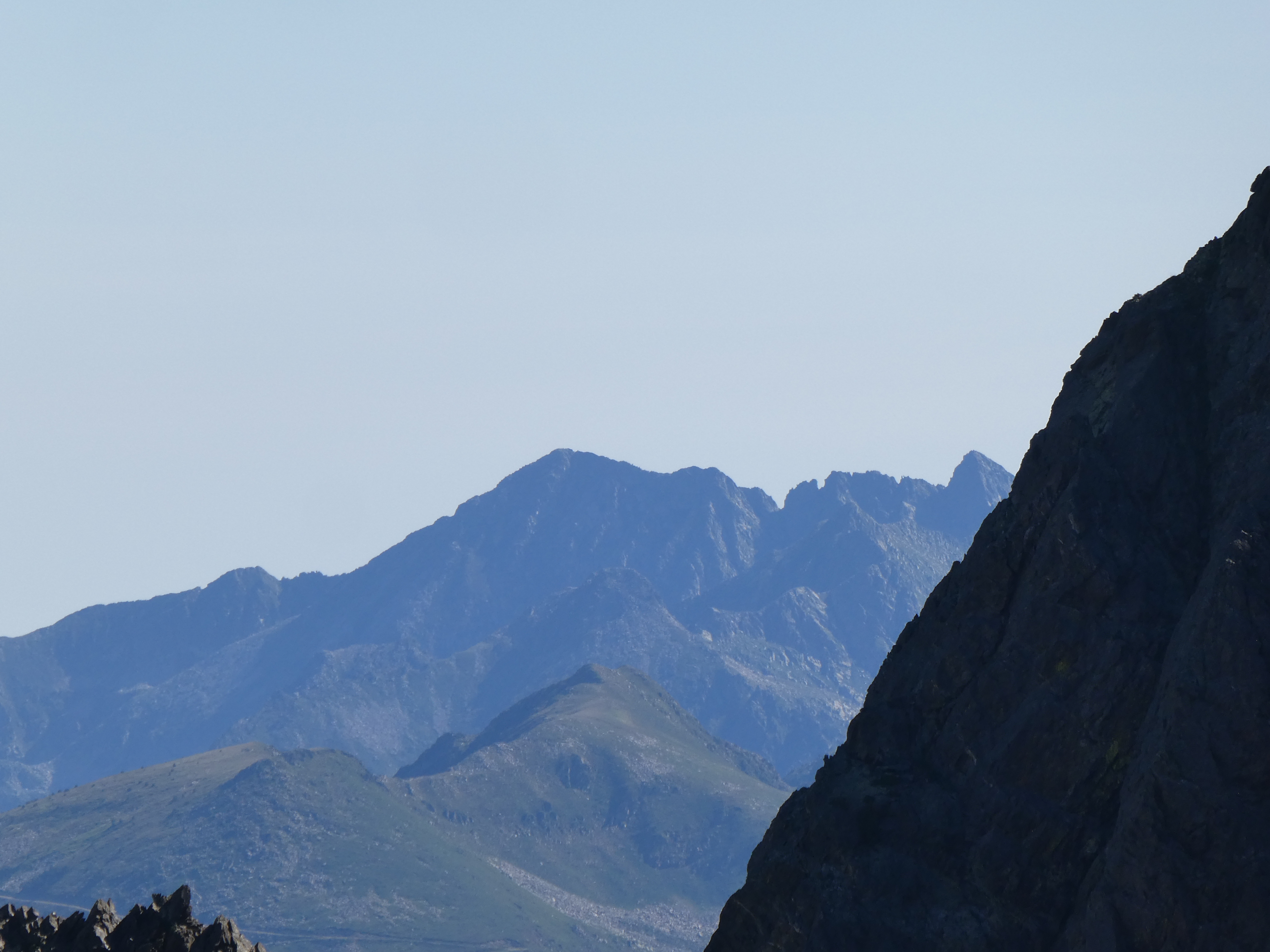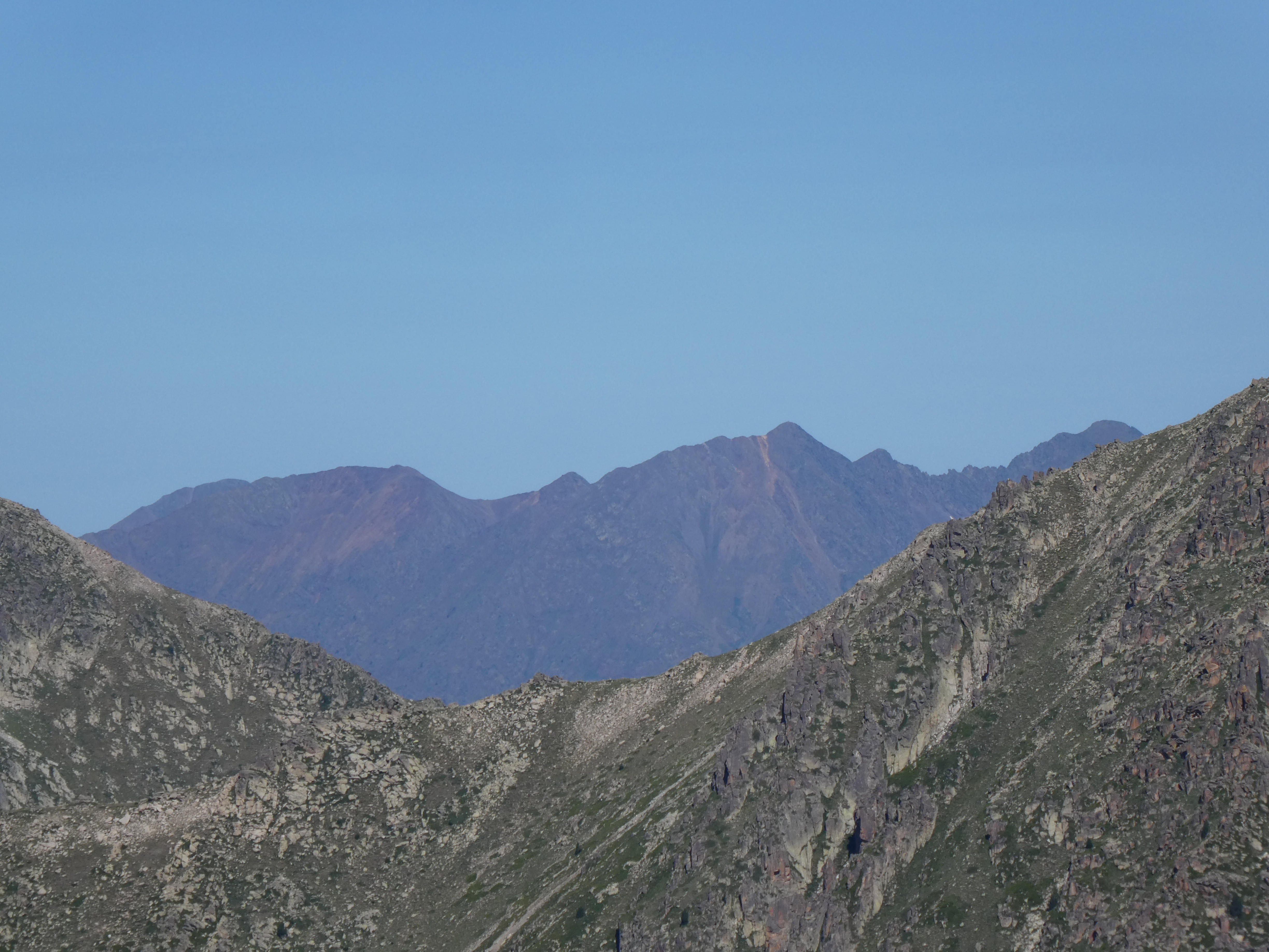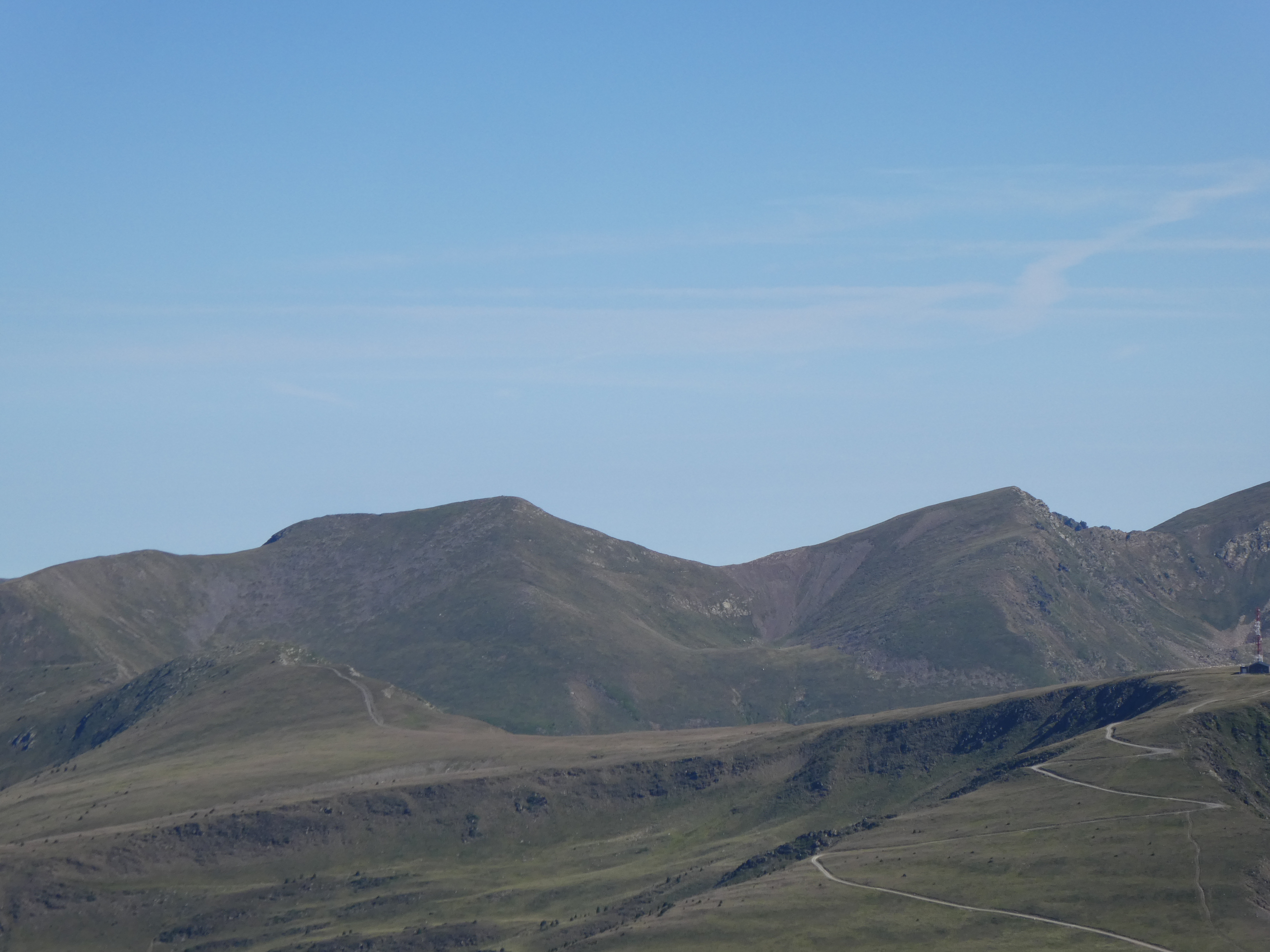 Zoom sur le Pic de Segre (2843 m) au centre-gauche, le Puigmal Petit de Segre (2810 m) au centre et le Puigmal (2910 m) à droite