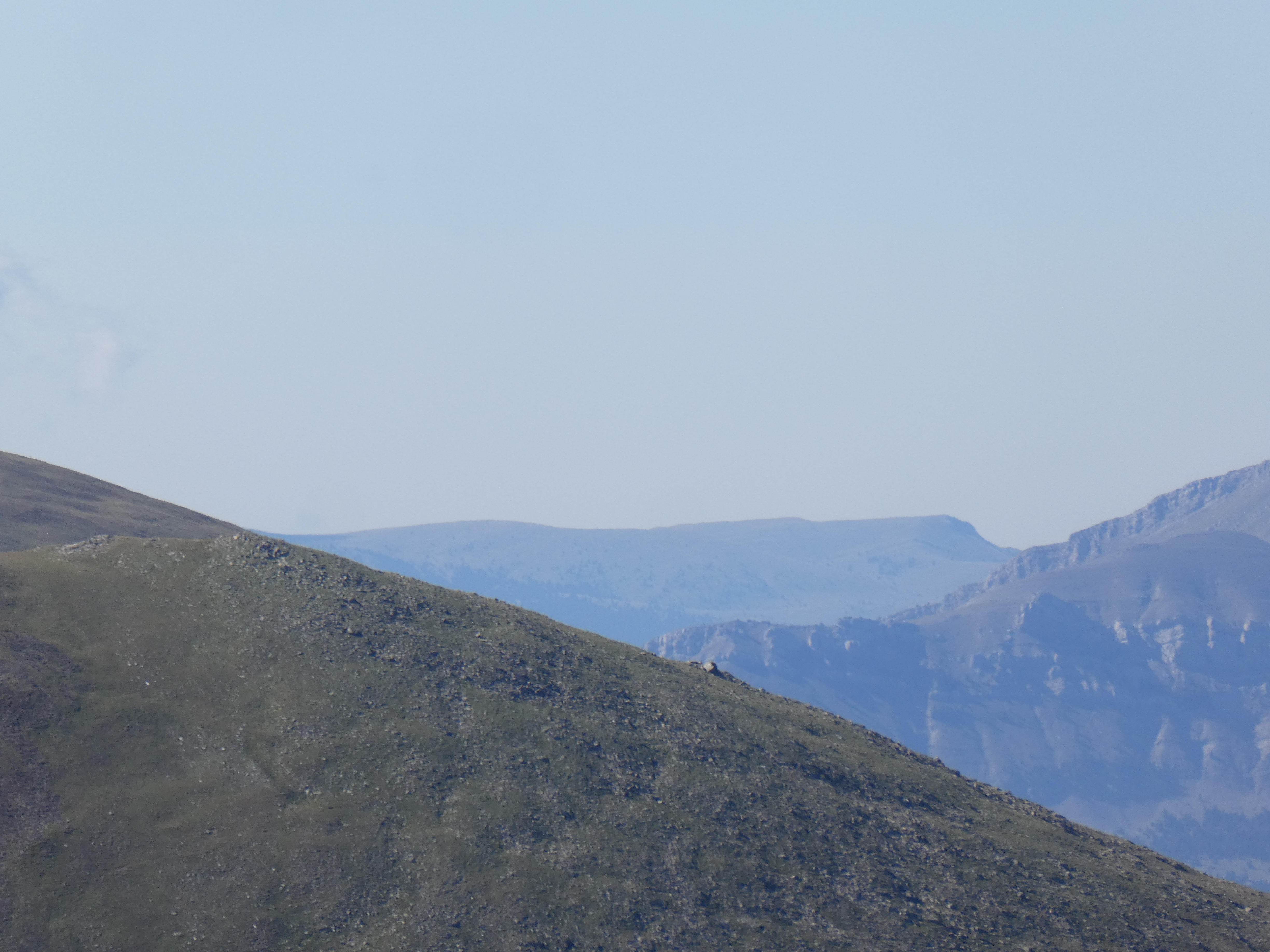 Zoom sur le Serre de Moncamp (1774 m) à gauche et le Picou Rendoulière (1861 m) à droite situés dans les Monts d'Olmes