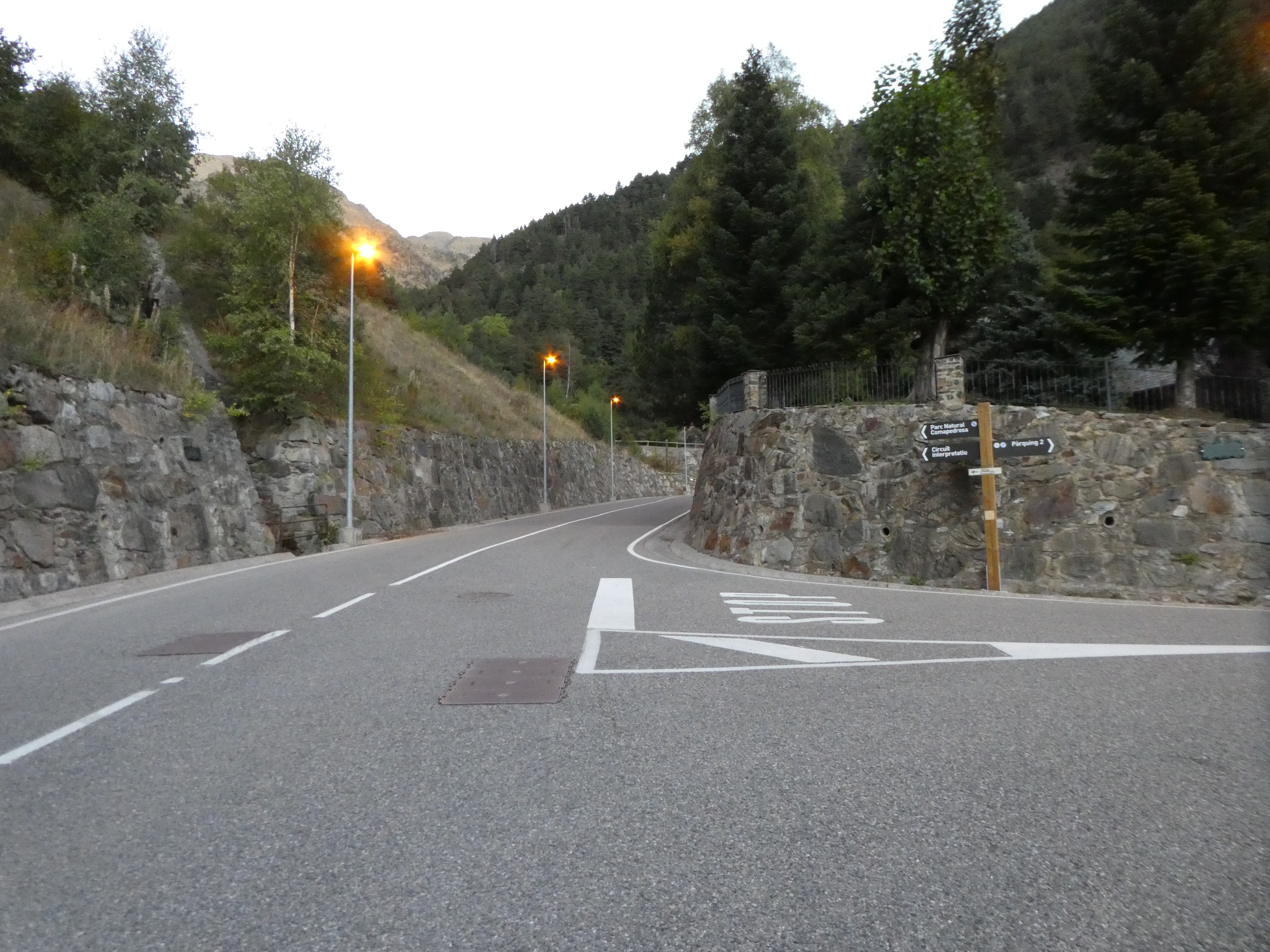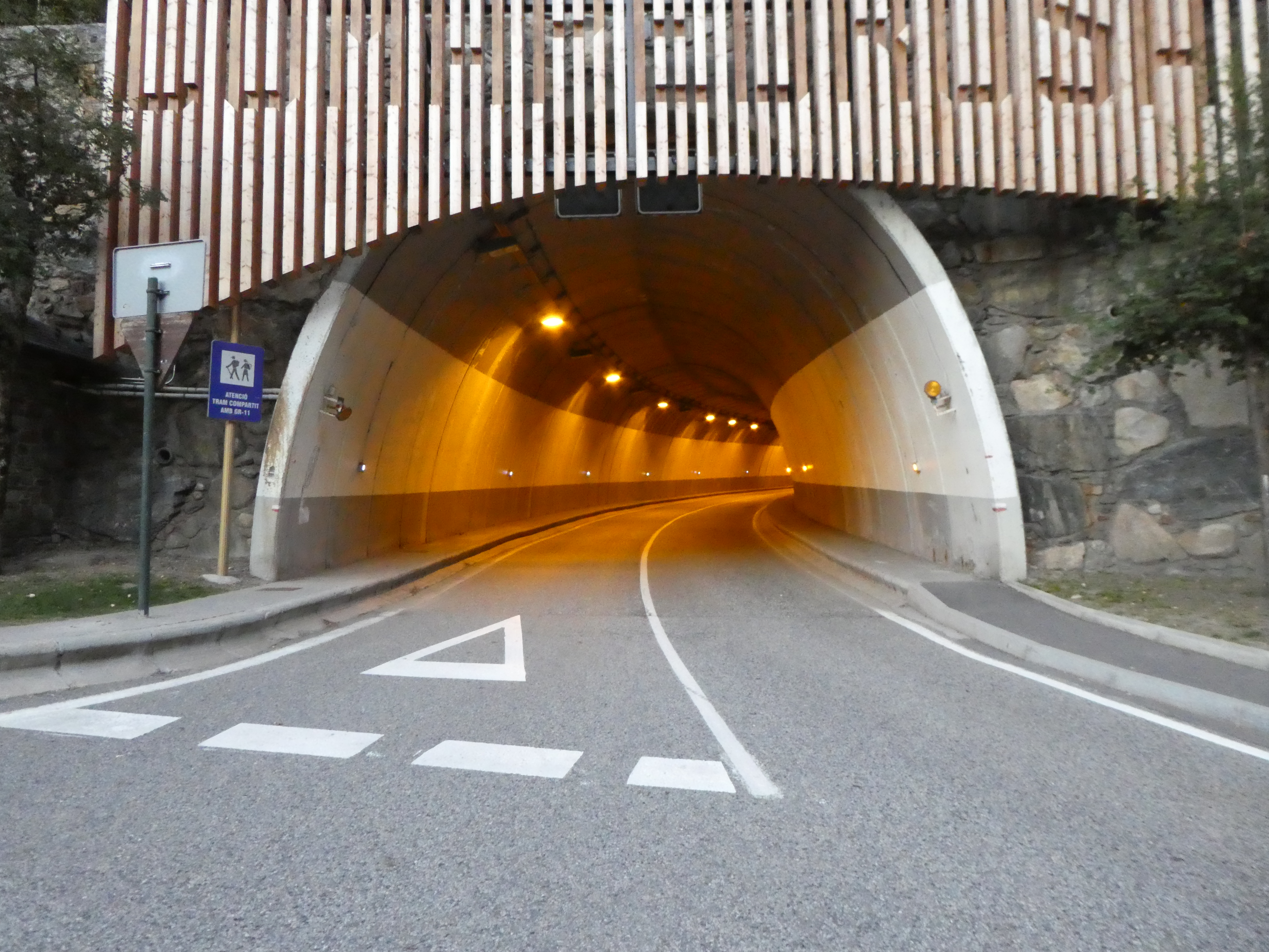 A ce croisement avec la route menant au Túnel del Torrent Ribal (150 mètres après le précédent), suivre cette dernière sur la gauche puis emprunter le tunnel sur la gauche 50 mètres plus loin direction Arinsal, balisé en rouge et blanc dorénavant (boucle bouclée)
