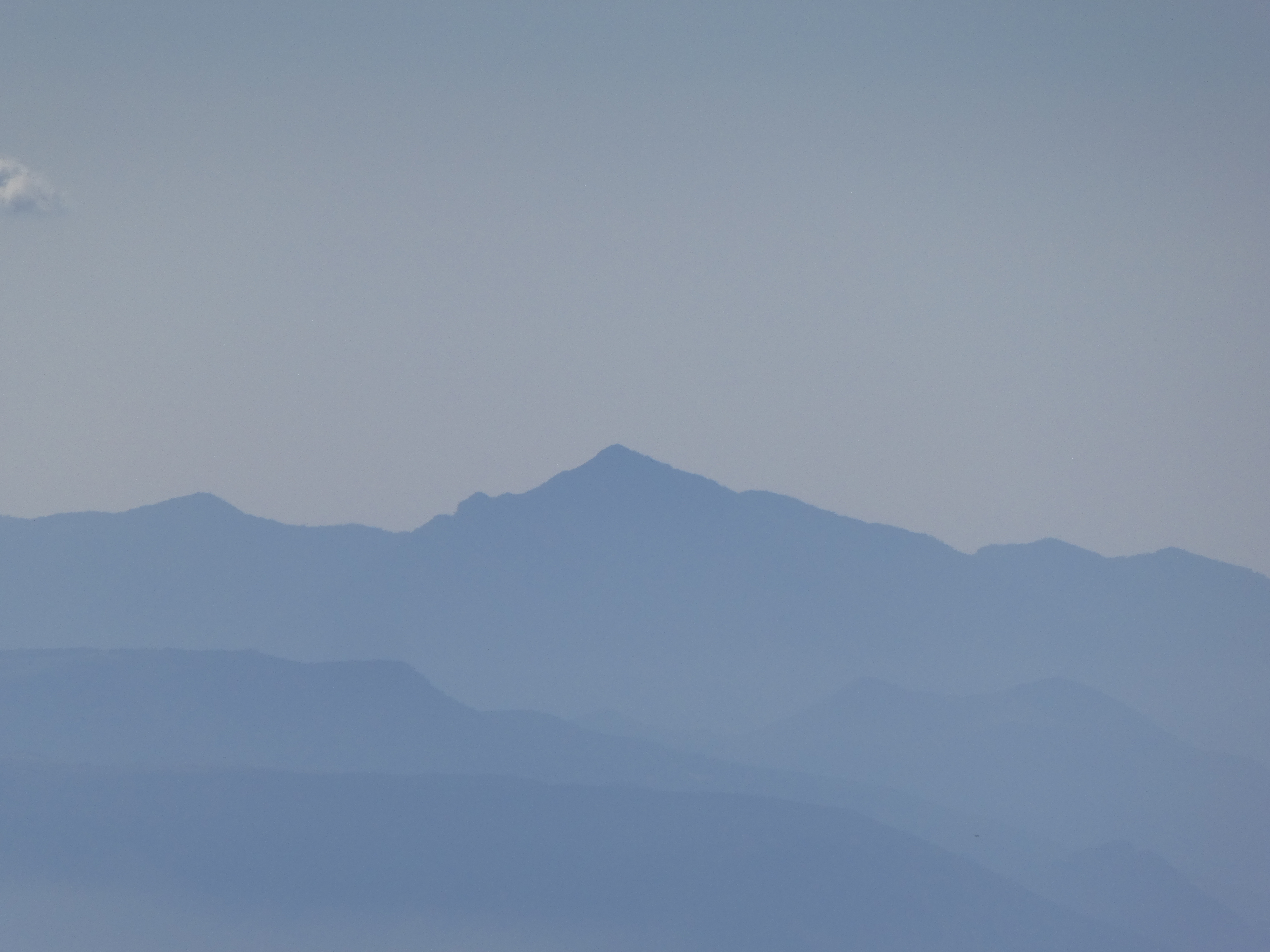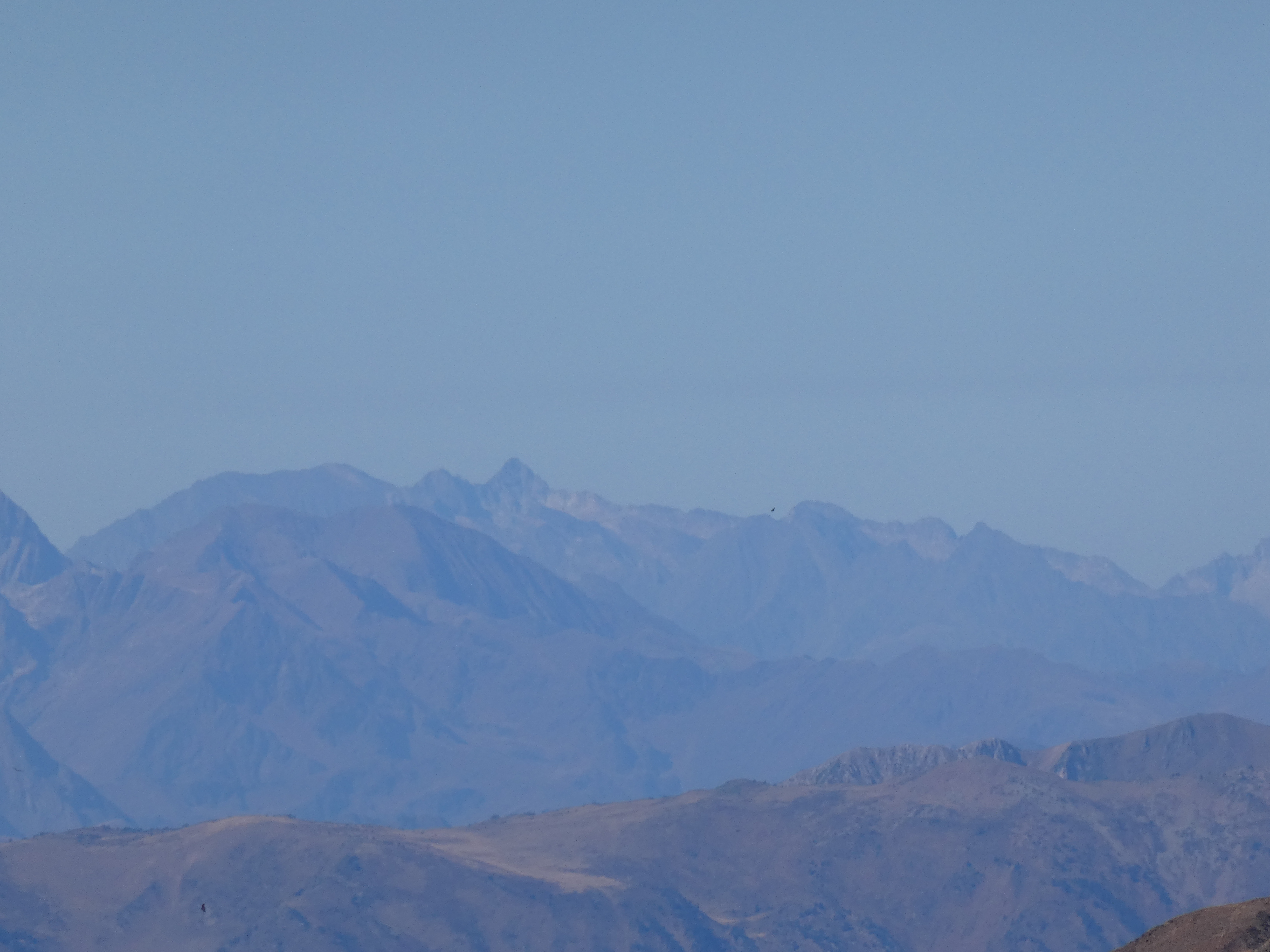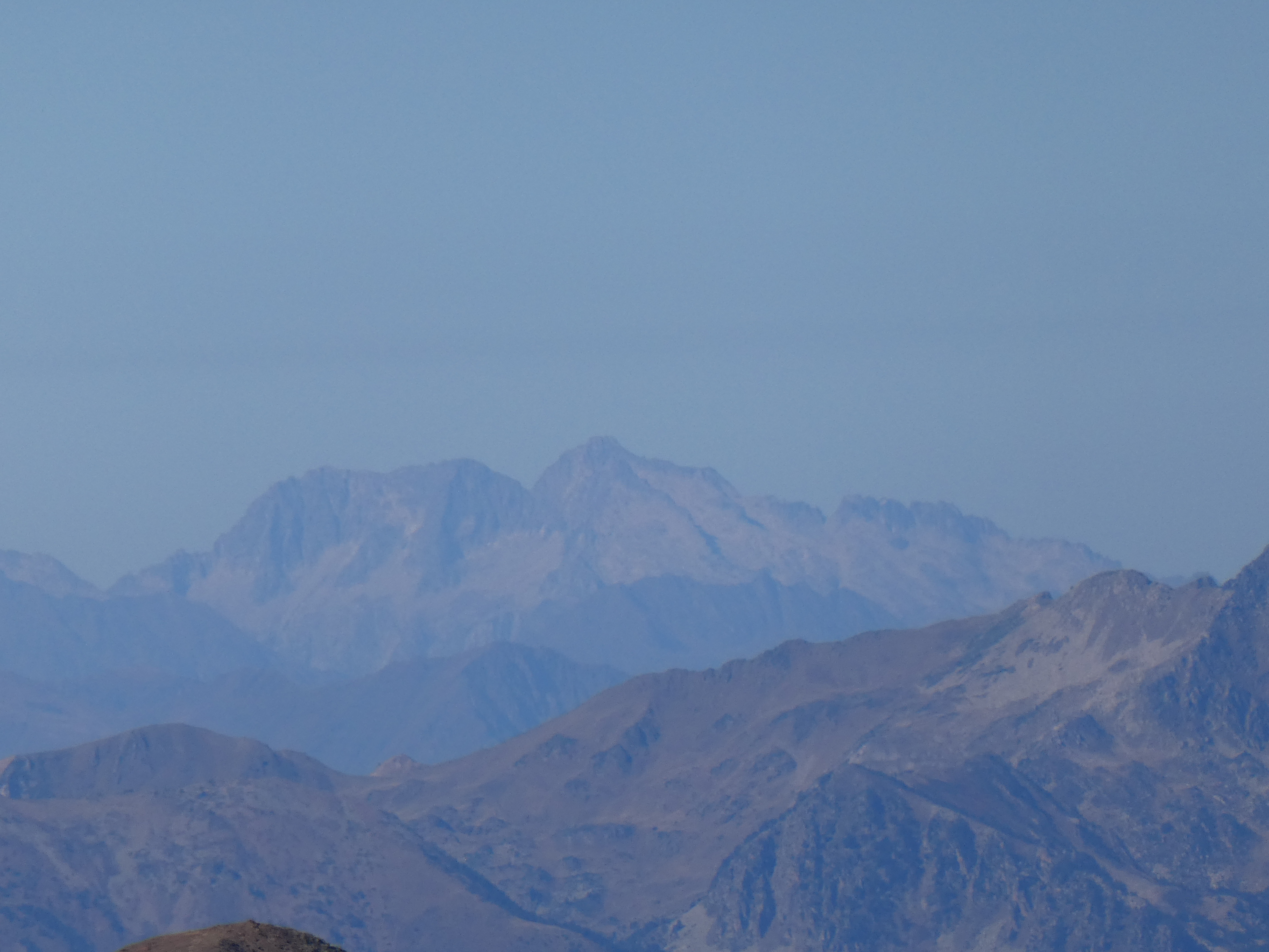 Zoom sur le Pic d'Oncet (2607 m) et le Pic du Midi de Bigorre (2877 m) situés à 114 kilomètres