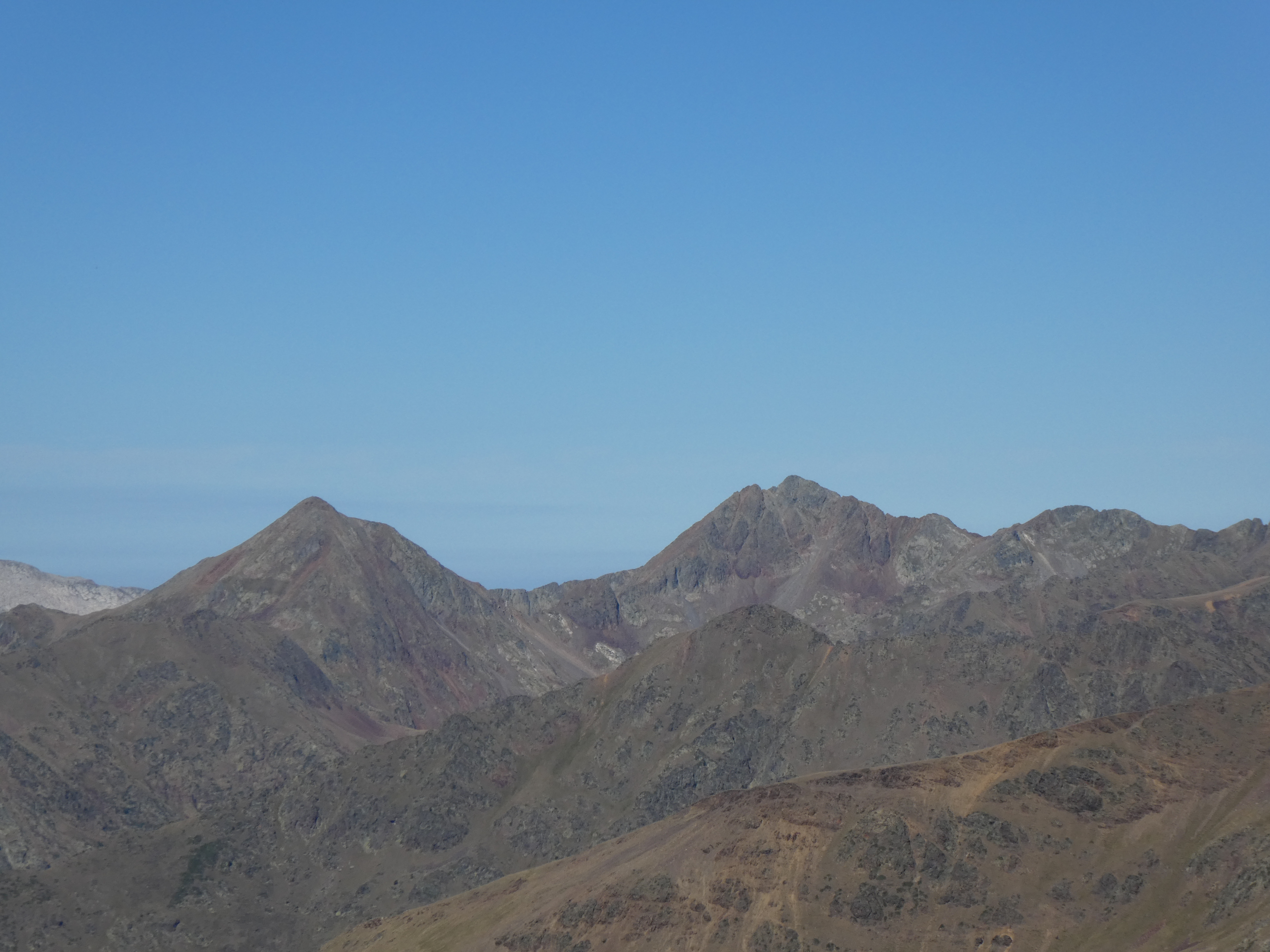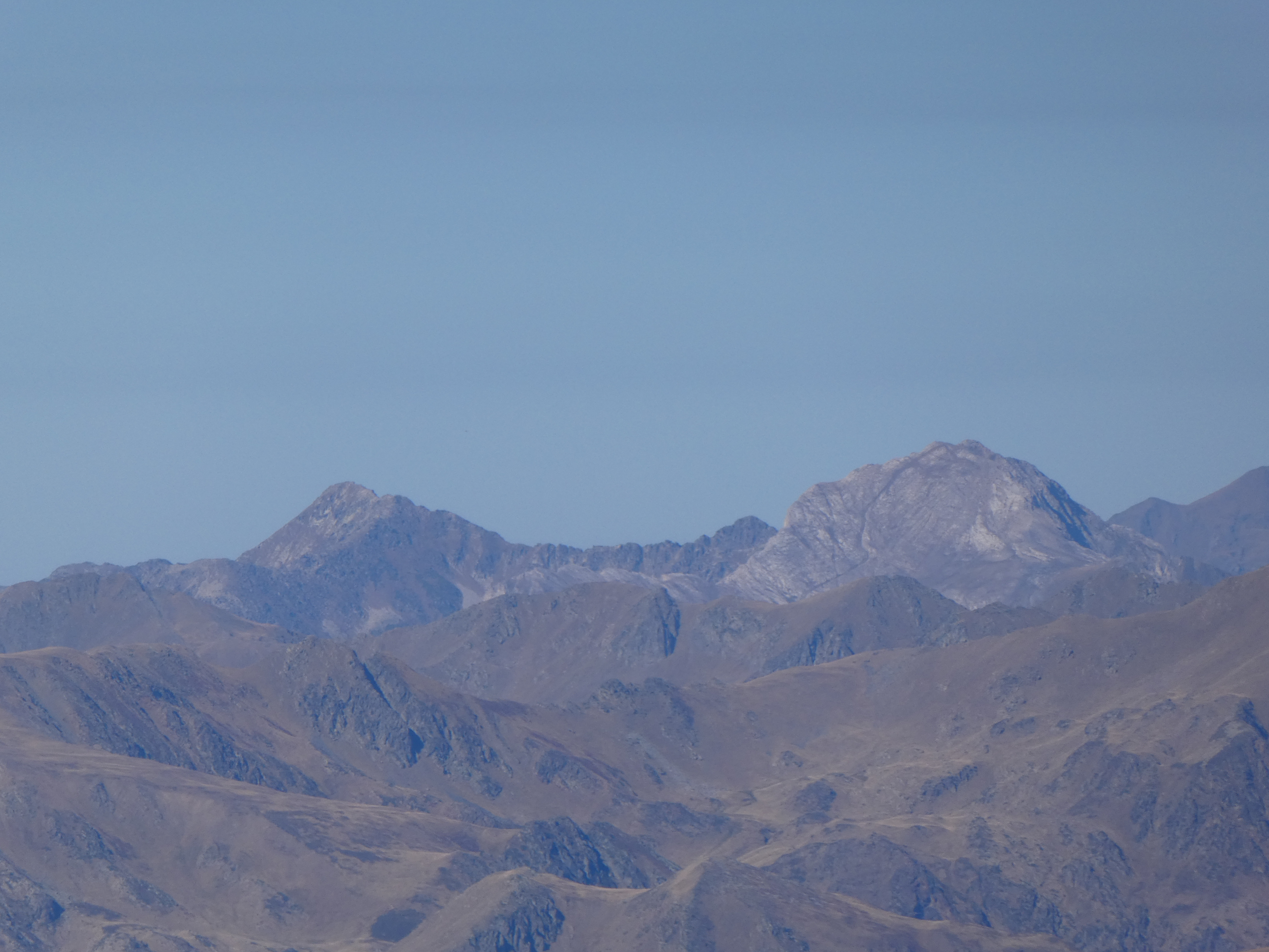 Zoom sur le Pic de la Cabaneta (2862 m) à gauche et le Pic de l'Estanyó (2915 m) au centre