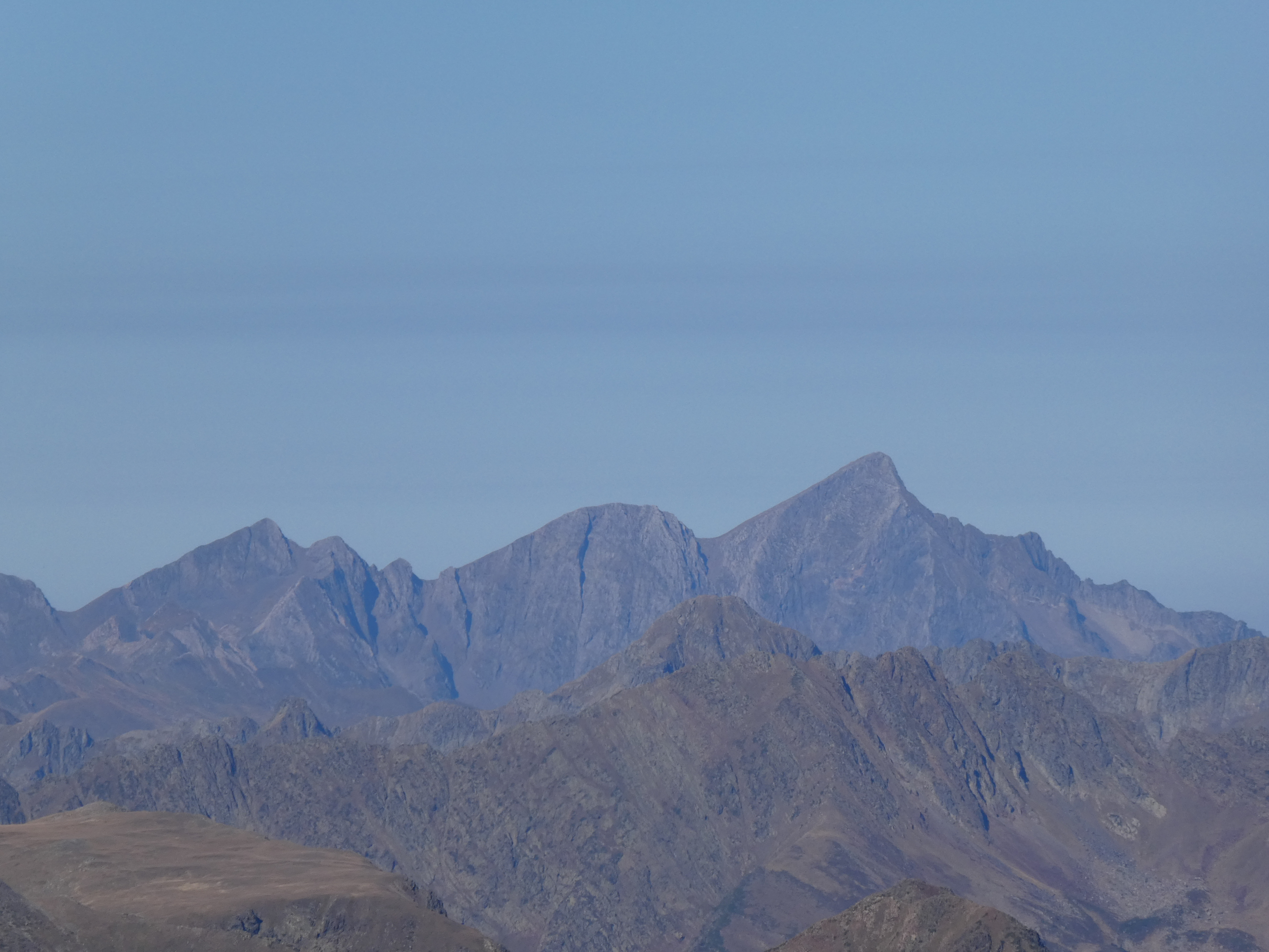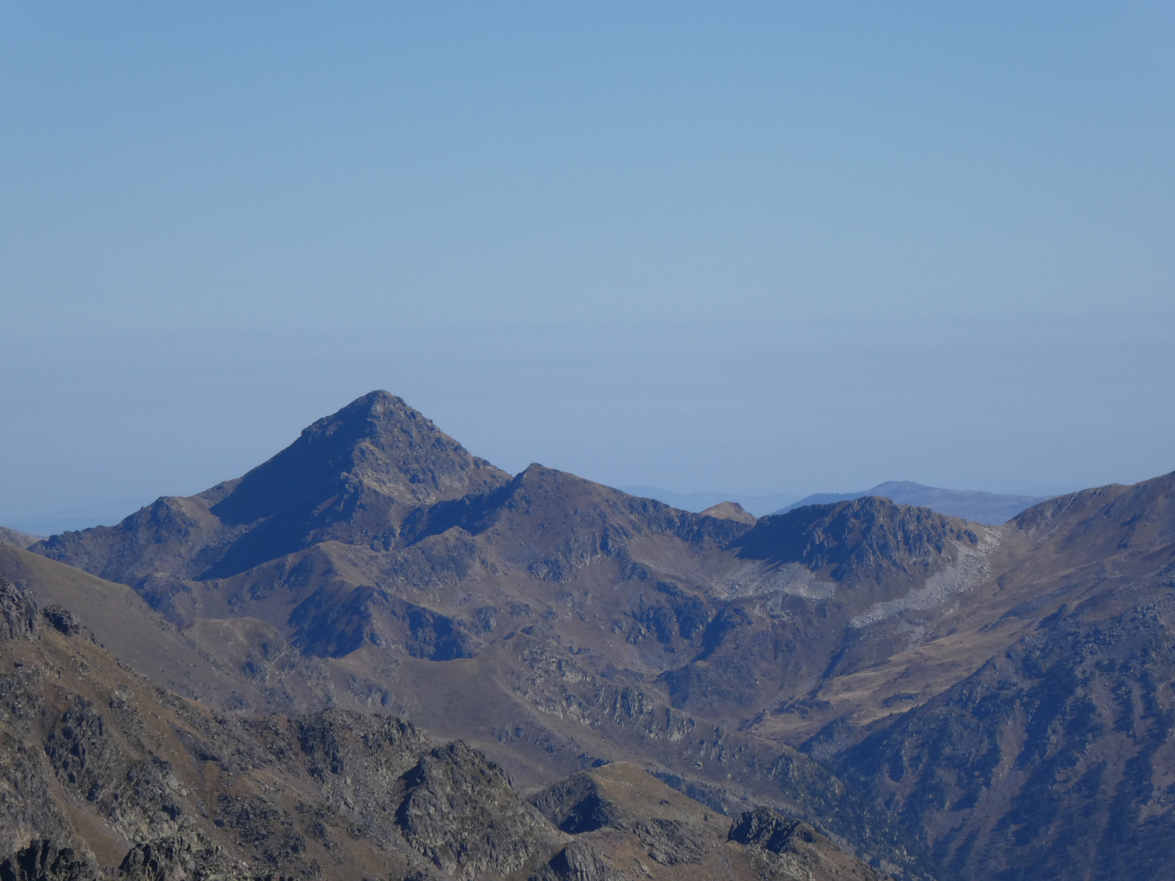 Zoom sur le Pic de Ransol (2731 m) au centre et le Roc Blanc (2542 m) au fond à droite