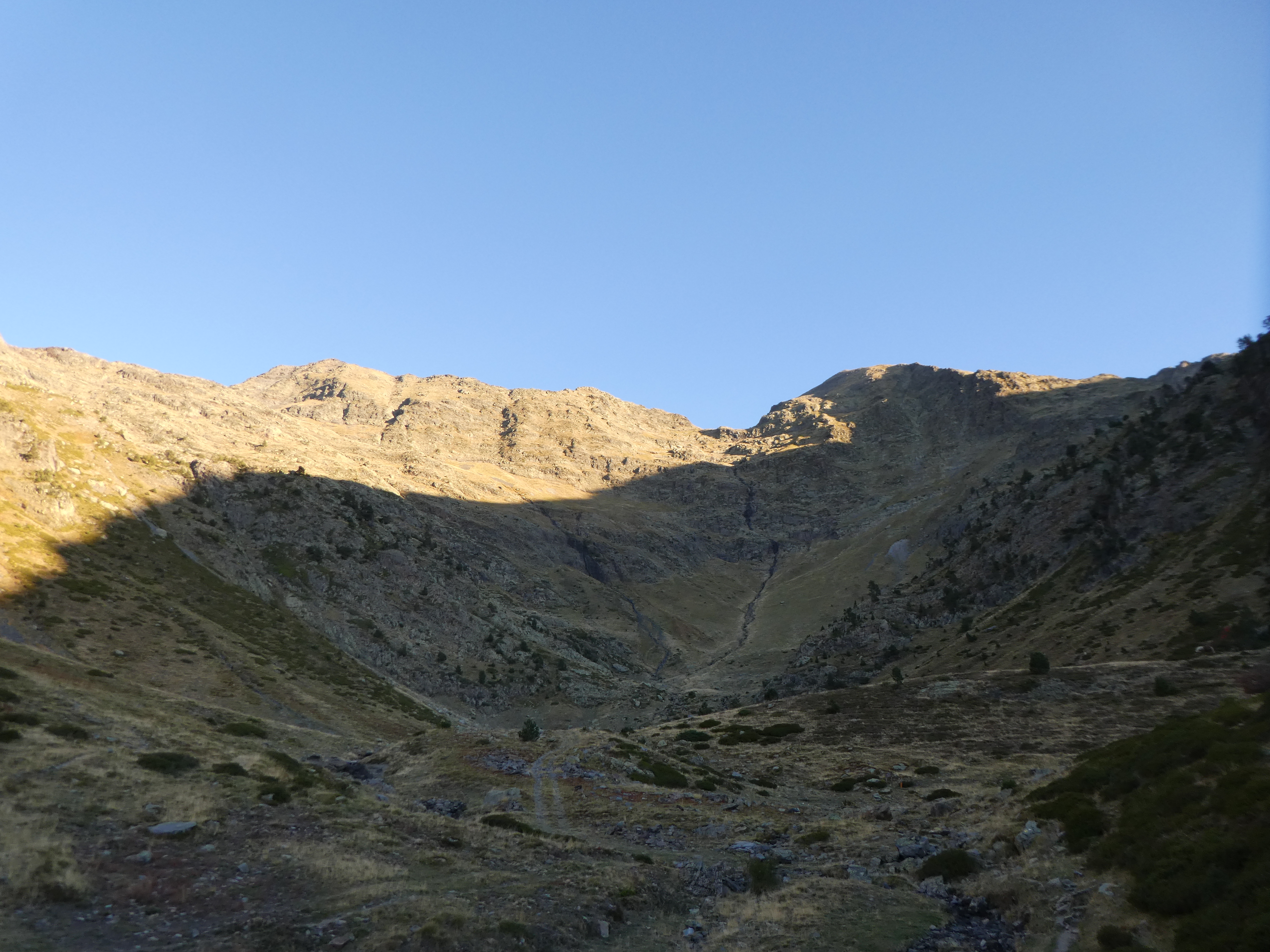 Vue sur la raide montée du Circ del Pla de l'Estany