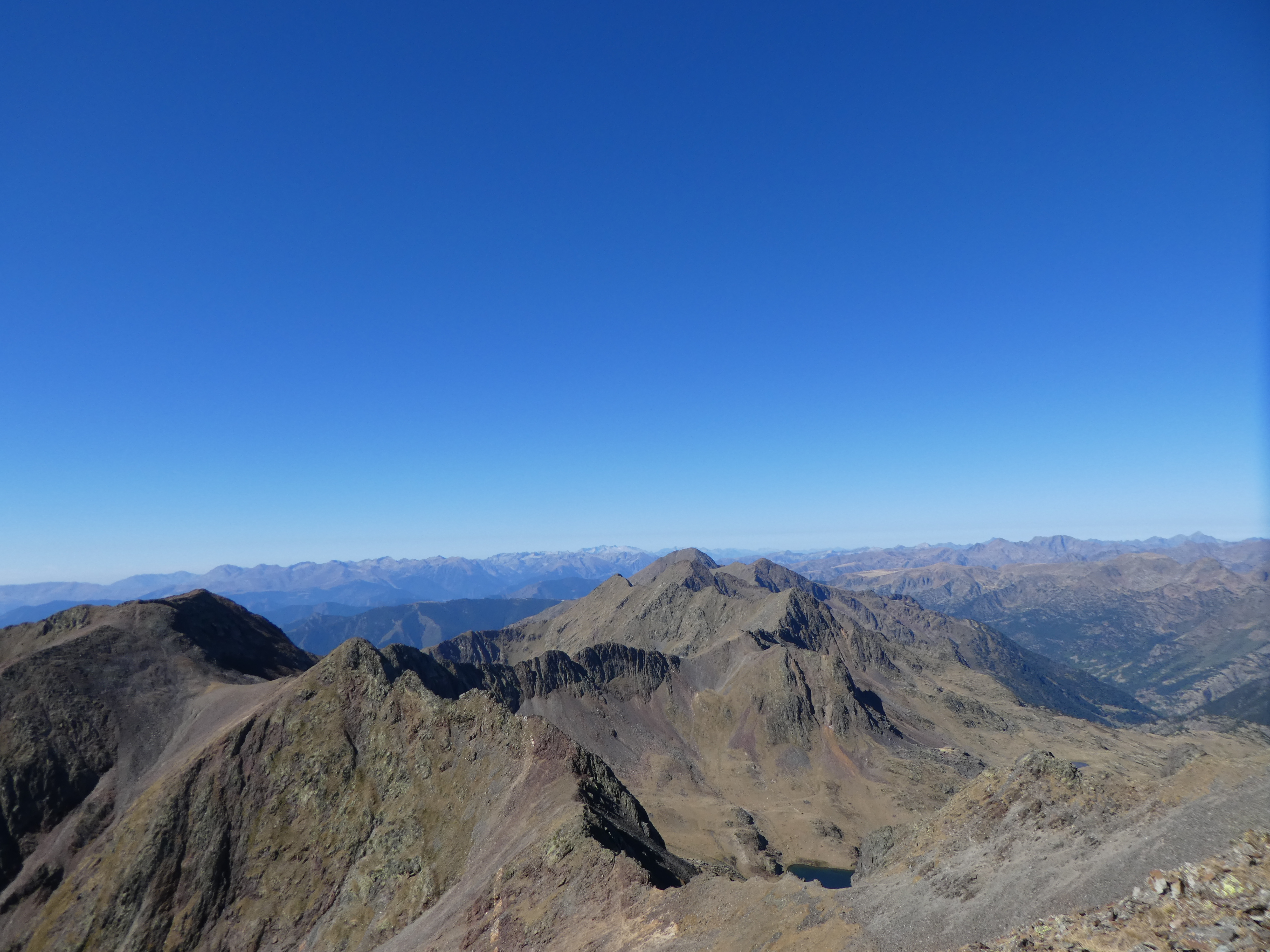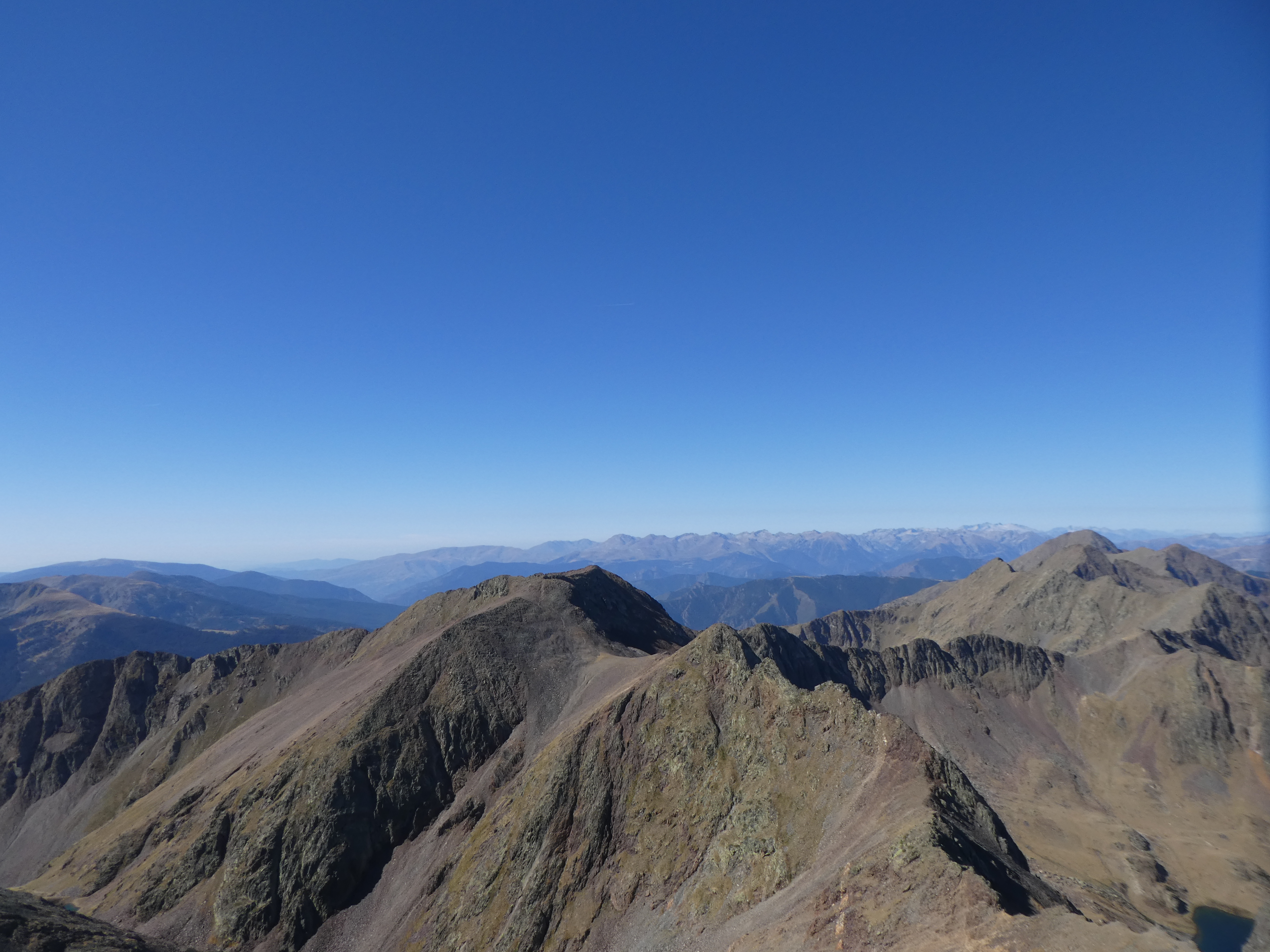 Vue arrière sur la parcours de crête déjà effectué depuis le Pic de Coma Pedrosa