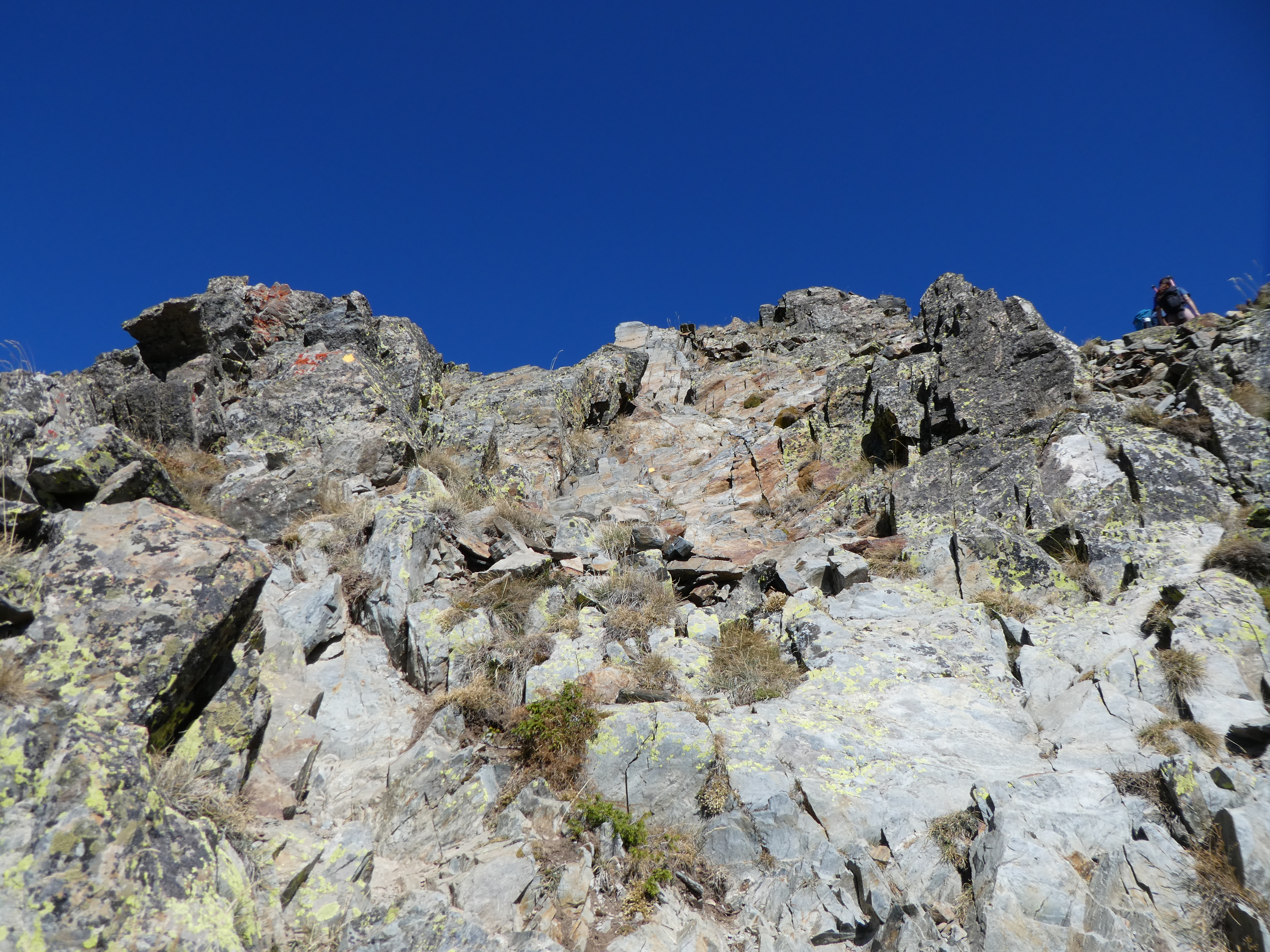 - Aide des mains parfois nécessaire pour descendre la crête du Pic de Coma Pedrosa jusqu'à l'Estany Negre (progression non aérienne sur sentier bien tracé)