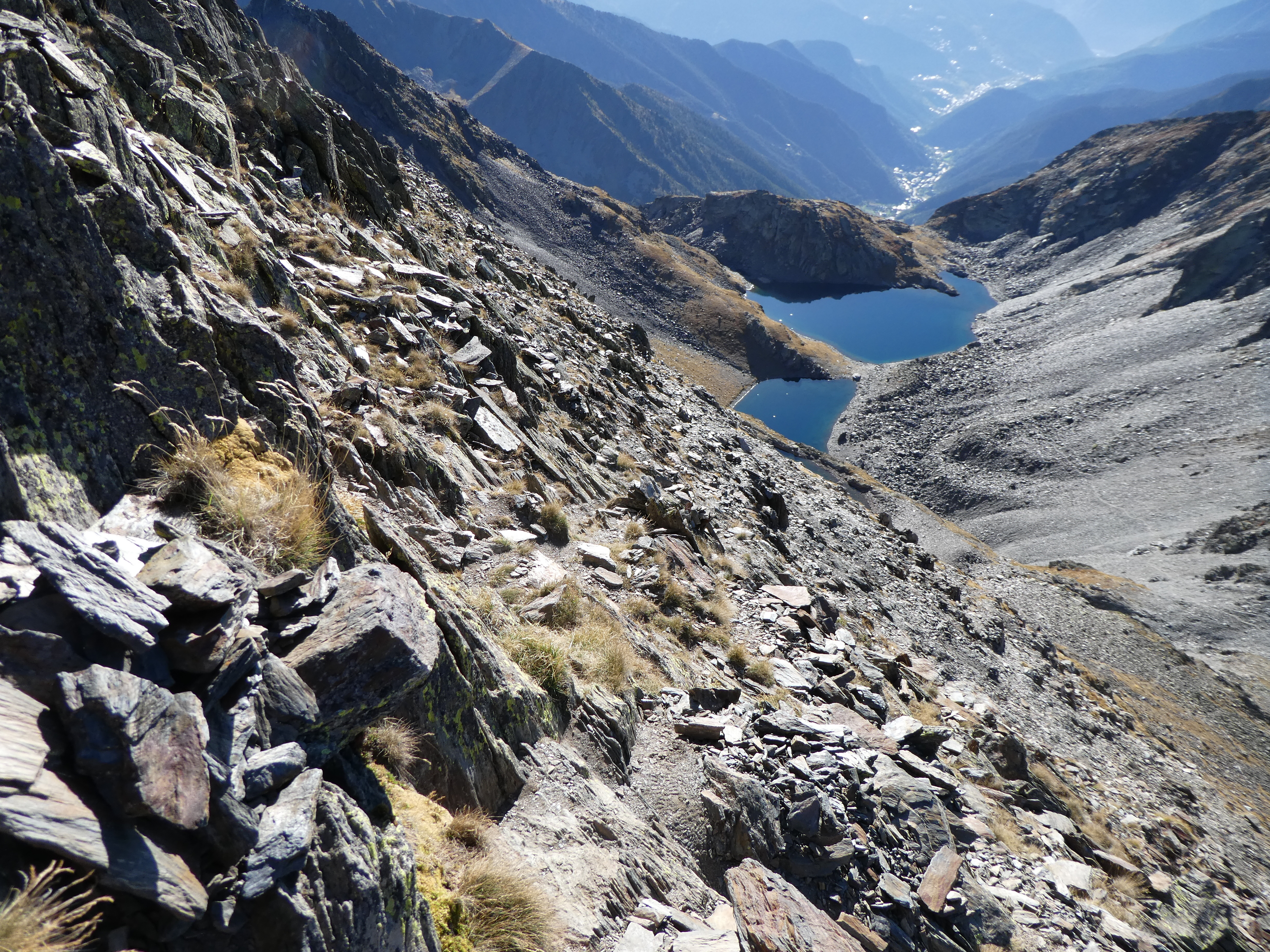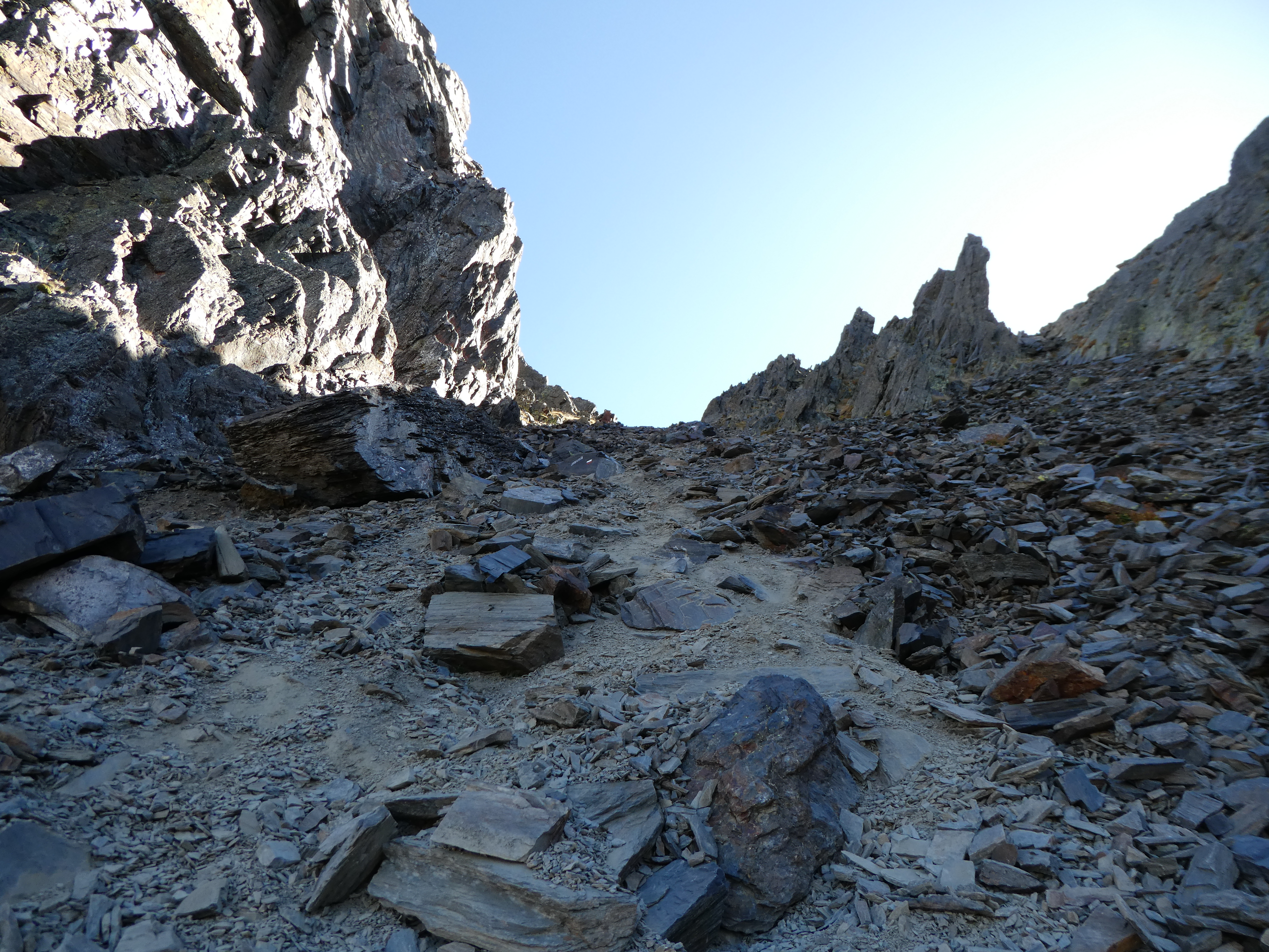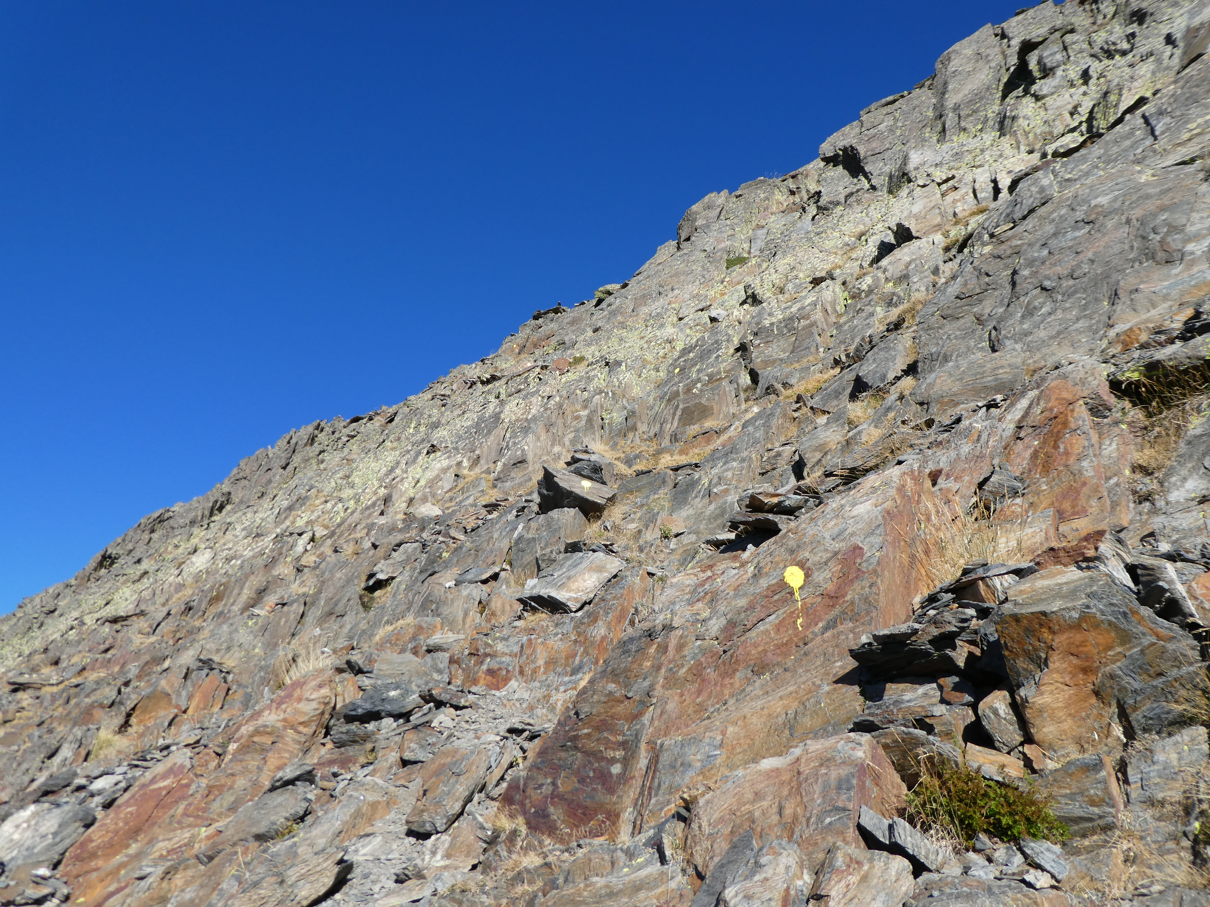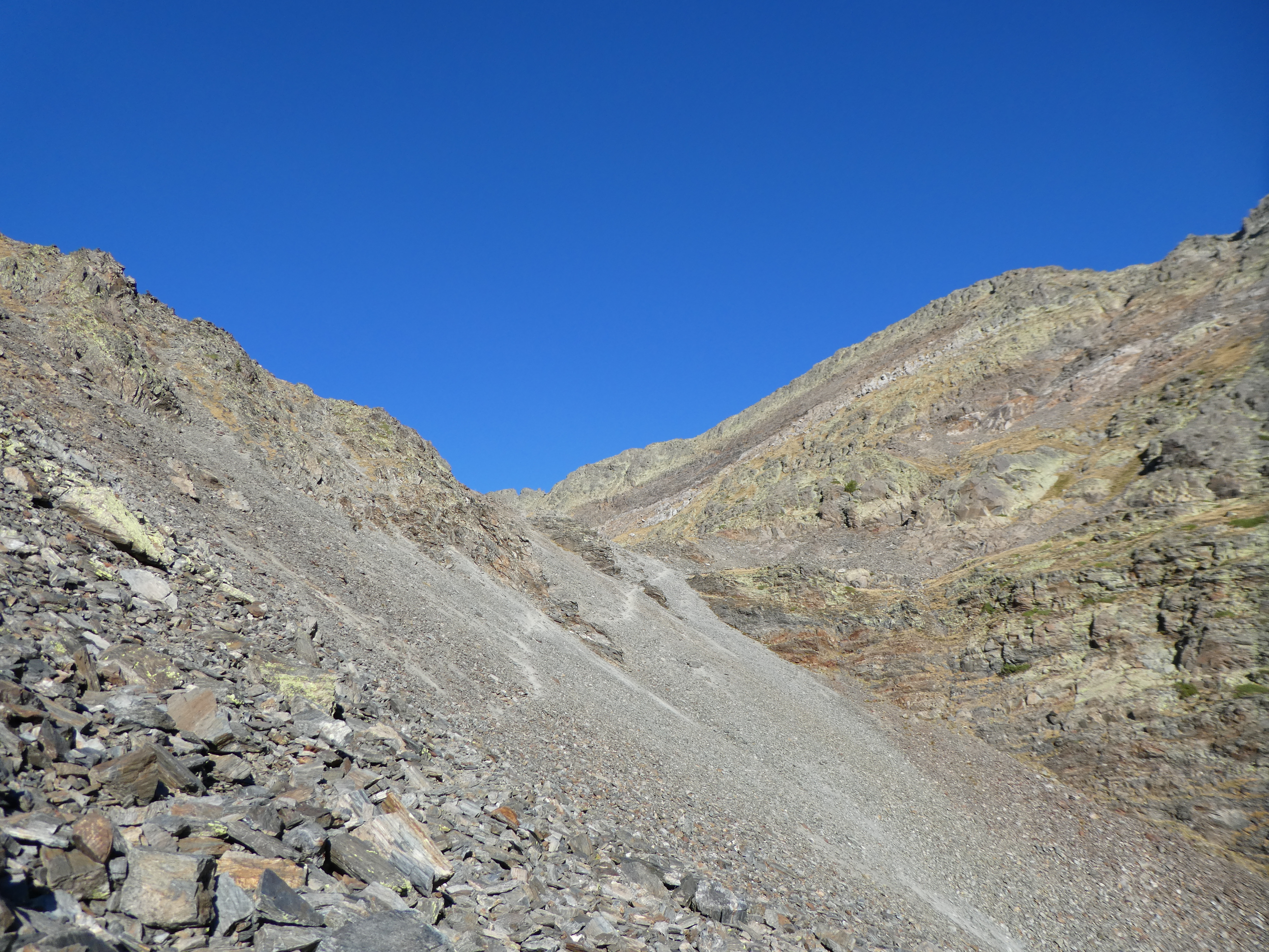 Très raide montée à l'approche de la Portella de Baiau sur un terrain croulant !