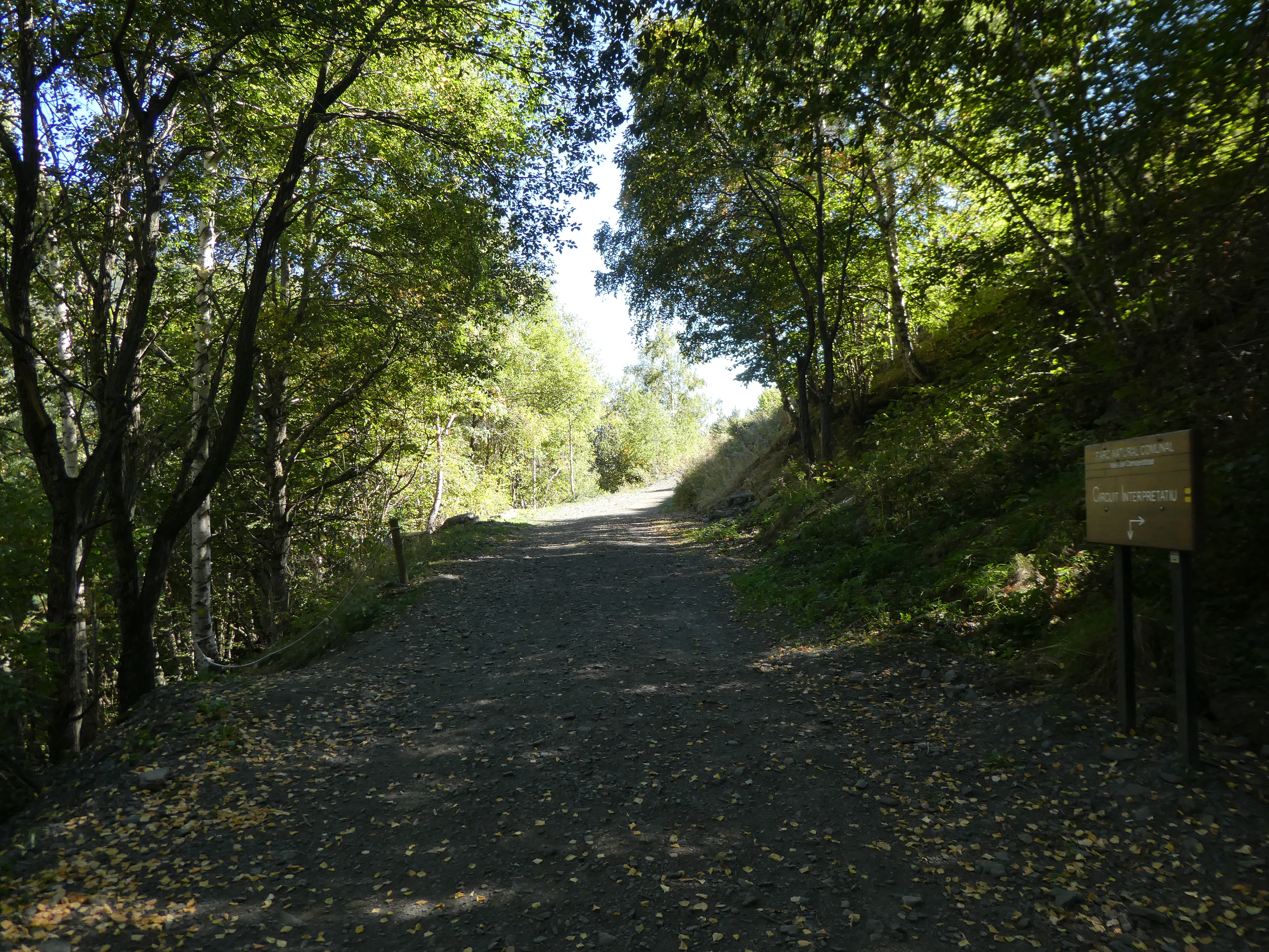 A ce croisement avec le Circuit d'Interprétation d'Arinsal (Circuit Interpretatiu) (150 mètres après le précédent), suivre ce dernier descendant sur la gauche direction Arinsal, balisé uniquement en jaune dorénavant