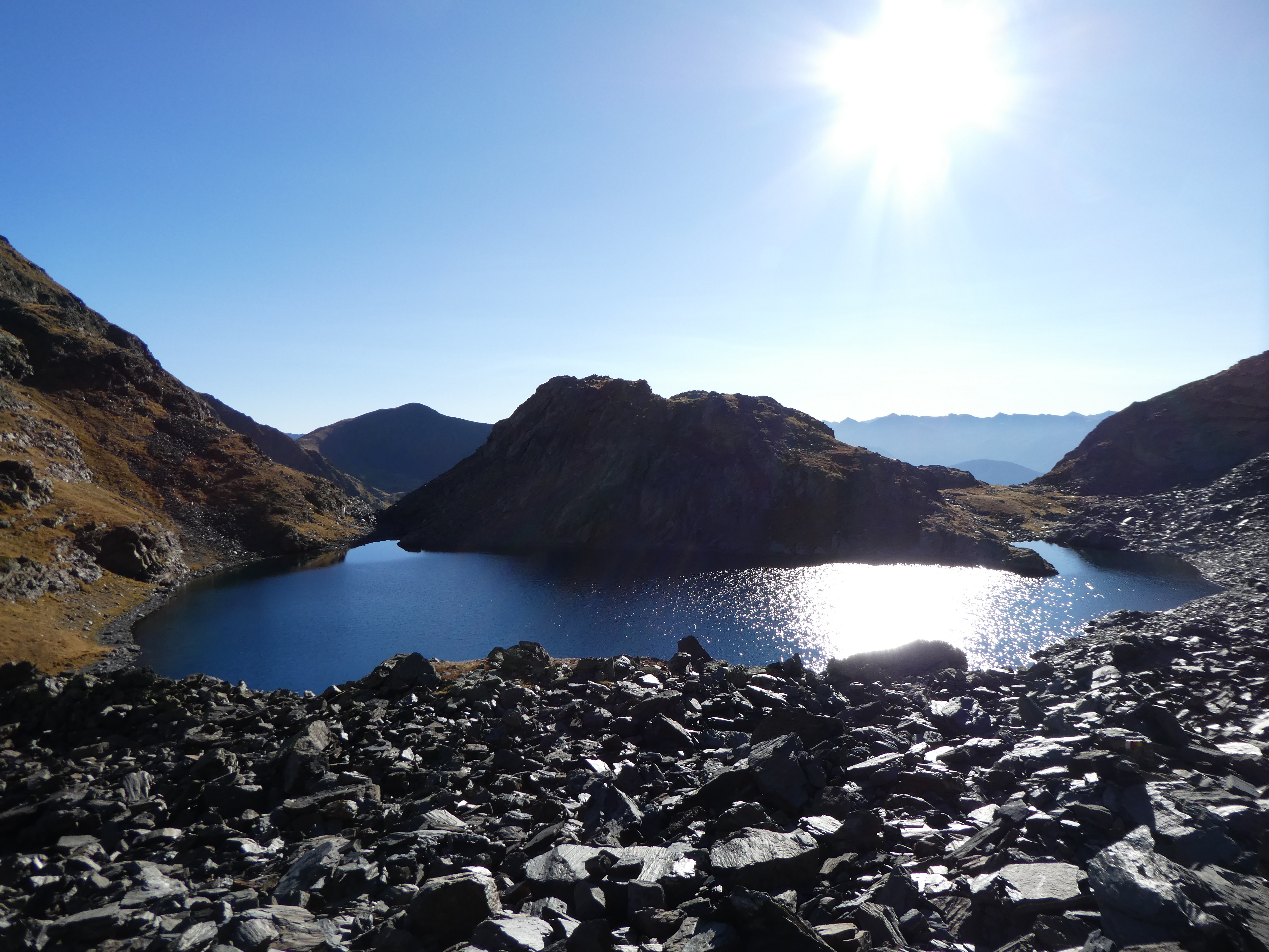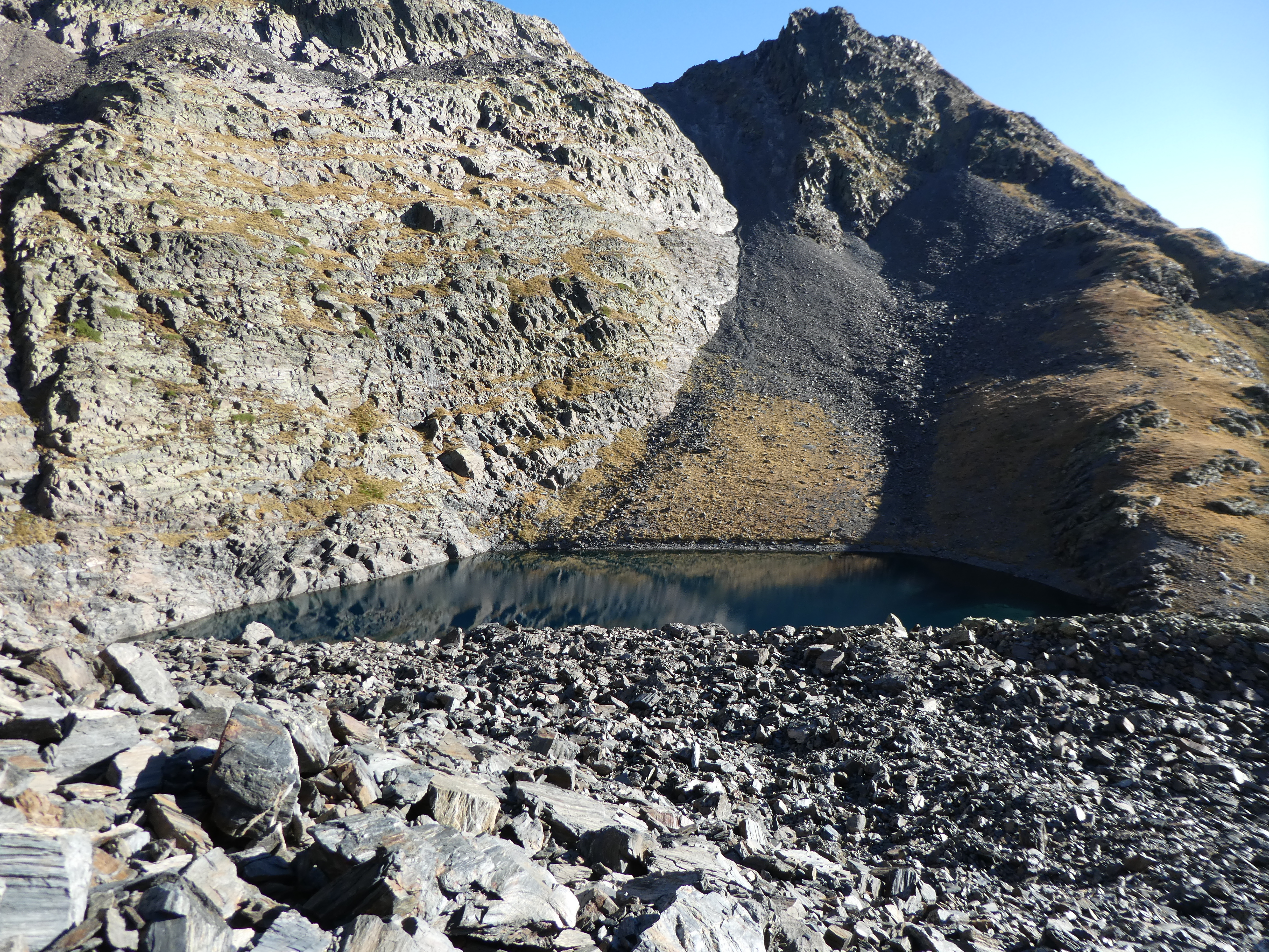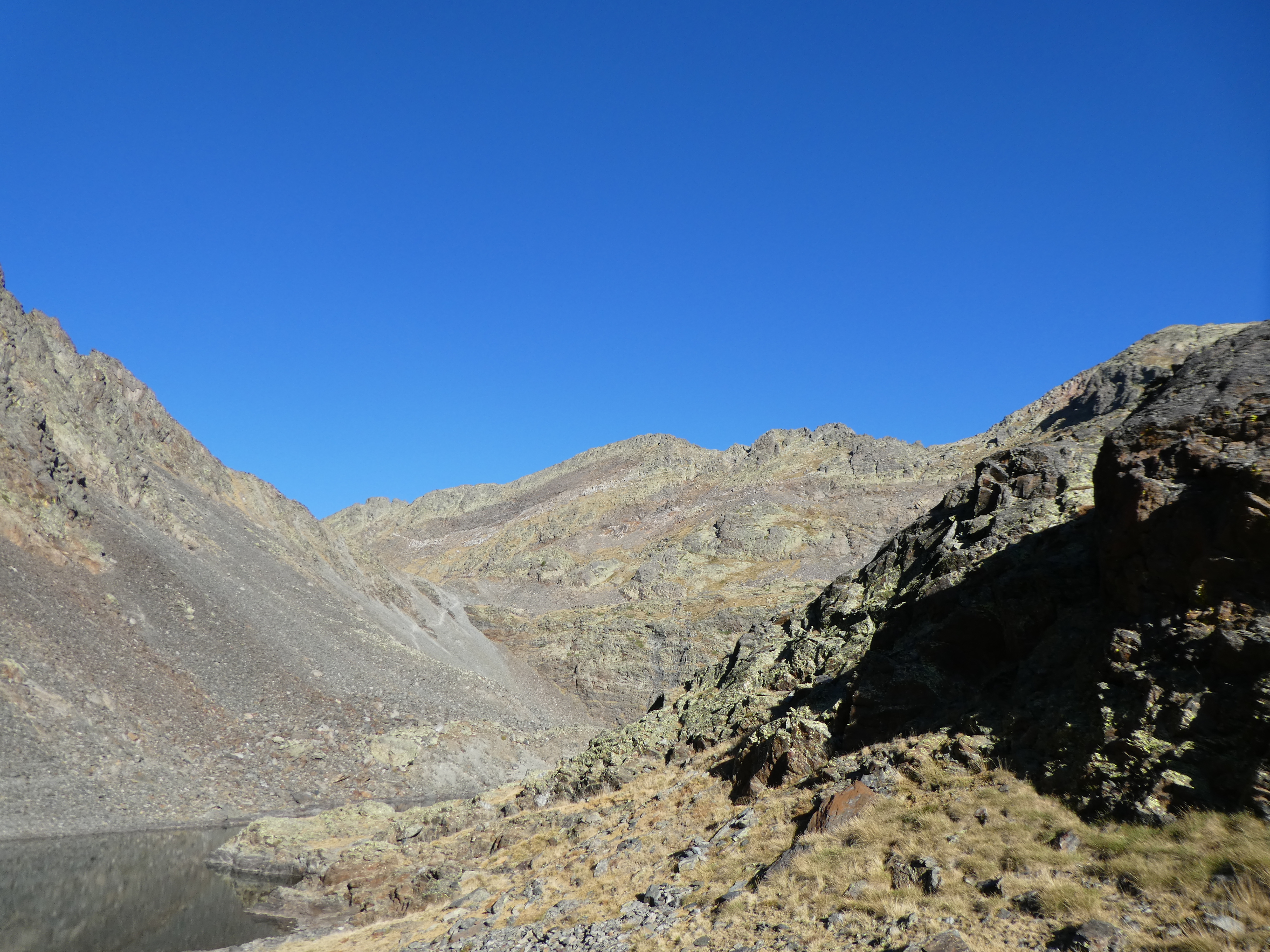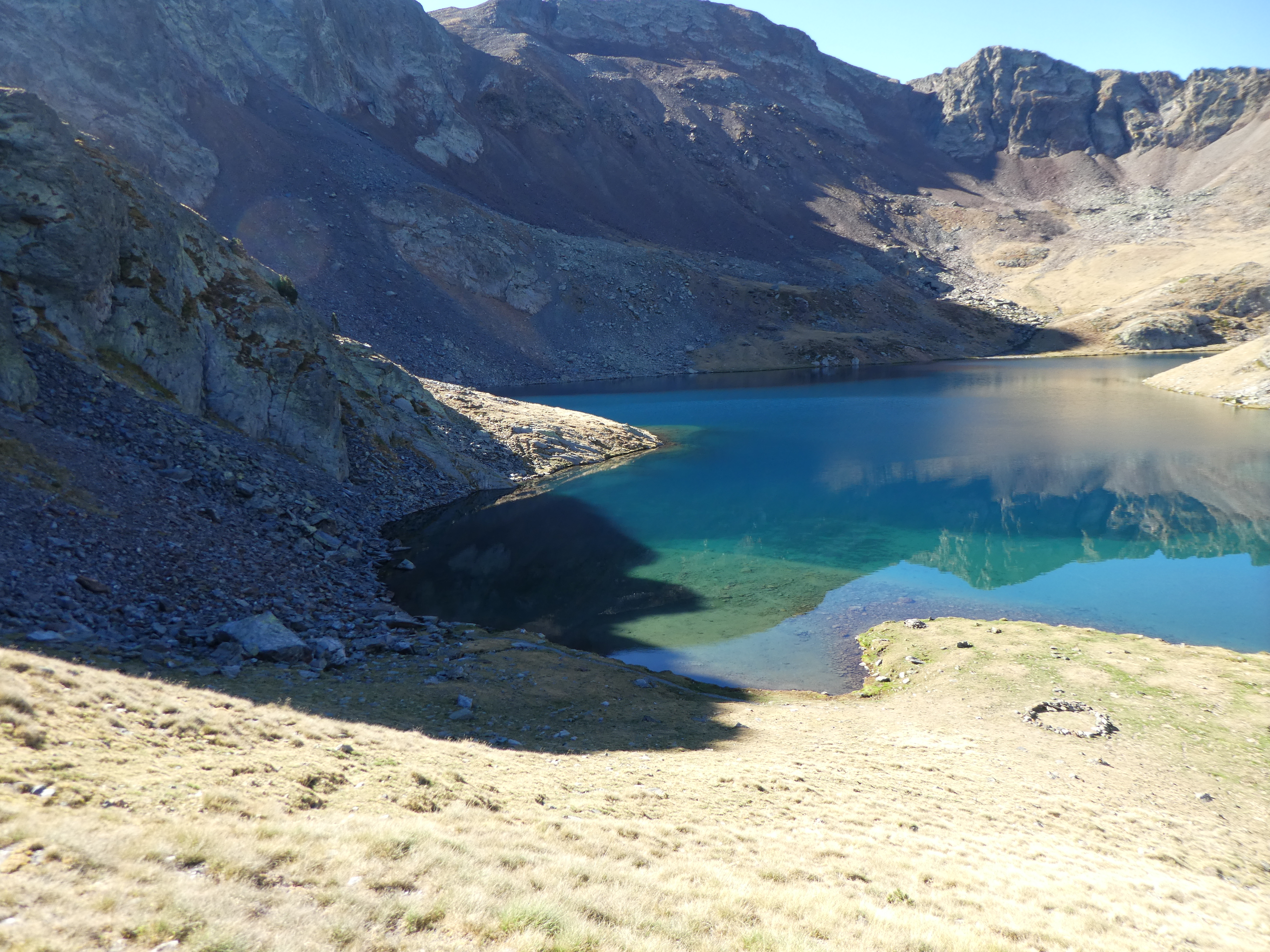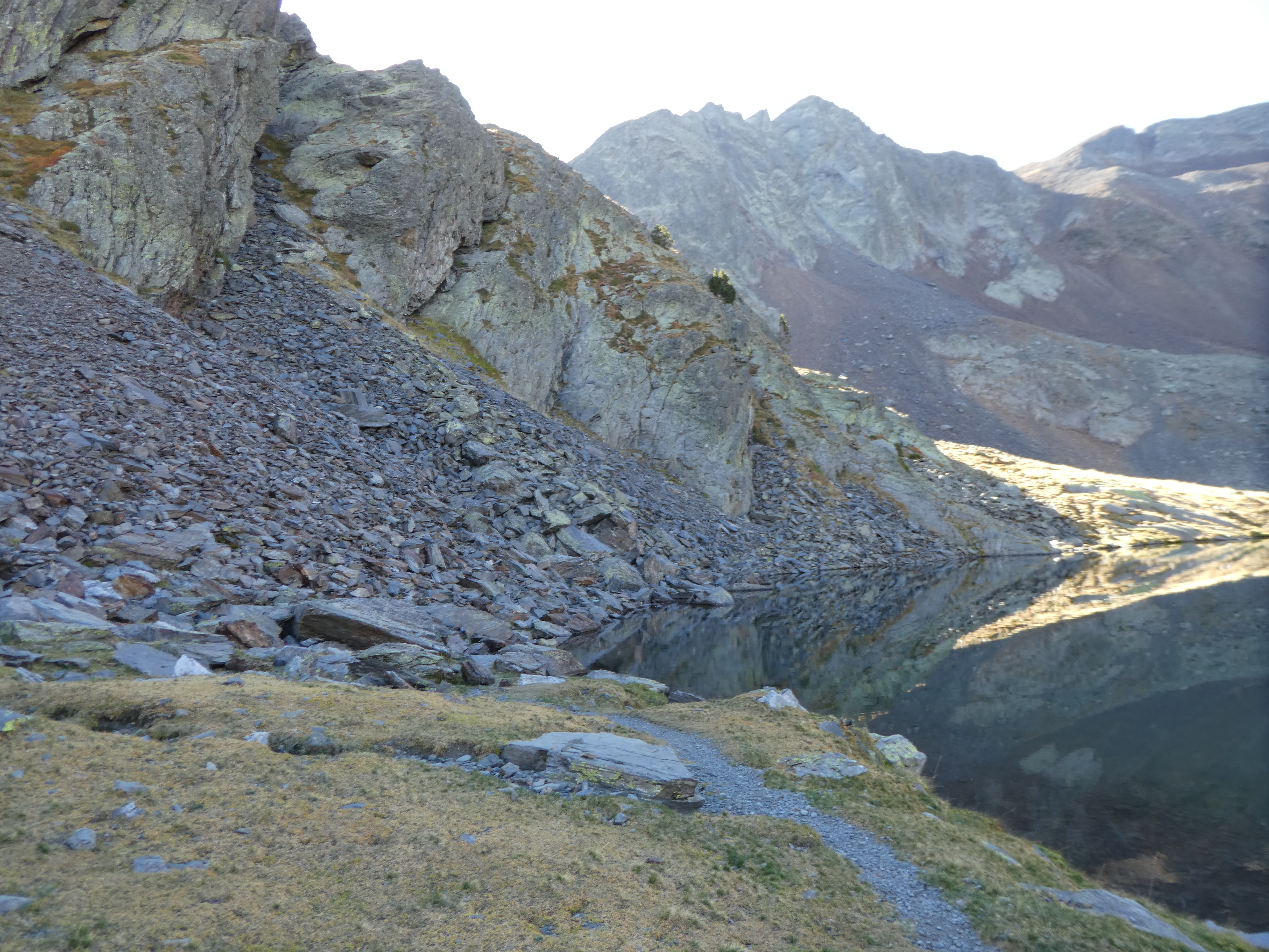 Dès qu'il est possible de rejoindre les bords des Estanys de Baiau (1000 mètres après la Portella dels Estanys Forcats), descendre à vue vers le lac pour rejoindre le tracé du GR11 direction Portella de Baiau, aucun balisage dorénavant